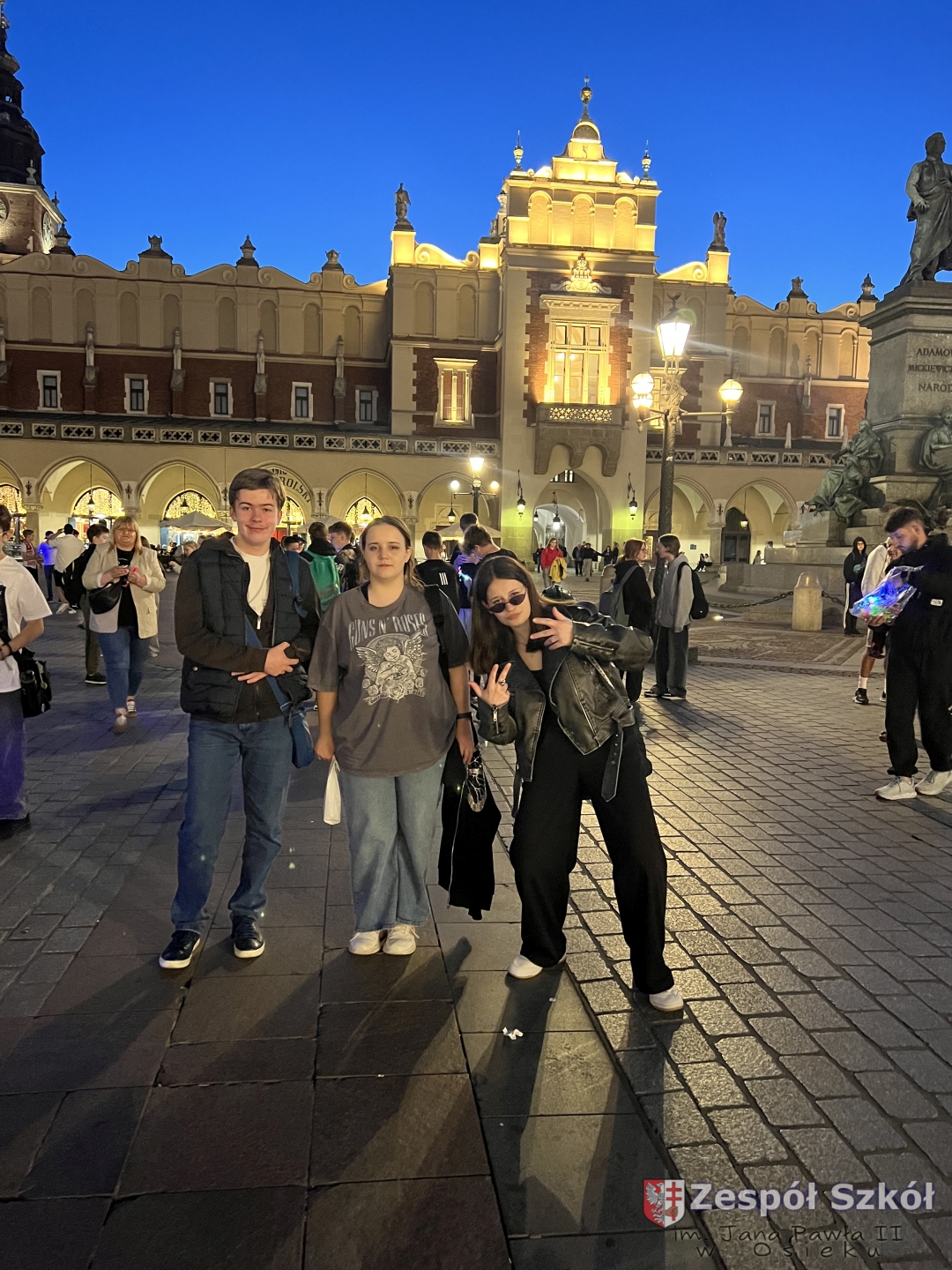 Zwieńczeniem pełnego wrażeń dnia był nastrojowy nocny spacer po Krakowie, który pozwolił uczniom zobaczyć miasto w zupełnie innej, magicznej odsłonie. Spacer wśród zabytków skąpanych w wieczornym świetle był nie tylko chwilą wyciszenia i refleksji po intensywnym dniu, lecz także wyjątkowym doświadczeniem estetycznym, które na długo pozostanie w pamięci uczestników wycieczki.