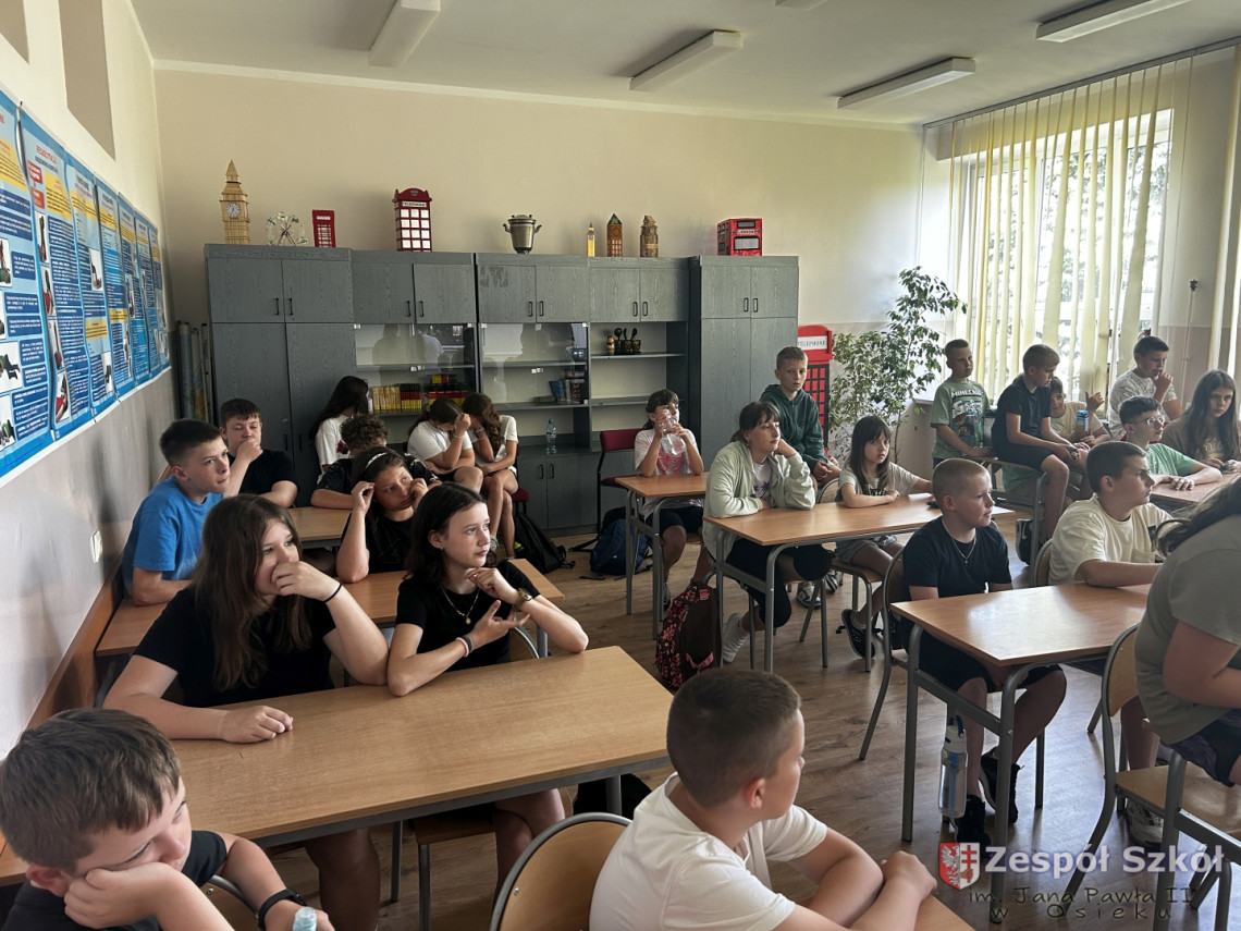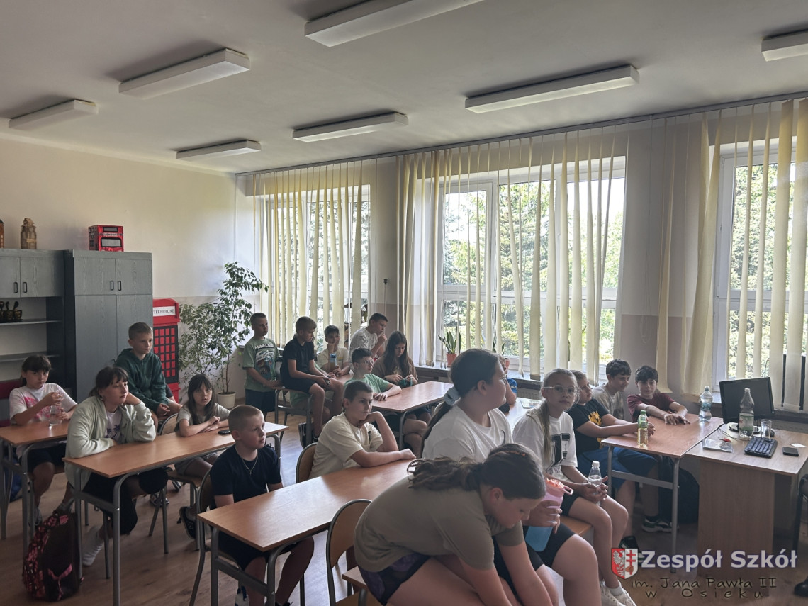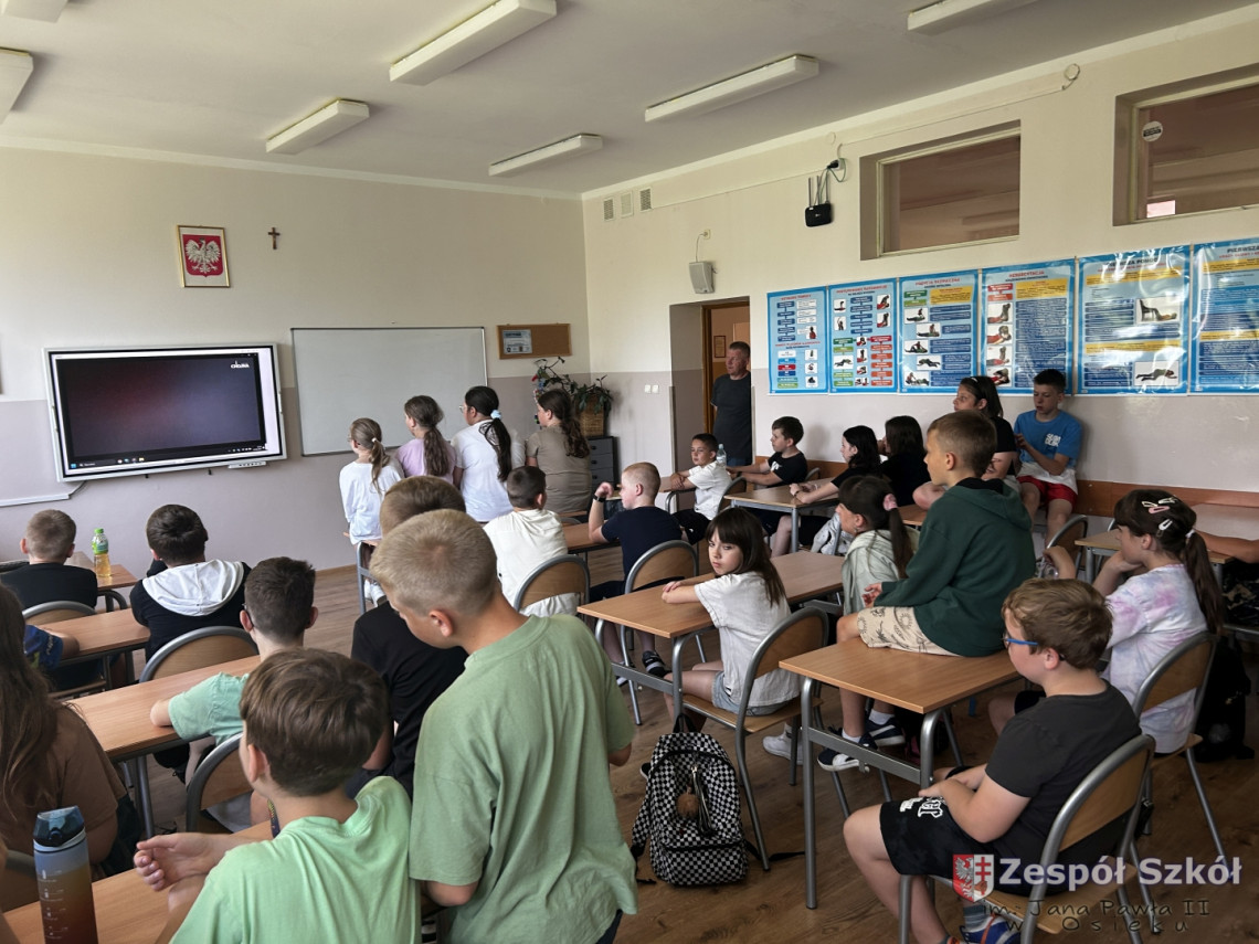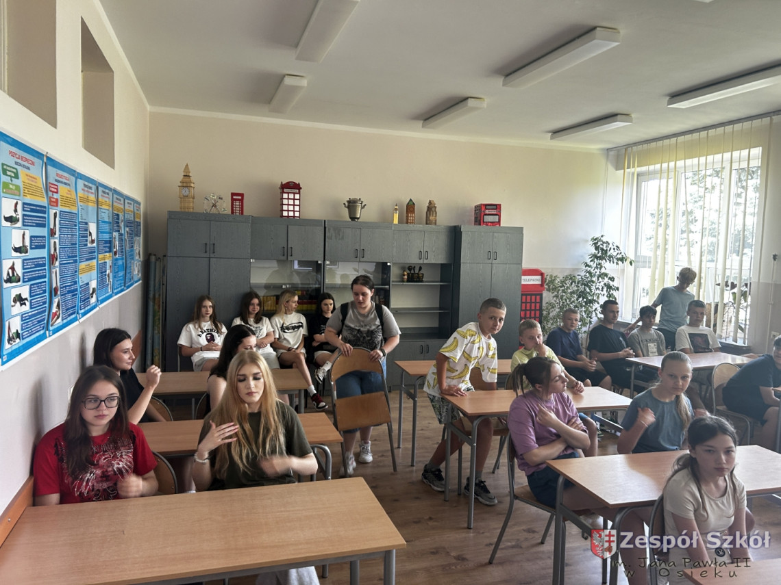 W związku ze zbliżającymi się wakacjami w naszej szkole w dniu 5 czerwca 2025 r. odbyło się spotkanie z dzielnicowymi z Posterunku Policji w Osieku nt „Bezpieczne wakacje”, w którym uczestniczyli uczniowie z klas I-VIII szkoły podstawowej i 3 klasy liceum. Celem spotkania było przypomnienie uczniom podstawowych zasad bezpiecznego zachowania się w czasie wakacji, uwrażliwienie na różne niebezpieczeństwa i zagrożenia oraz kształtowanie wyobraźni i myślenia przyczynowo-skutkowego. Policjanci zasygnalizowali, że wszyscy niezależnie od tego, gdzie spędzają wakacje, zobowiązani są do bezwzględnego przestrzegania podstawowych zasad bezpieczeństwa, a zachowanie zdrowego rozsądku pozwoli ograniczyć ryzyko przykrych sytuacji i zdarzeń.