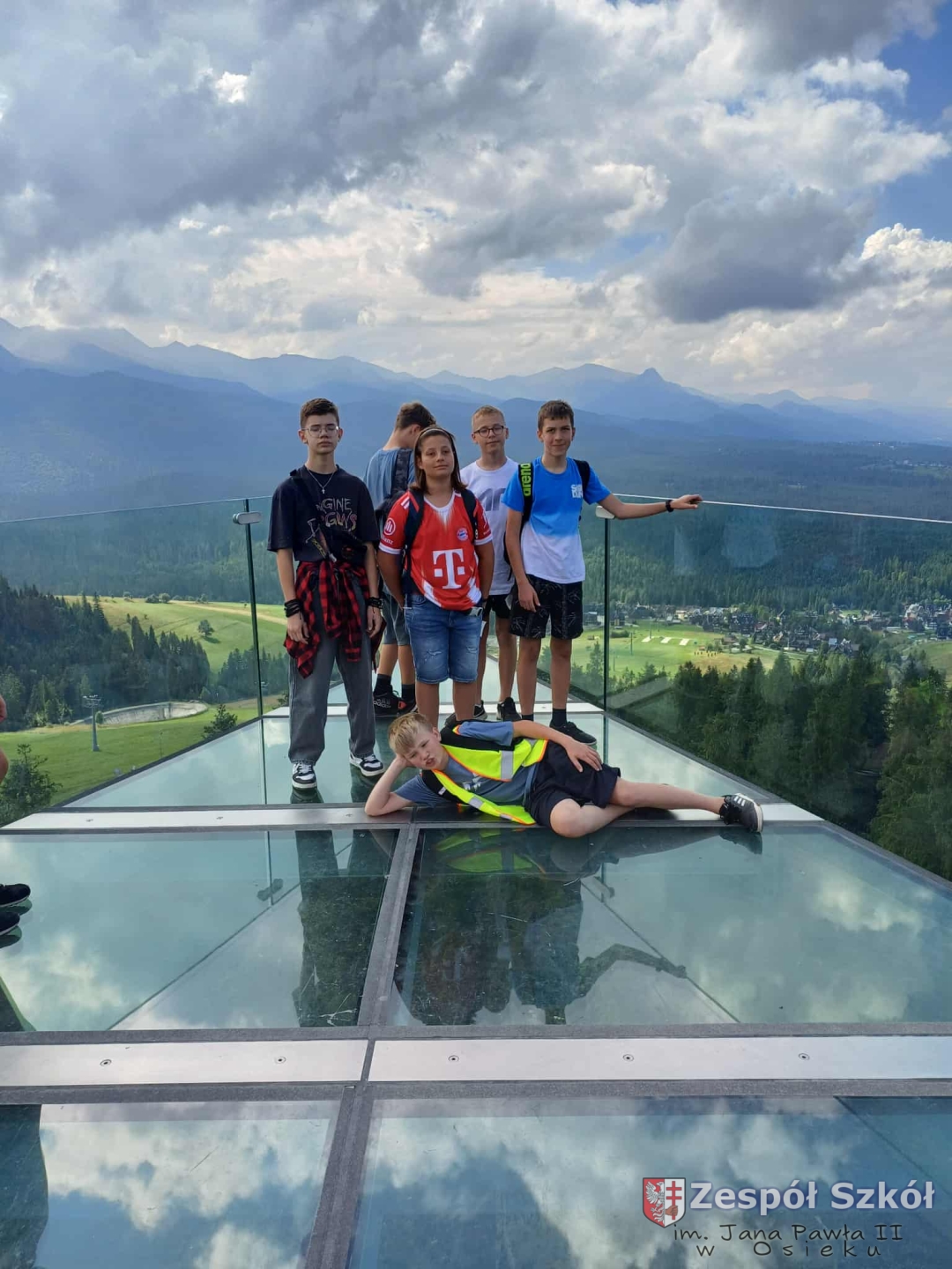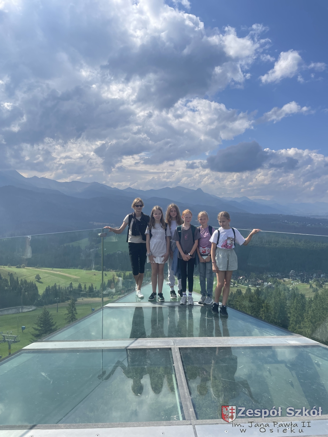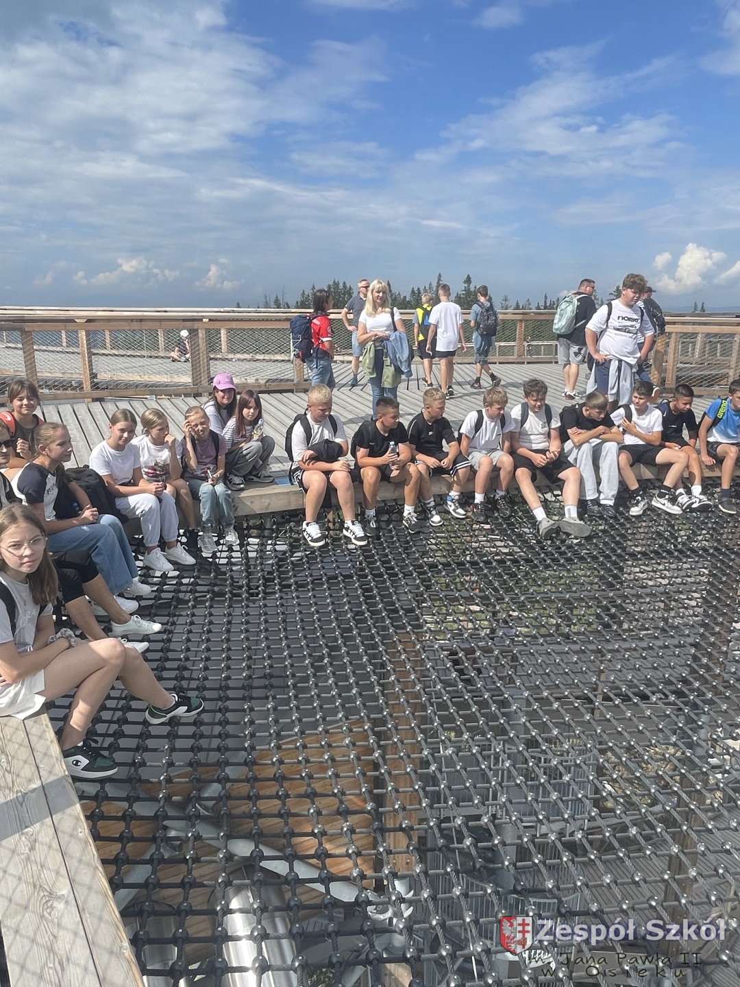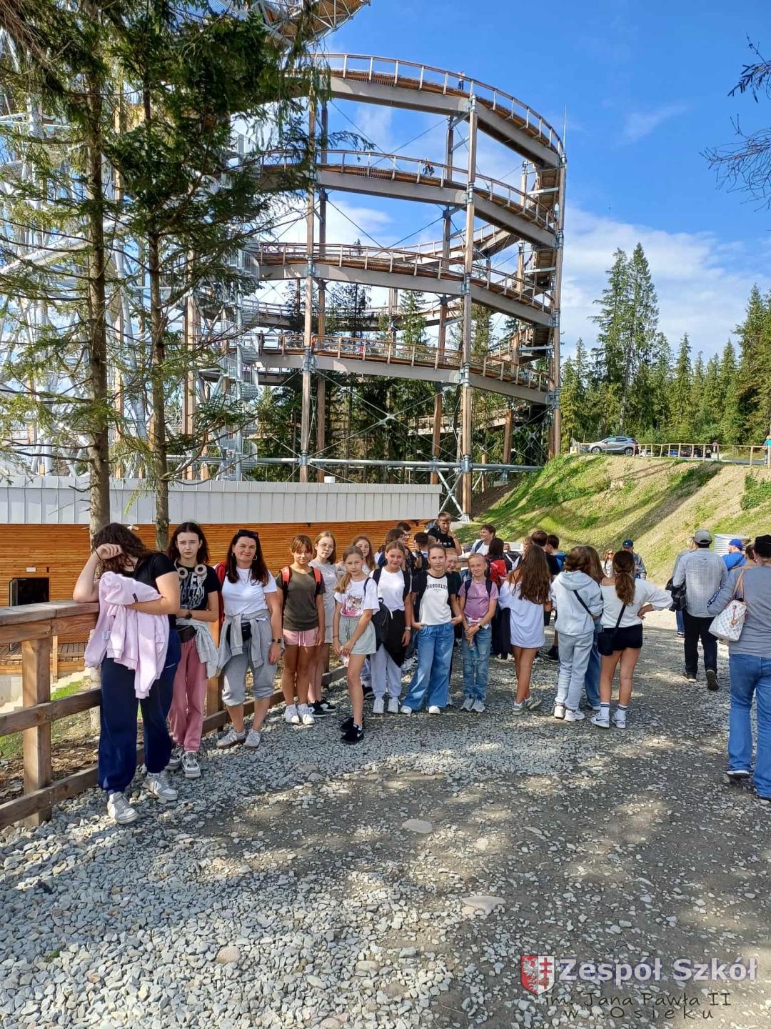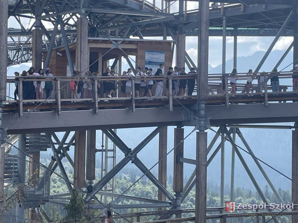 Naszą przygodę rozpoczęliśmy od wizyty na SkyWalk w Poroninie. To niezwykła ścieżka widokowa poprowadzona nad koronami drzew, z której rozpościerał się malowniczy widok na Tatry. Największe emocje wzbudziła potężna wieża widokowa oraz przeszklony taras – uczniowie mogli poczuć się, jakby unosili się w powietrzu.