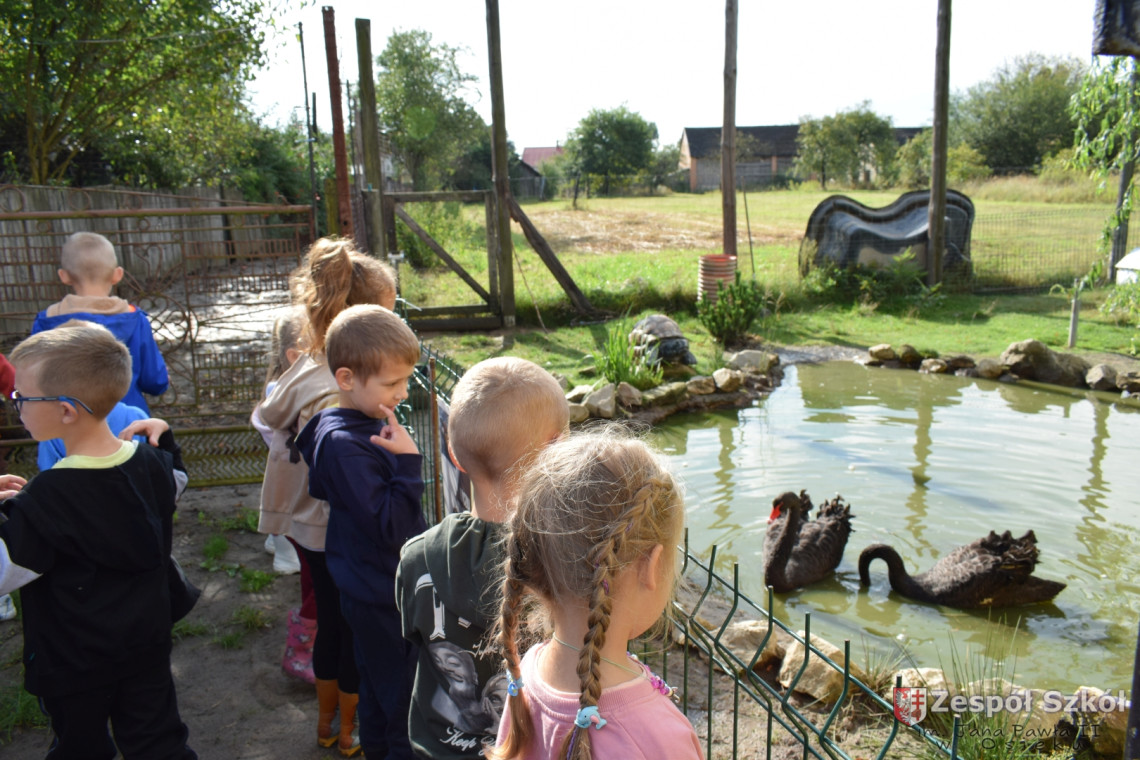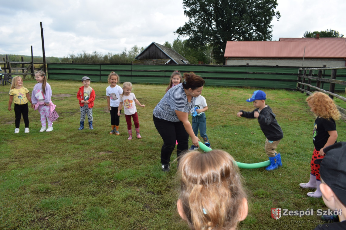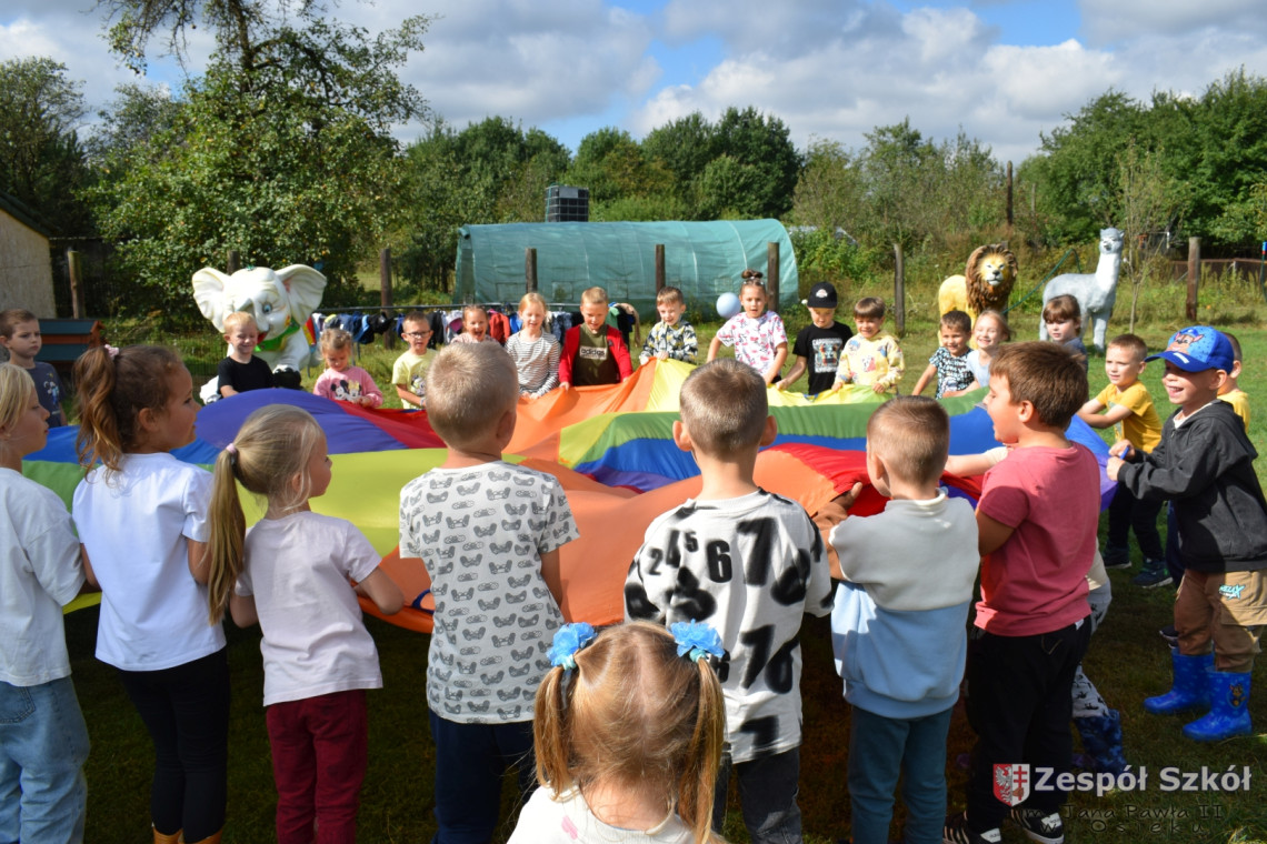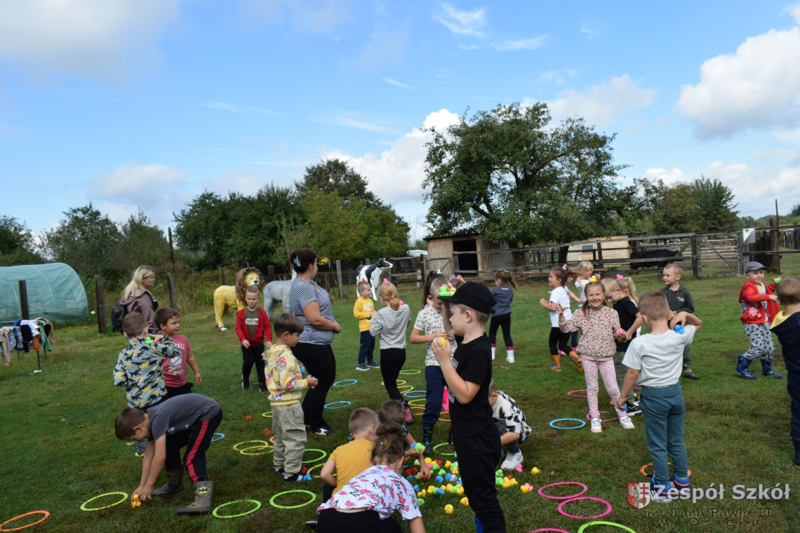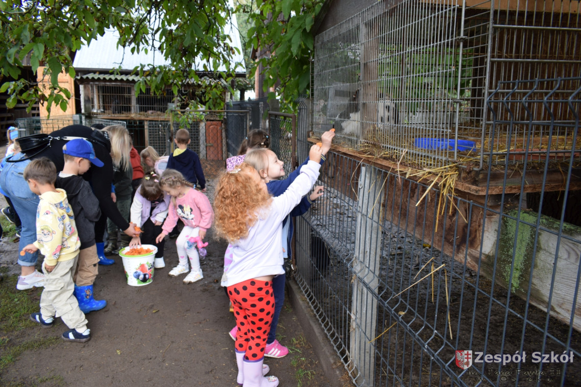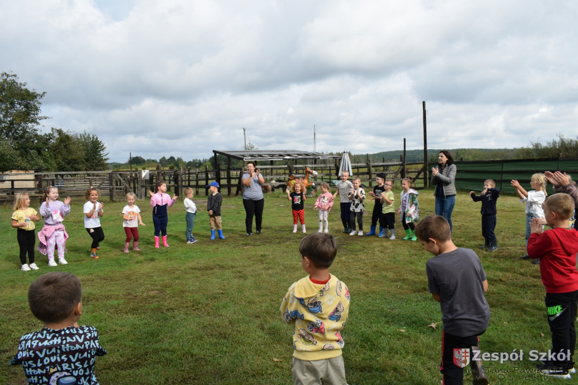 15 września  2025 r. dzieci z grupy 5 i 6 latki wraz                                             z wychowawczyniami: p. Anną Kos, p. Magdaleną Kos i p. Eweliną Mikus  pojechały na wycieczkę do "Ranczo Alpaki" w Woli Baranowskiej. Celem wycieczki było obcowanie z przyrodą ożywioną –zwierzętami mieszkających na ranczo, promowanie aktywnego i zdrowego stylu życia , aktywny wypoczynek na świeżym powietrzu, kształtowanie wrażliwości i szacunku do zwierząt. Przedszkolaki mogły zobaczyć: alpaki, kangury, kózki miniaturowe, kucyki, papugi, kanarki, surokatki, króliki, wielbłądy, strusie, wiewiórki, jeżozwierze, miniaturową krowę, kucyki, owieczki, kangury, strusie, czarne łabędzie, piękne pawie oraz kaczki. Dzieci mogły karmić i głaskać zwierzęta. Wiele  radości sprawiły dzieciom warsztaty rękodzielnicze, na których każde dziecko ozdabiało swoją alpakę, zabawy przy muzyce z animatorką i dmuchane atrakcje. Na zakończenie spotkania przedszkolaki otrzymały dyplomy "Przyjaciela alpak" i zjadły przepyszne kiełbaski z ogniska. To był dzień pełen wrażeń.