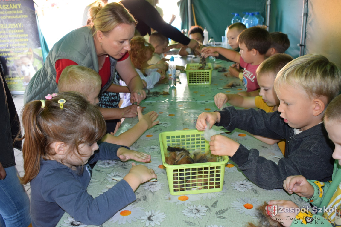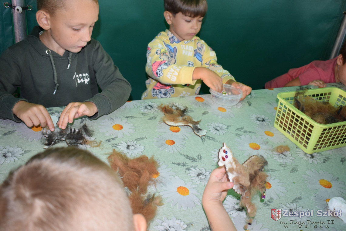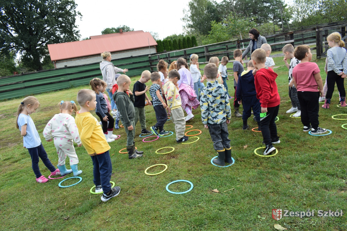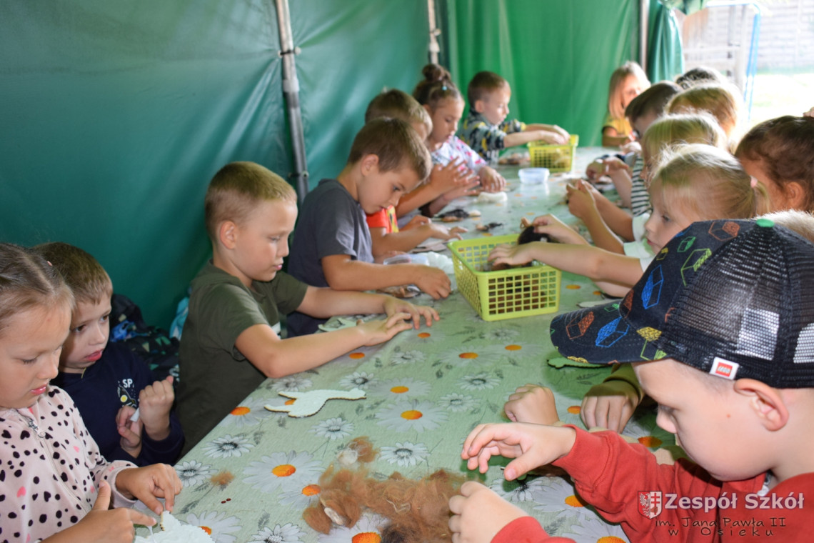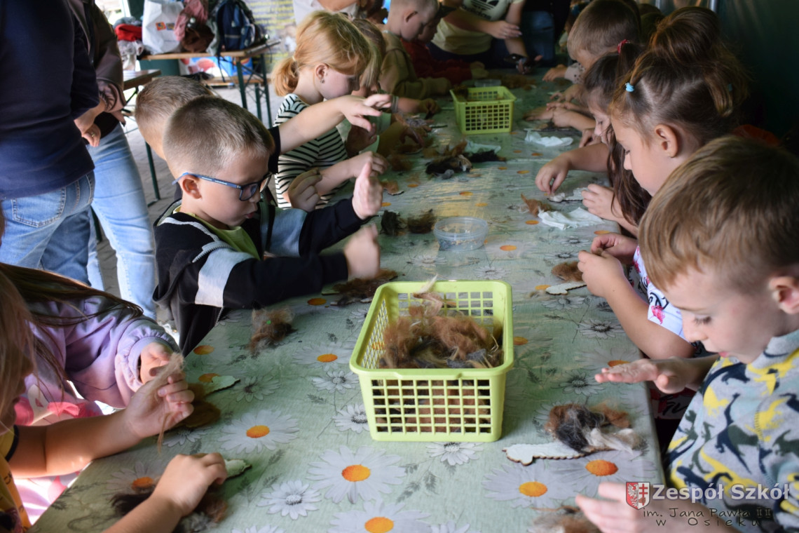 15 września  2025 r. dzieci z grupy 5 i 6 latki wraz                                             z wychowawczyniami: p. Anną Kos, p. Magdaleną Kos i p. Eweliną Mikus  pojechały na wycieczkę do "Ranczo Alpaki" w Woli Baranowskiej. Celem wycieczki było obcowanie z przyrodą ożywioną –zwierzętami mieszkających na ranczo, promowanie aktywnego i zdrowego stylu życia , aktywny wypoczynek na świeżym powietrzu, kształtowanie wrażliwości i szacunku do zwierząt. Przedszkolaki mogły zobaczyć: alpaki, kangury, kózki miniaturowe, kucyki, papugi, kanarki, surokatki, króliki, wielbłądy, strusie, wiewiórki, jeżozwierze, miniaturową krowę, kucyki, owieczki, kangury, strusie, czarne łabędzie, piękne pawie oraz kaczki. Dzieci mogły karmić i głaskać zwierzęta. Wiele  radości sprawiły dzieciom warsztaty rękodzielnicze, na których każde dziecko ozdabiało swoją alpakę, zabawy przy muzyce z animatorką i dmuchane atrakcje. Na zakończenie spotkania przedszkolaki otrzymały dyplomy "Przyjaciela alpak" i zjadły przepyszne kiełbaski z ogniska. To był dzień pełen wrażeń.