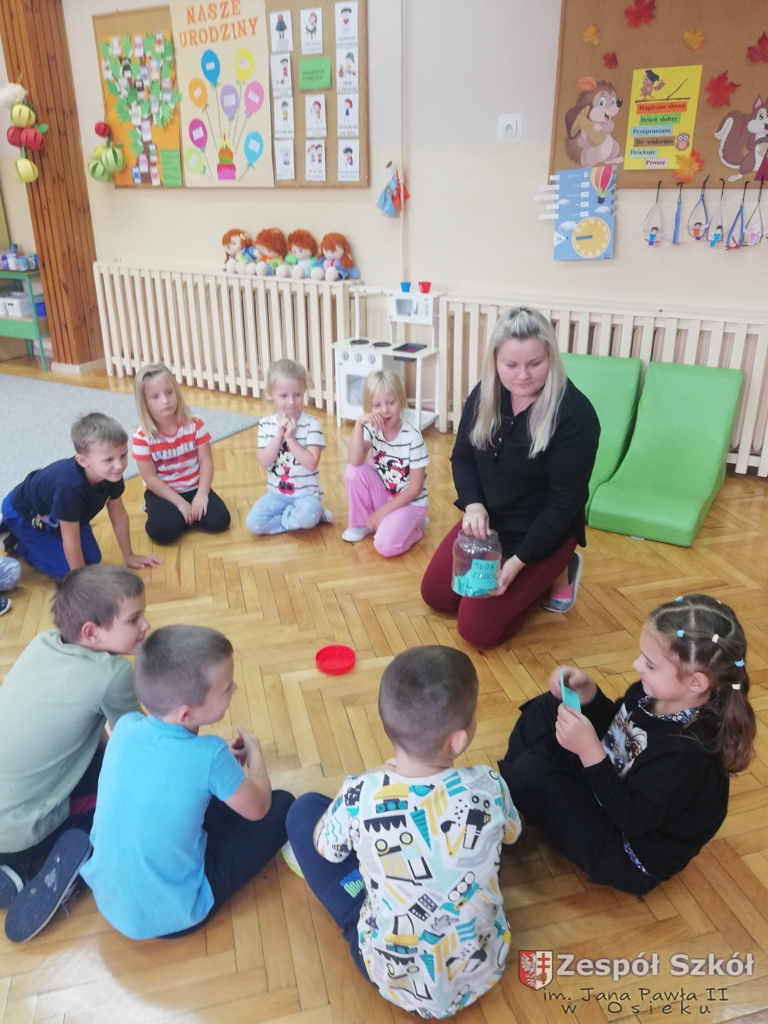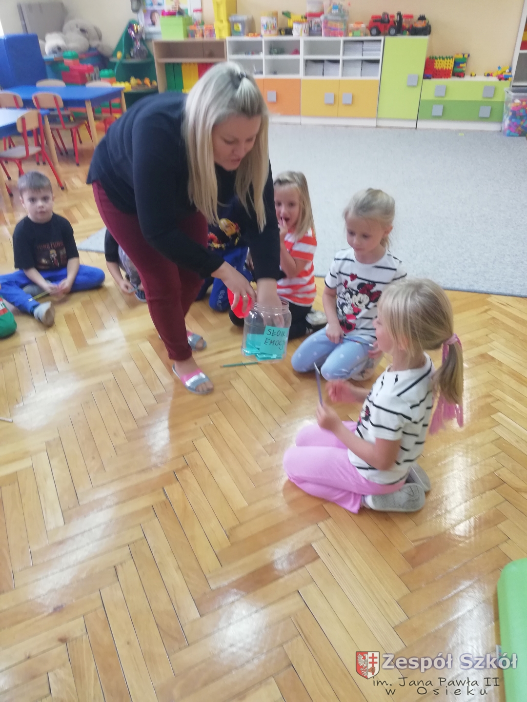 3 października w ramach tygodnia Przeciwdziałania Przemocy Rówieśniczej dzieci z grupy 6 latki wzięły udział w zajęciach podczas których rozmawiały na bardzo ważny temat -emocji i przyjaźni. Podczas rozmowy o emocjach, dzieci zastanawiały się czym jest przemoc, jakie uczucia pojawiają się gdy ktoś nas skrzywdzi, dzielili się swoimi postrzeżeniami, przedstawiali miejsca w których czują się spokojnie i bezpiecznie . Zastanawiały się jak można rozwiązywać konflikty i budować pozytywne relacje w grupie. Nie zabrakło też zabaw integracyjnych , które wyzwoliły u dzieci wiele pozytywnych emocji.