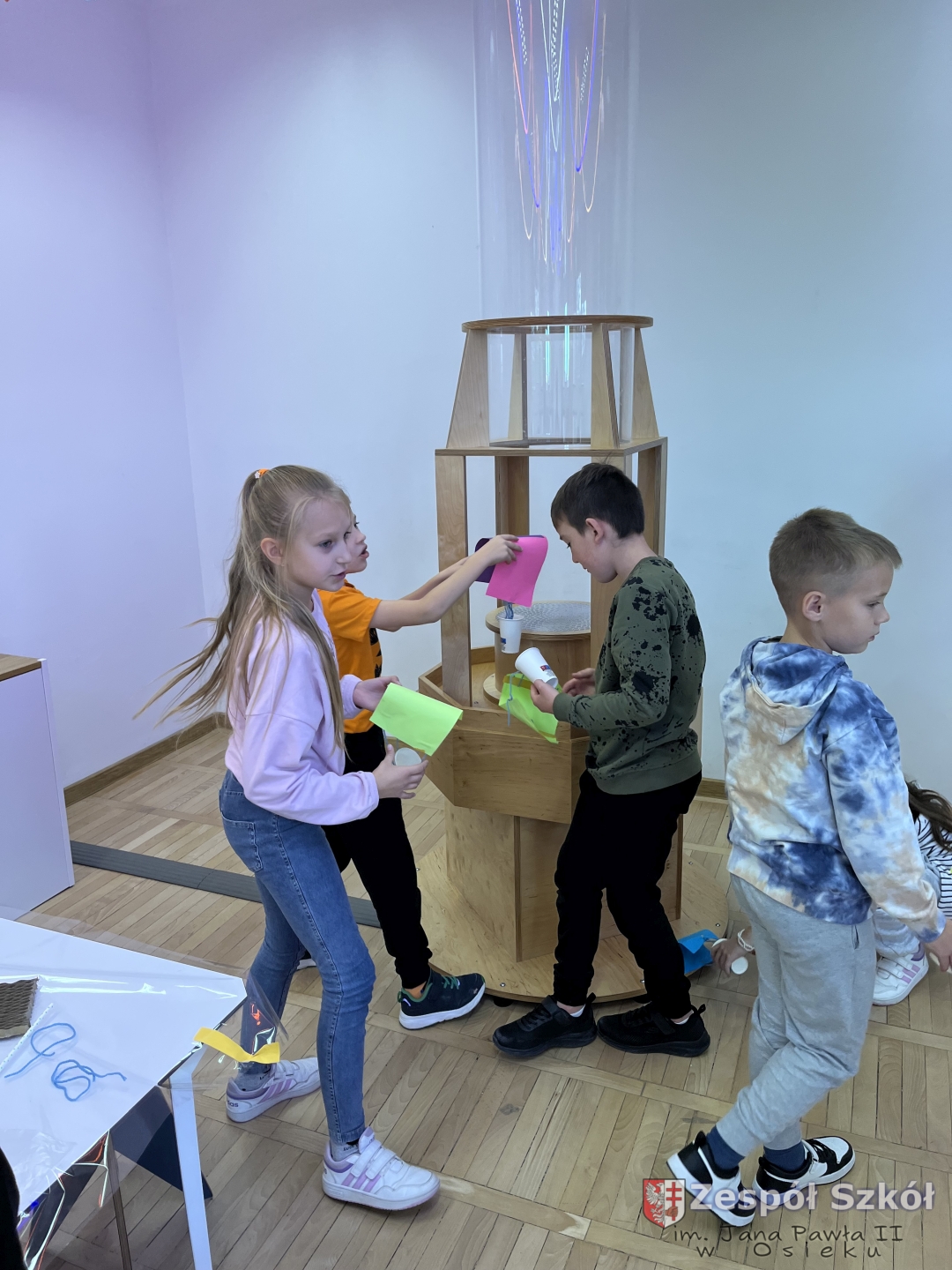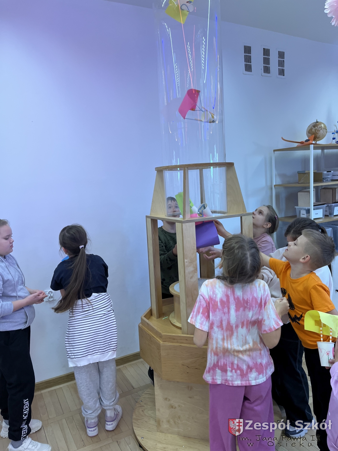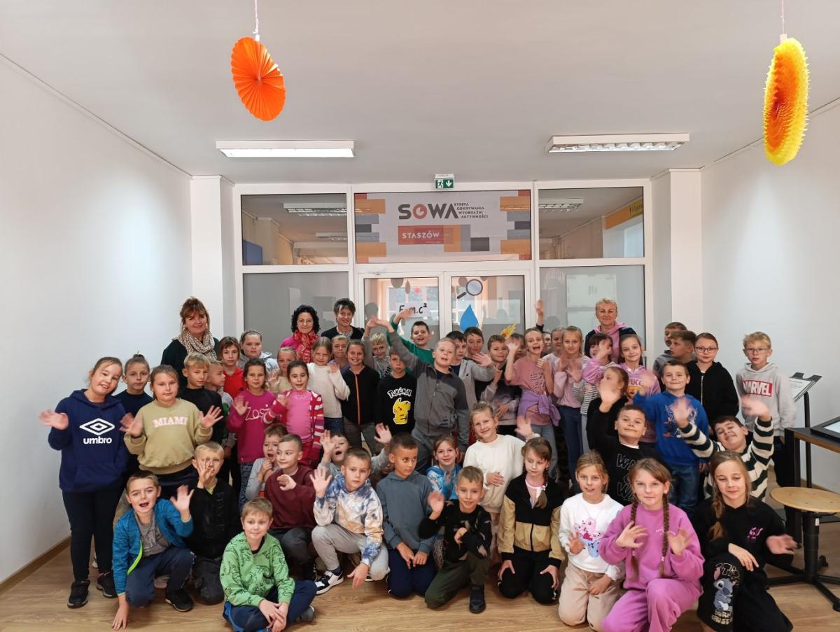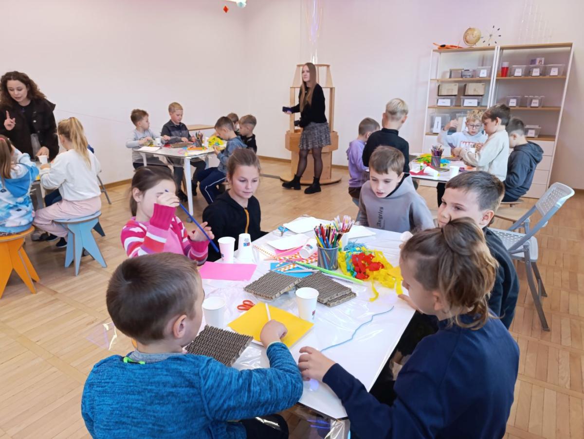 Po obejrzeniu spektaklu udaliśmy się na warsztaty edukacyjne do Strefy Odkrywania, Wyobraźni i Aktywności. Uczniowie w „Majsterni” brali udział w warsztatach, na których poznawali ciekawostki o sile grawitacji, wykonywali spadochrony i ruchomą lawę. Następnie miło spędzali czas na interaktywnej wystawie, gdzie mieli do dyspozycji kilkanaście stacji badawczych, przy których obserwowali i eksperymentowali, a przede wszystkim dobrze się bawili. Było to wspaniałe połączenie nauki, wyobraźni i eksperymentowania. Uczniowie wrócili do szkoły pełni niesamowitych wrażeń i przeżyć.