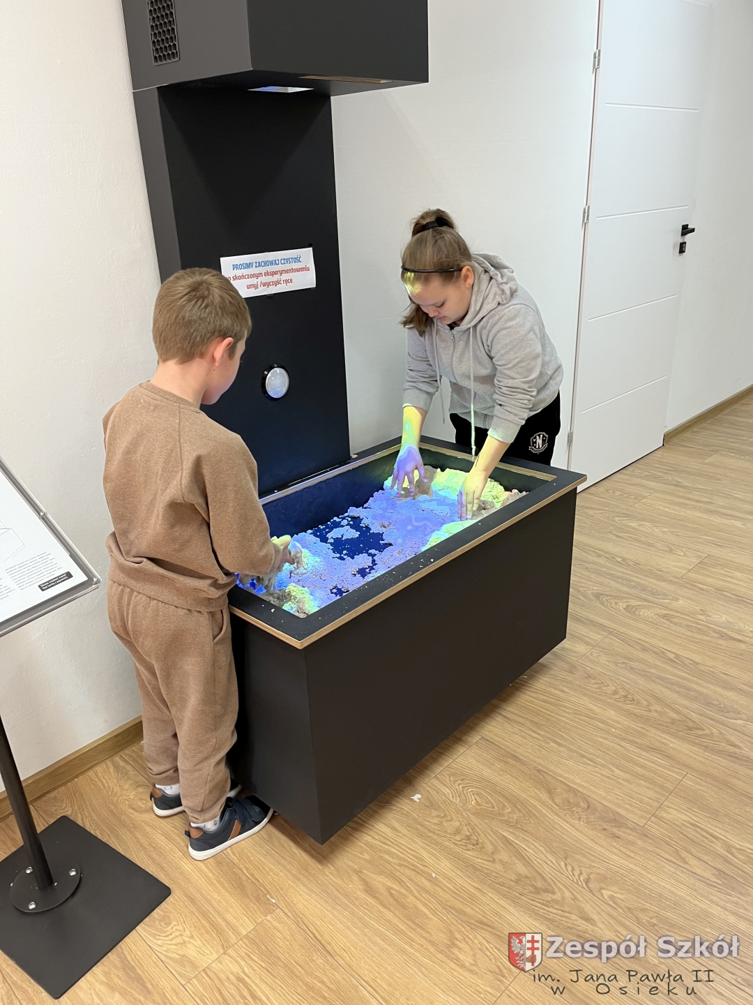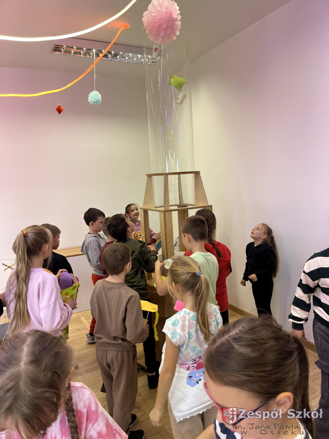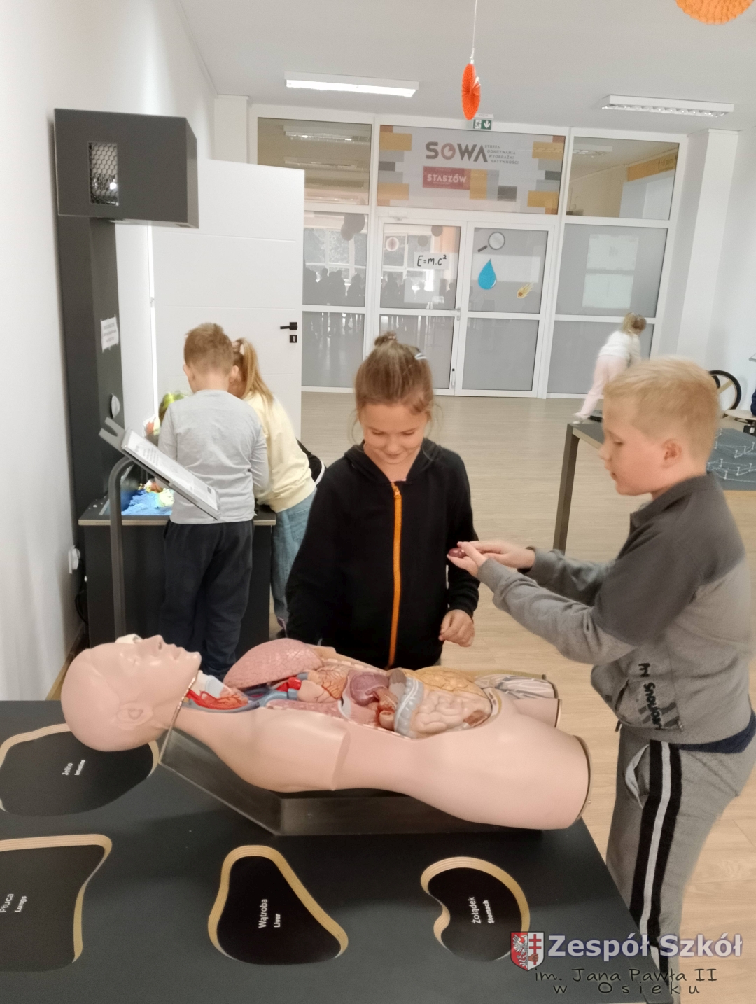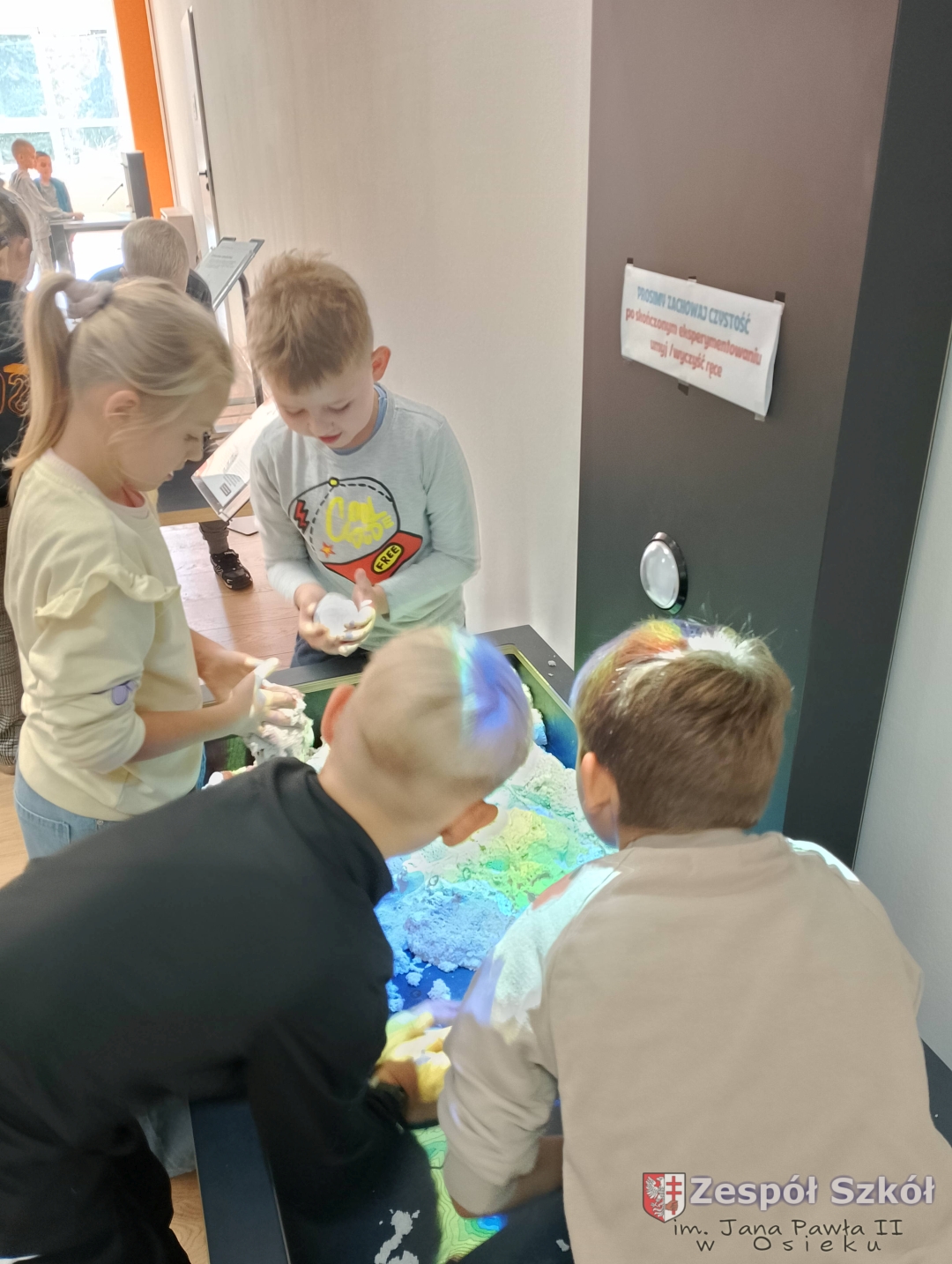 Po obejrzeniu spektaklu udaliśmy się na warsztaty edukacyjne do Strefy Odkrywania, Wyobraźni i Aktywności. Uczniowie w „Majsterni” brali udział w warsztatach, na których poznawali ciekawostki o sile grawitacji, wykonywali spadochrony i ruchomą lawę. Następnie miło spędzali czas na interaktywnej wystawie, gdzie mieli do dyspozycji kilkanaście stacji badawczych, przy których obserwowali i eksperymentowali, a przede wszystkim dobrze się bawili. Było to wspaniałe połączenie nauki, wyobraźni i eksperymentowania. Uczniowie wrócili do szkoły pełni niesamowitych wrażeń i przeżyć.