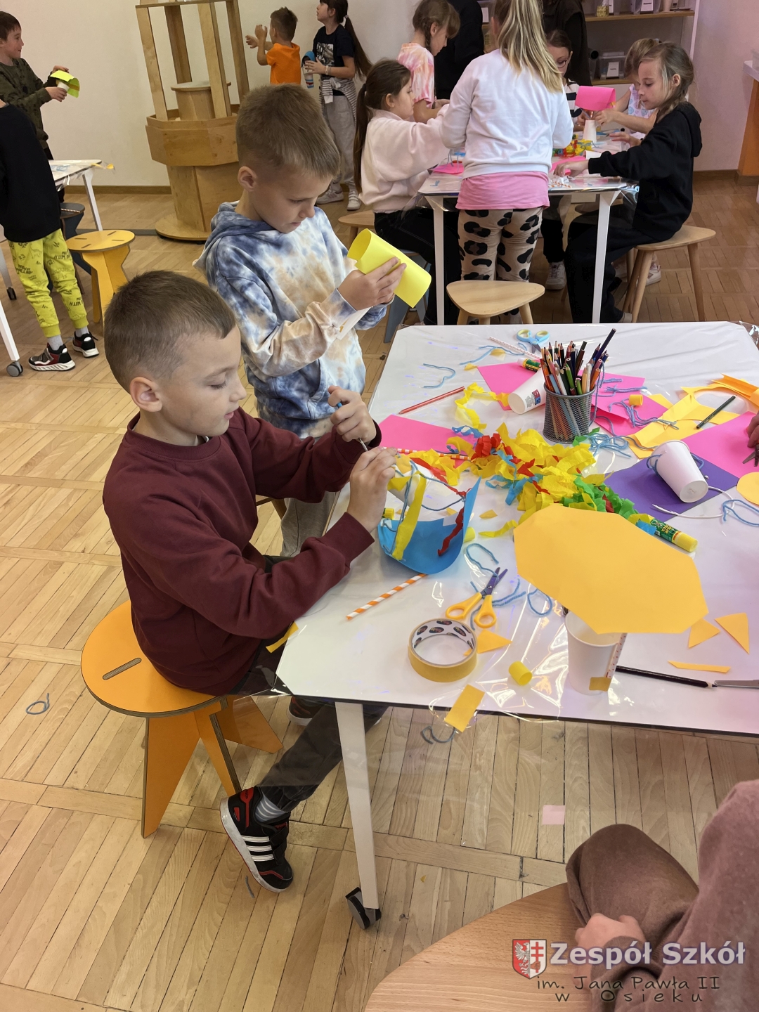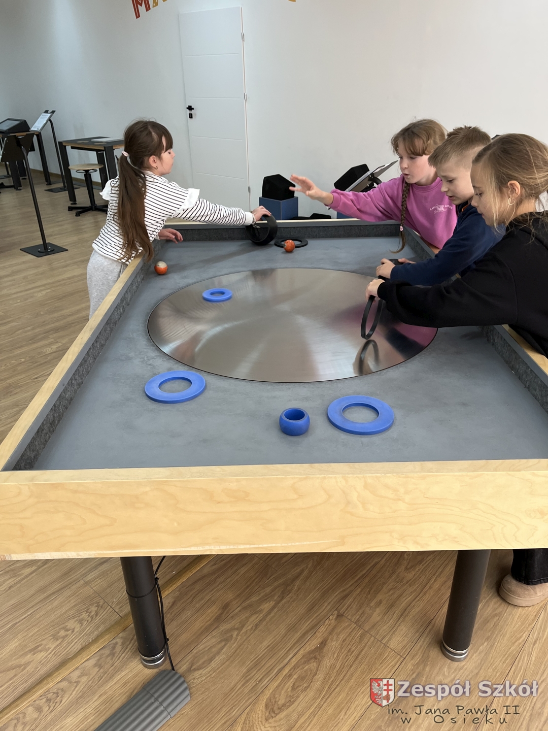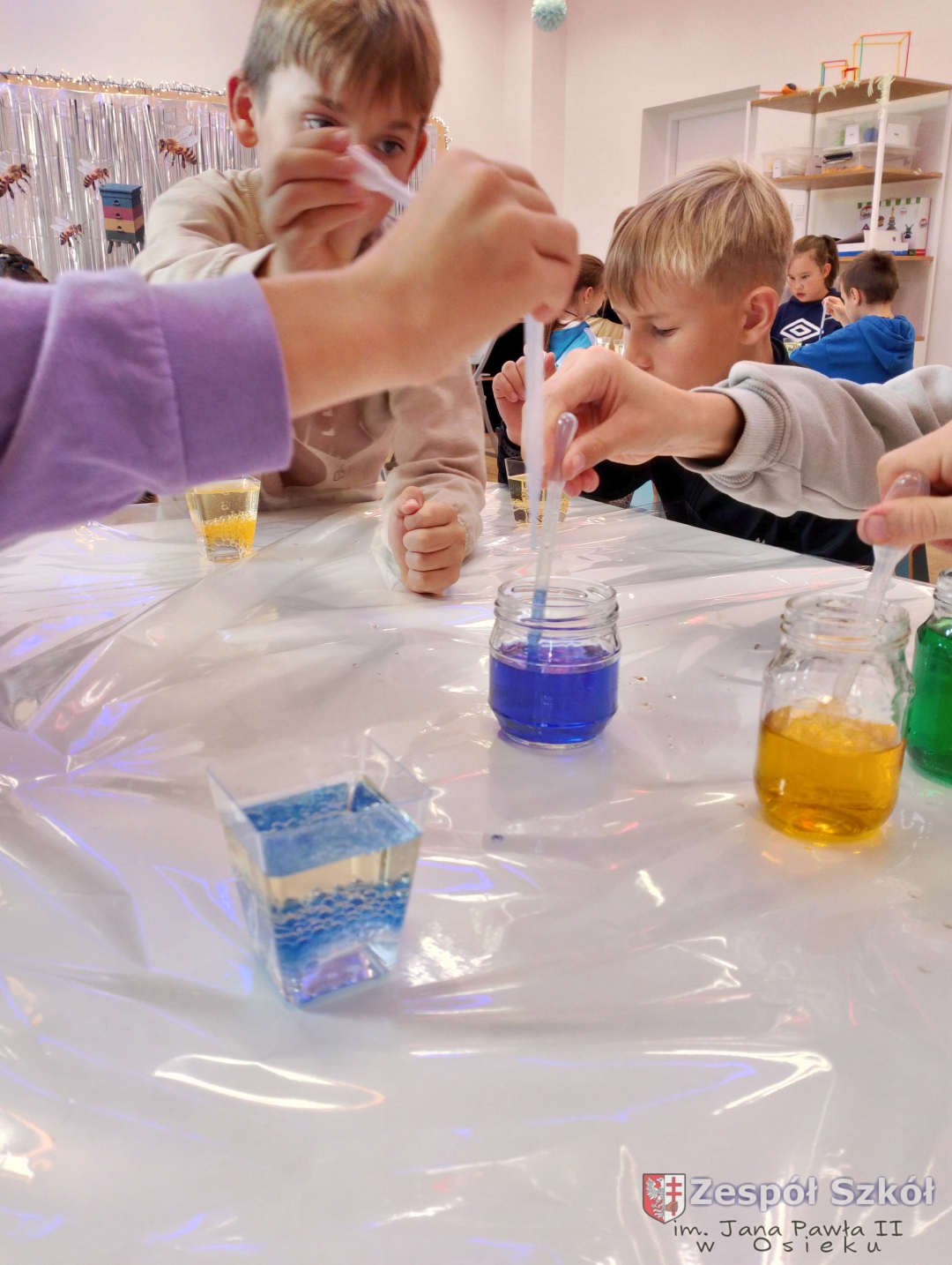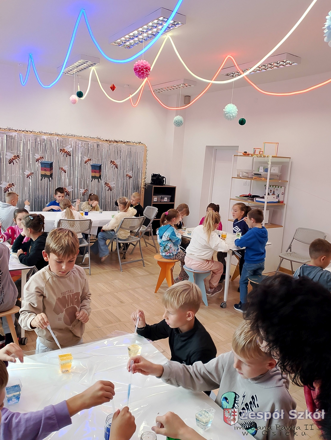 Po obejrzeniu spektaklu udaliśmy się na warsztaty edukacyjne do Strefy Odkrywania, Wyobraźni i Aktywności. Uczniowie w „Majsterni” brali udział w warsztatach, na których poznawali ciekawostki o sile grawitacji, wykonywali spadochrony i ruchomą lawę. Następnie miło spędzali czas na interaktywnej wystawie, gdzie mieli do dyspozycji kilkanaście stacji badawczych, przy których obserwowali i eksperymentowali, a przede wszystkim dobrze się bawili. Było to wspaniałe połączenie nauki, wyobraźni i eksperymentowania. Uczniowie wrócili do szkoły pełni niesamowitych wrażeń i przeżyć.