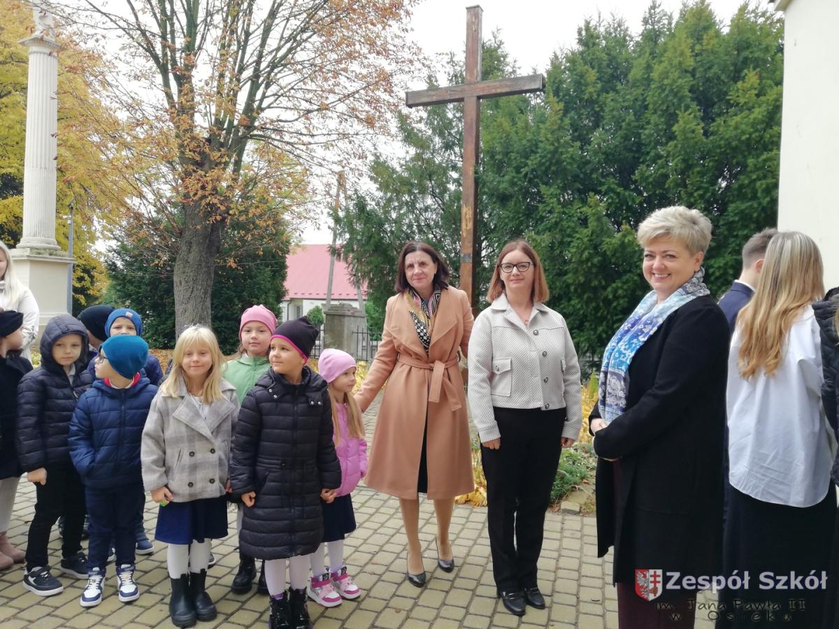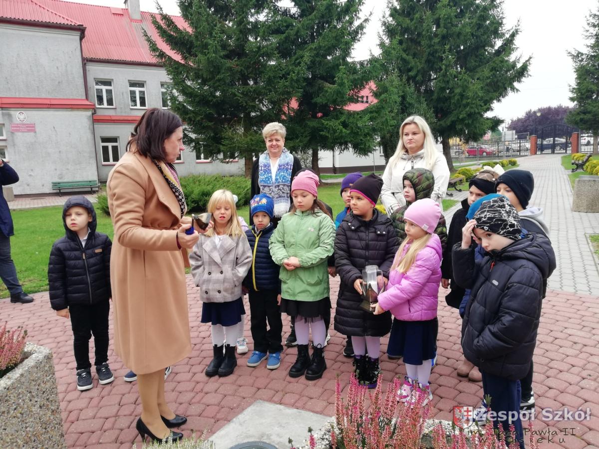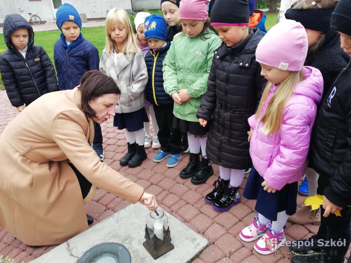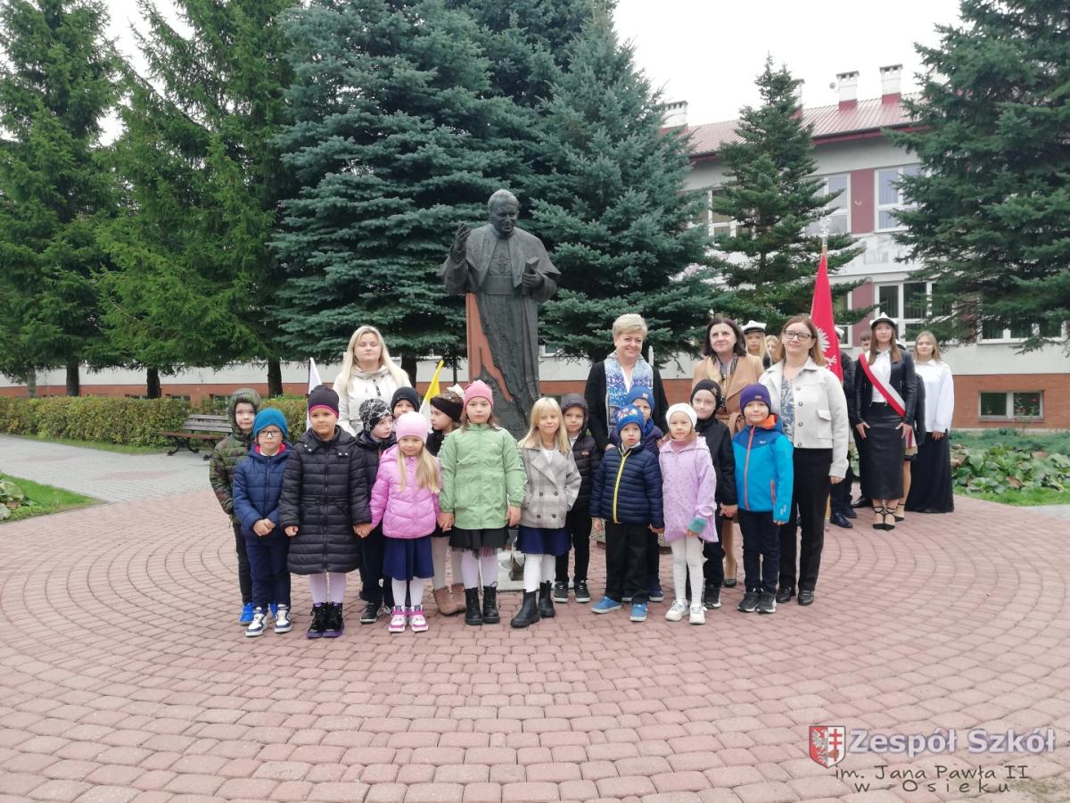 16.10.2025 r. sześciolatki z Publicznego Przedszkola w Osieku uczestniczyły w uroczystościach dnia patrona szkoły zorganizowanych przez Zespół Szkół. Dzieci wzięły udział we mszy świętej a następnie zapaliły znicz pod pomnikiem Jana Pawła II, który jest patronem naszej szkoły.
