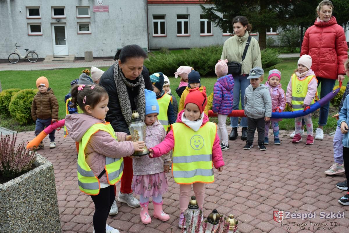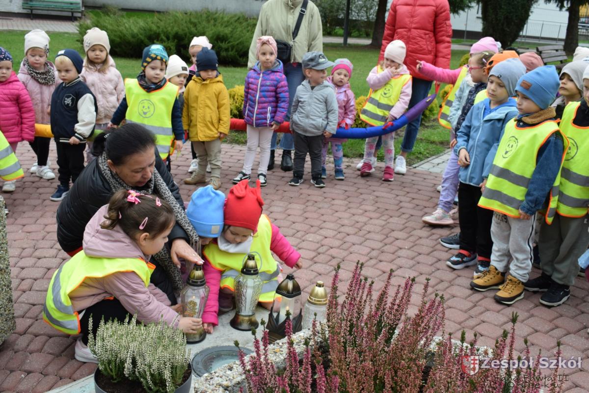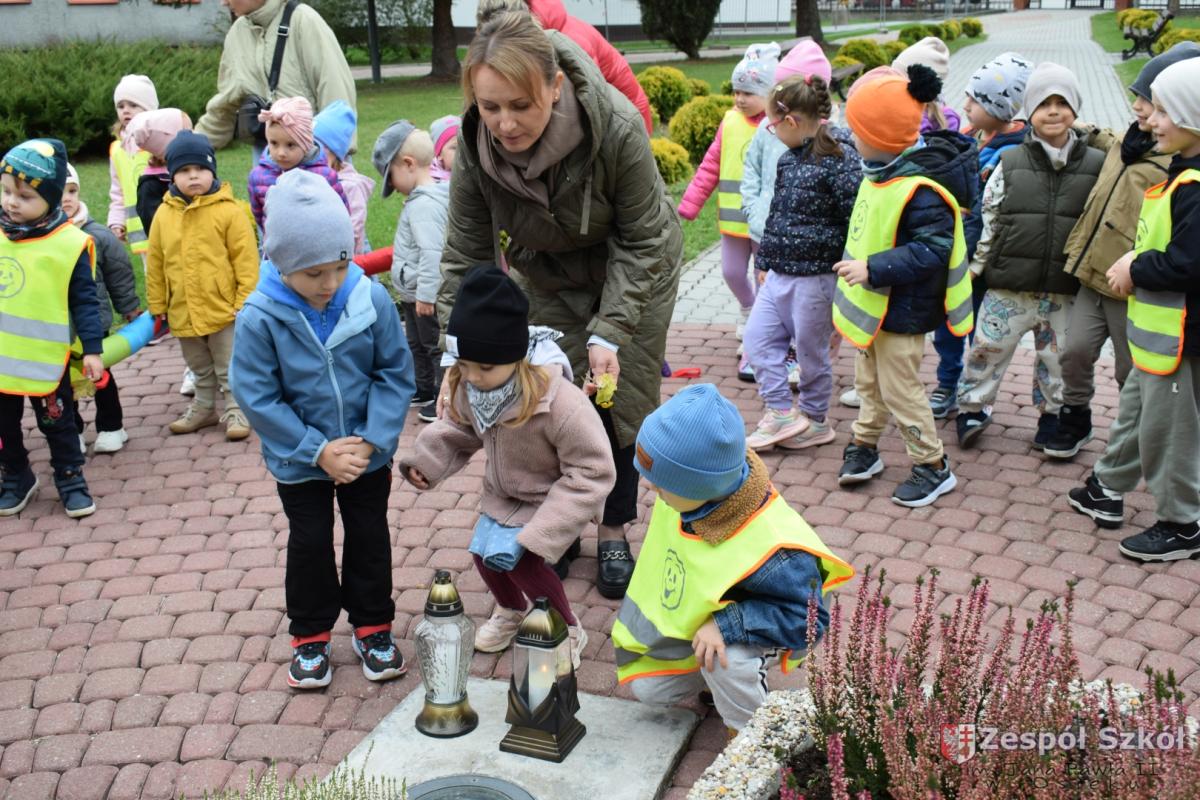 Przedszkolaki zapaliły znicze pod pomnikiem patrona szkoły