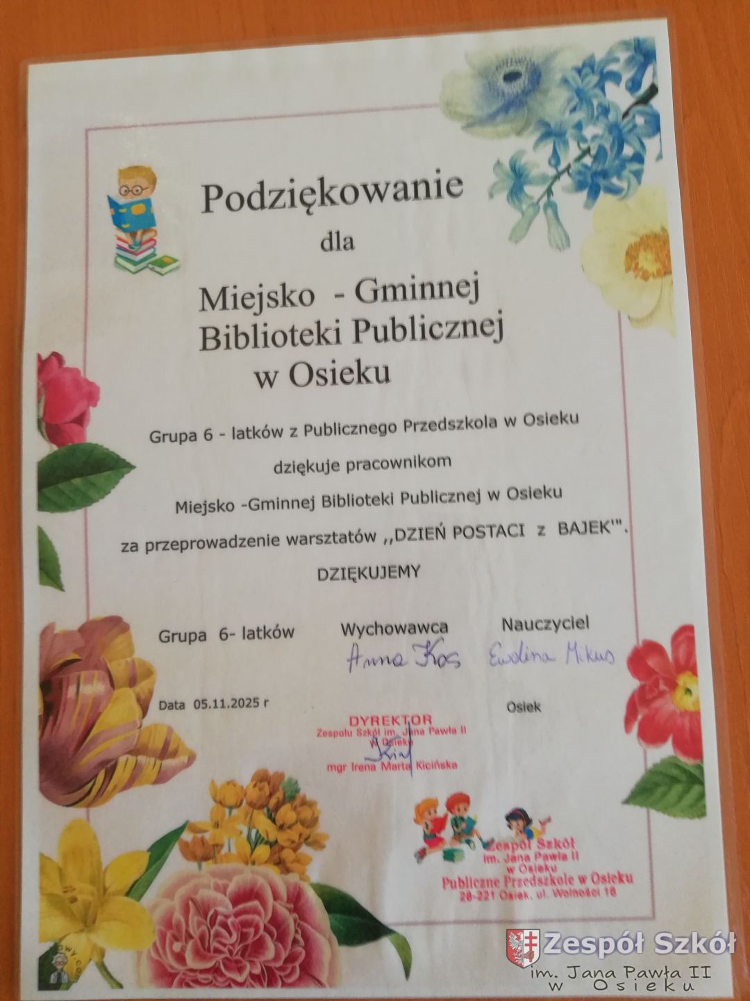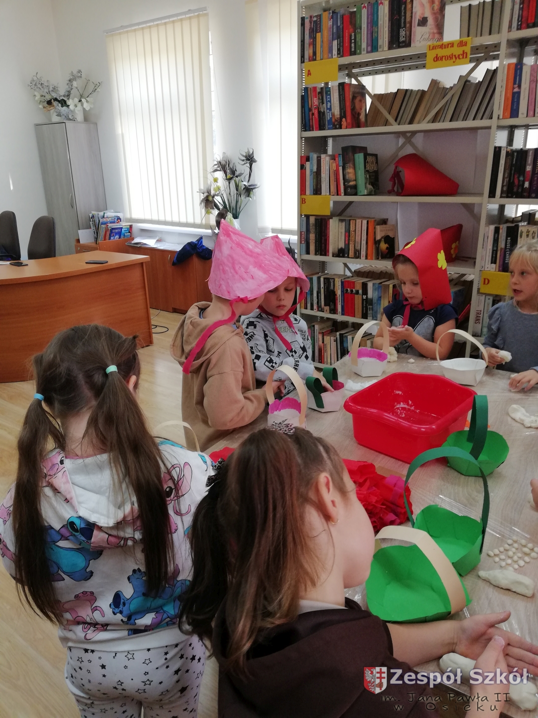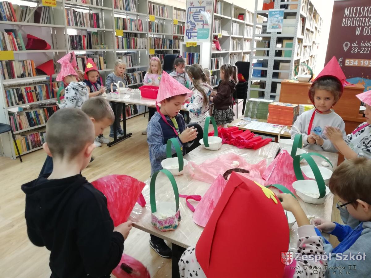 Z okazji Światowego Dnia Postaci z Bajek dzieci z grupy 6-latki z Publicznego Przedszkola w Osieku w dniu 5 listopada odwiedziły Miejsko-Gminną Bibliotekę Publiczną W Osieku. Celem wycieczki było przypomnienie postaci z kultowych bajek jak również zwrócenie uwagi na rolę wychowawczą i edukacyjną bajki: rozróżnianie dobra od zła, kształtowanie prawidłowych zachowań wśród dzieci. Przedszkolaki uczestniczyły w konkursach i quizach, wysłuchały bajki,, Czerwony Kapturek " , a następnie wzięły udział w warsztatach: ozdabiały czapki kwiatkami i piórkami, sklejały przygotowane koszyczki i lepiły z masy solnej elementy do koszyczka.