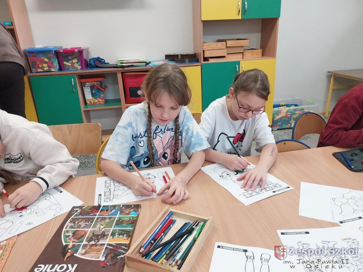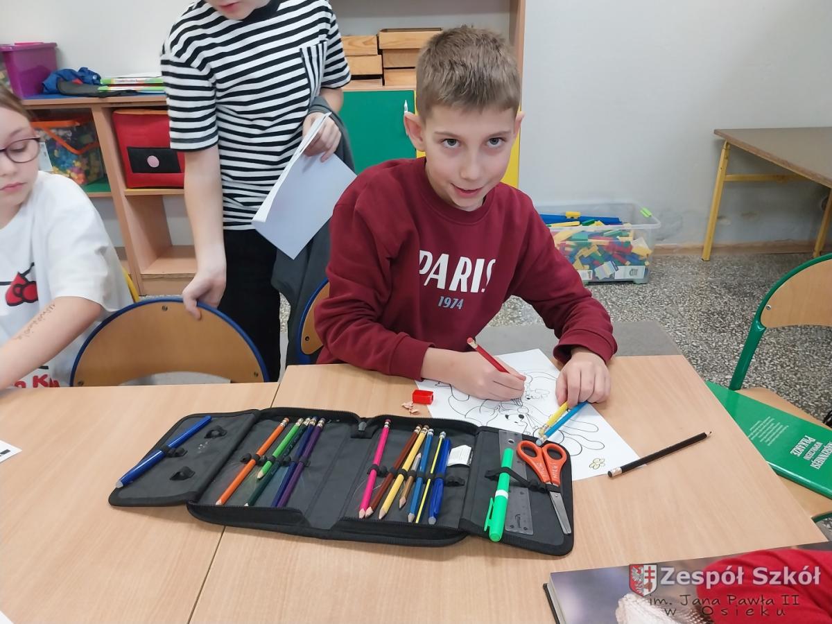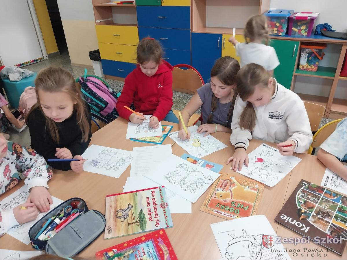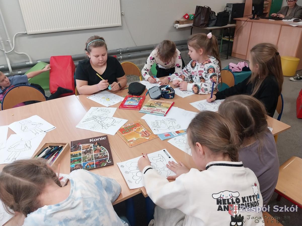 Dnia 14 listopada 2025r. uczniowie klas I-III uczęszczający na świetlicę szkolną uczestniczyli w lekcji pt. „Podróż do krainy bajek i baśni”- lekcja ta została zorganizowana w ramach realizacji narodowego Programu Rozwoju Czytelnictwa przy współpracy ze szkolną biblioteką. Uczniowie podczas lekcji czytały fragmenty bajek i baśni, chętnie uczestniczyli w quizach i zagadkach dotyczących postaci z ich ulubionych bajek oraz kolorowały kolorowanki z ulubionymi bohaterami bajek i baśni. Dzięki tym zajęciom dzieci pogłębiły swoją wiedzę z zakresu znajomości bajek i baśni, kształtowali umiejętność współpracy a także ćwiczyły umiejętność słuchania, koncentracji i wypowiedzi.