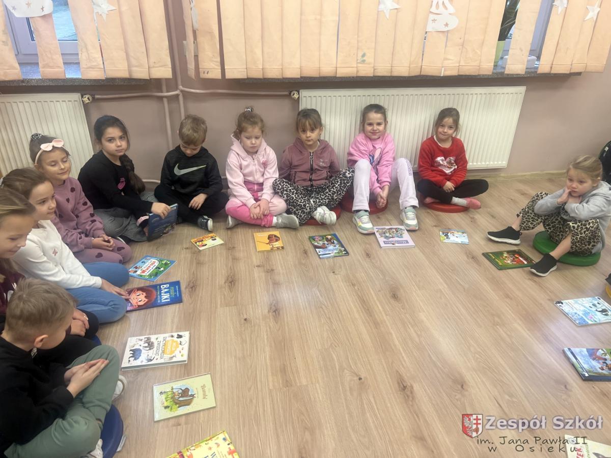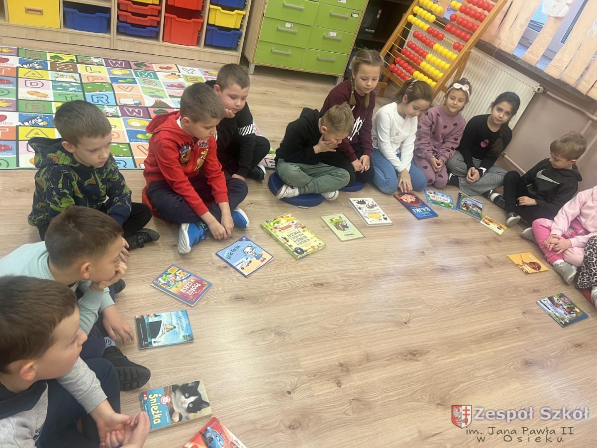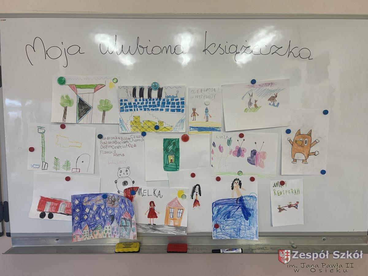 Zajęcia rozpoczęły się rozmową kierowaną na temat ulubionych książek uczniów. Rozmowa była okazją do poznania preferencji czytelniczych uczniów oraz do zachęcenia ich do korzystania z biblioteki szkolnej. Wspólnie z uczniami przeprowadzono burzę mózgów dotyczącą znaczenia czytania. W kolejnej części lekcji uczniowie zastanawiali się, jak wyglądałby świat, gdyby nie było w nim książek. Wspólnie tworzyli wizję takiego świata, wskazując, co mogłoby zostać utracone: wiedza, rozrywka, możliwość rozwijania wyobraźni, poznawania przygód bohaterów literackich. Uczniowie uczestniczyli w krótkiej inscenizacji znanej bajki „Czerwony Kapturek”. Po podziale ról dzieci mogły odgrywać postacie z bajki, wykorzystując swoją wyobraźnię i ekspresję artystyczną. Ćwiczenie sprzyjało rozwijaniu umiejętności dramowych, współpracy oraz śmiałości w wystąpieniach przed grupą. Na zakończenie zajęć dzieci wykonały prace plastyczne przedstawiające ich ulubione książeczki. Prace były kolorowe i kreatywne, a uczniowie z zaangażowaniem opowiadali, dlaczego właśnie tę książkę wybrali.