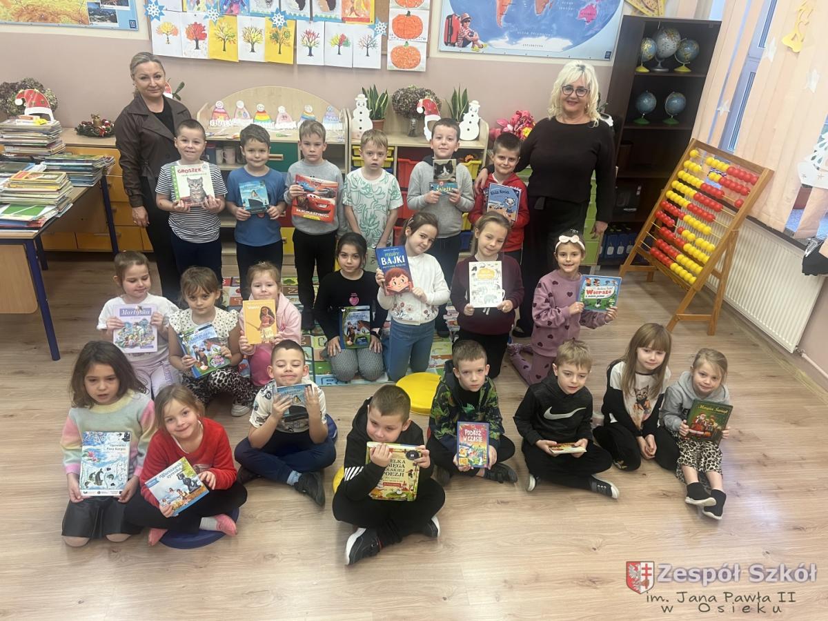 W dniu 01 grudnia 2025 r. we współpracy z biblioteką szkolną, w klasach 1a i 1b przeprowadzono zajęcia czytelnicze realizowane w ramach Narodowego Programu Rozwoju Czytelnictwa. Celem zajęć było rozwijanie zainteresowań czytelniczych uczniów, budowanie pozytywnych skojarzeń z książką oraz kształtowanie nawyku codziennego czytania.
