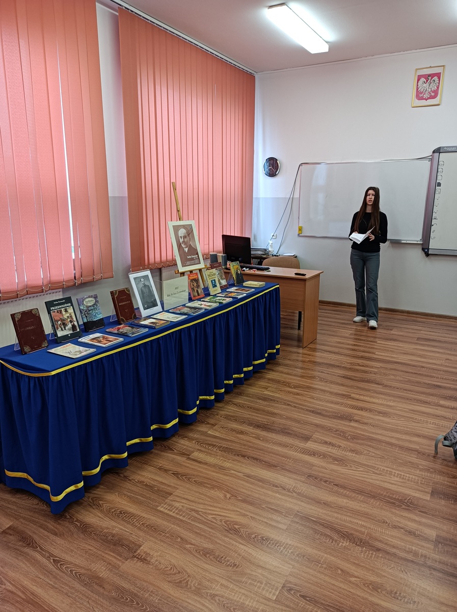 Dopełnieniem lekcji była wystawa dzieł pisarza i publikacji poświęconych jego osobie oraz przygotowana przez uczniów gazetka szkolna popularyzująca wiedzę o patronie roku 2025 wśród młodszych koleżanek i kolegów.
