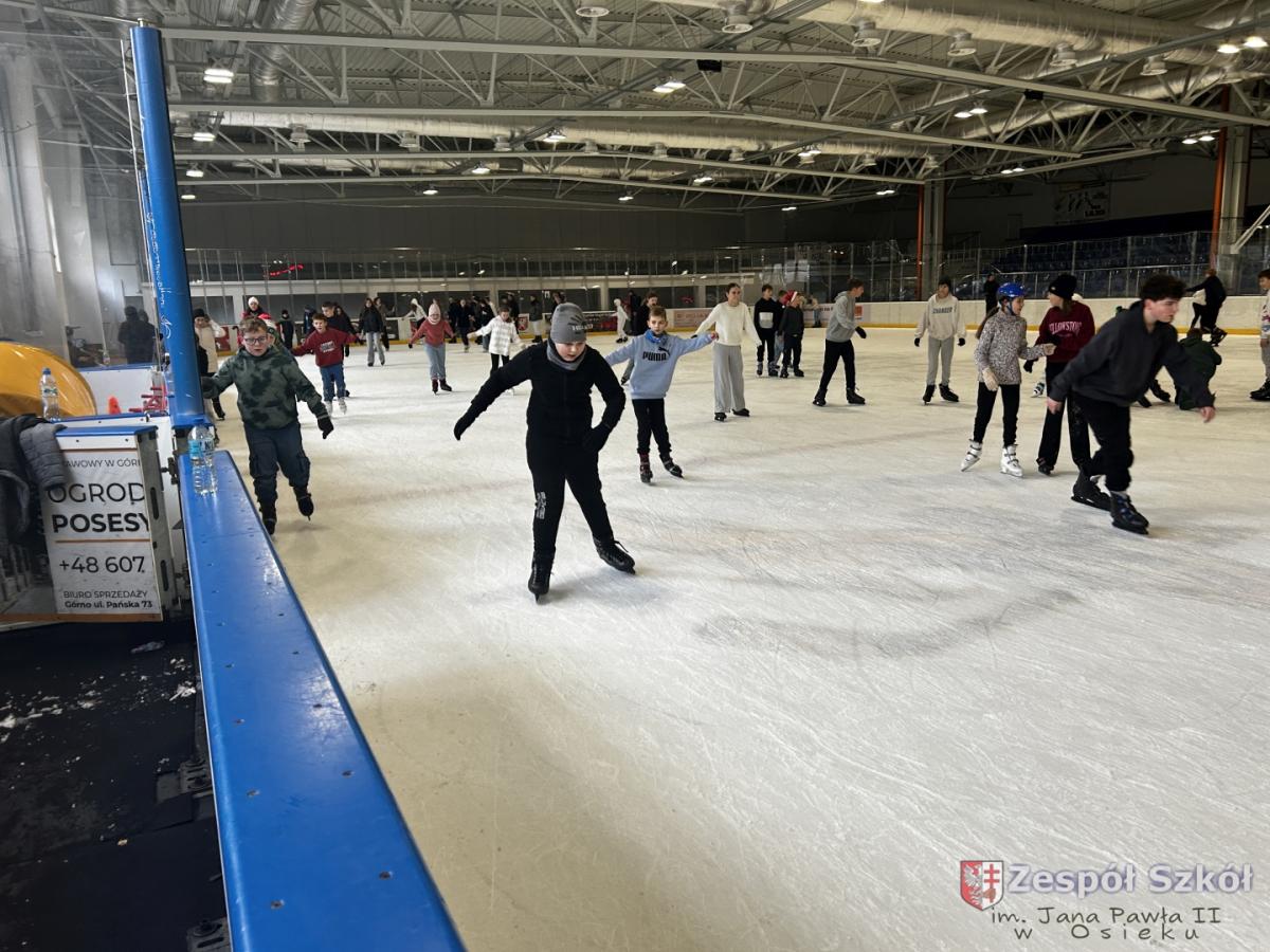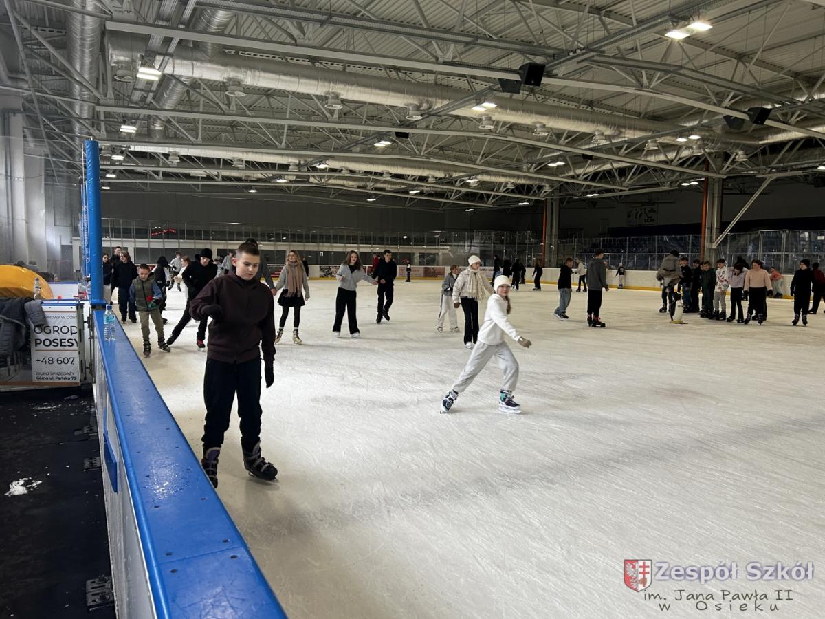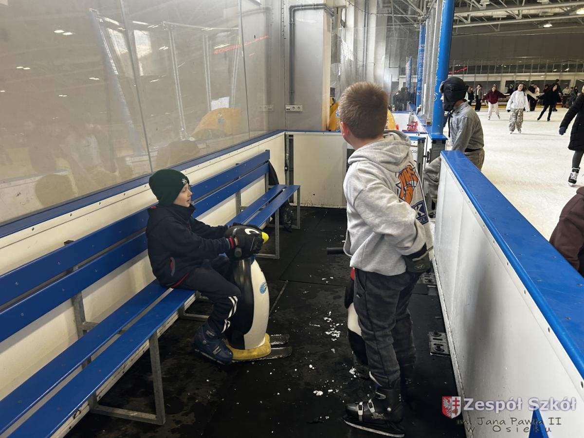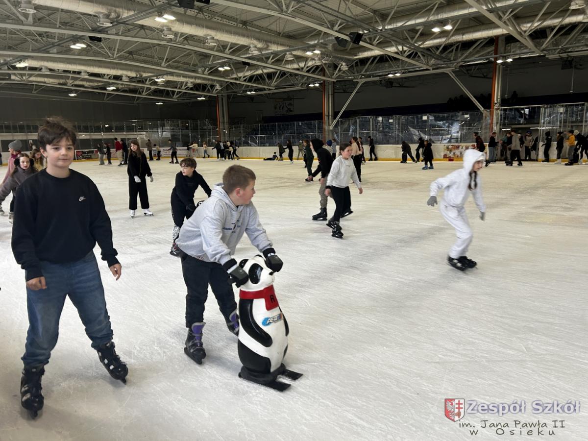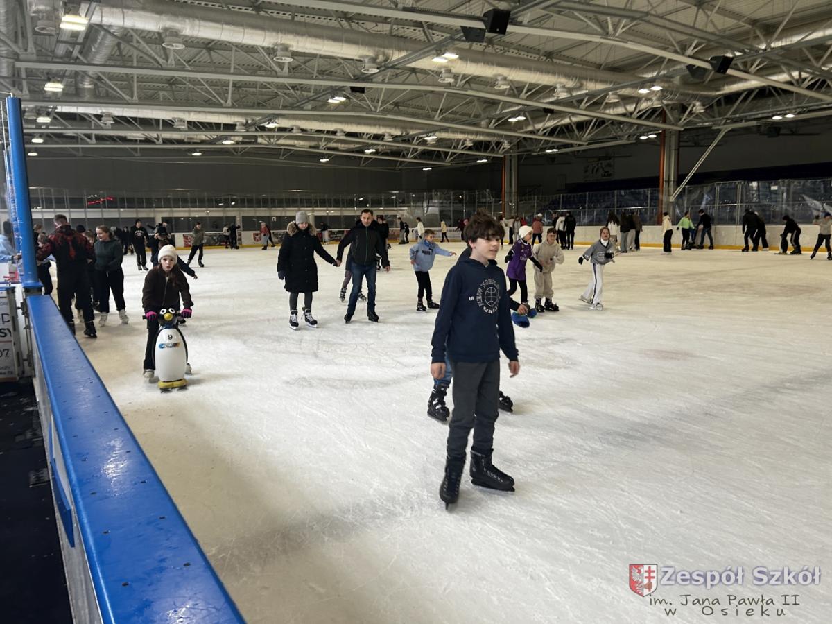 W czwartek 4 grudnia uczniowie klasy IV i kasy V a i b spędzili 2 godziny na lodowisku MOSiR w Dębicy. W tym czasie mieli okazję nie tylko aktywie spędzić czas w gronie kolegów i koleżanek, ale także doskonalić swoje umiejętności jazdy na łyżwach. Jedni doskonalili technikę a niektórzy stawiali pierwsze kroki z mniejszymi lub większymi sukcesami. Można było zauważyć również to, że Ci którzy radzą sobie na lodzie lepiej chętnie i z zaangażowaniem pomagali tym, którzy mieli problemy i trudności. Najważniejsze było to, że wszyscy bawili się świetnie, towarzyszyły im uśmiechy i dobry humor. Po wyczerpującym pobycie na lodowisku wszyscy udaliśmy się do Macdonalda na coś pysznego.