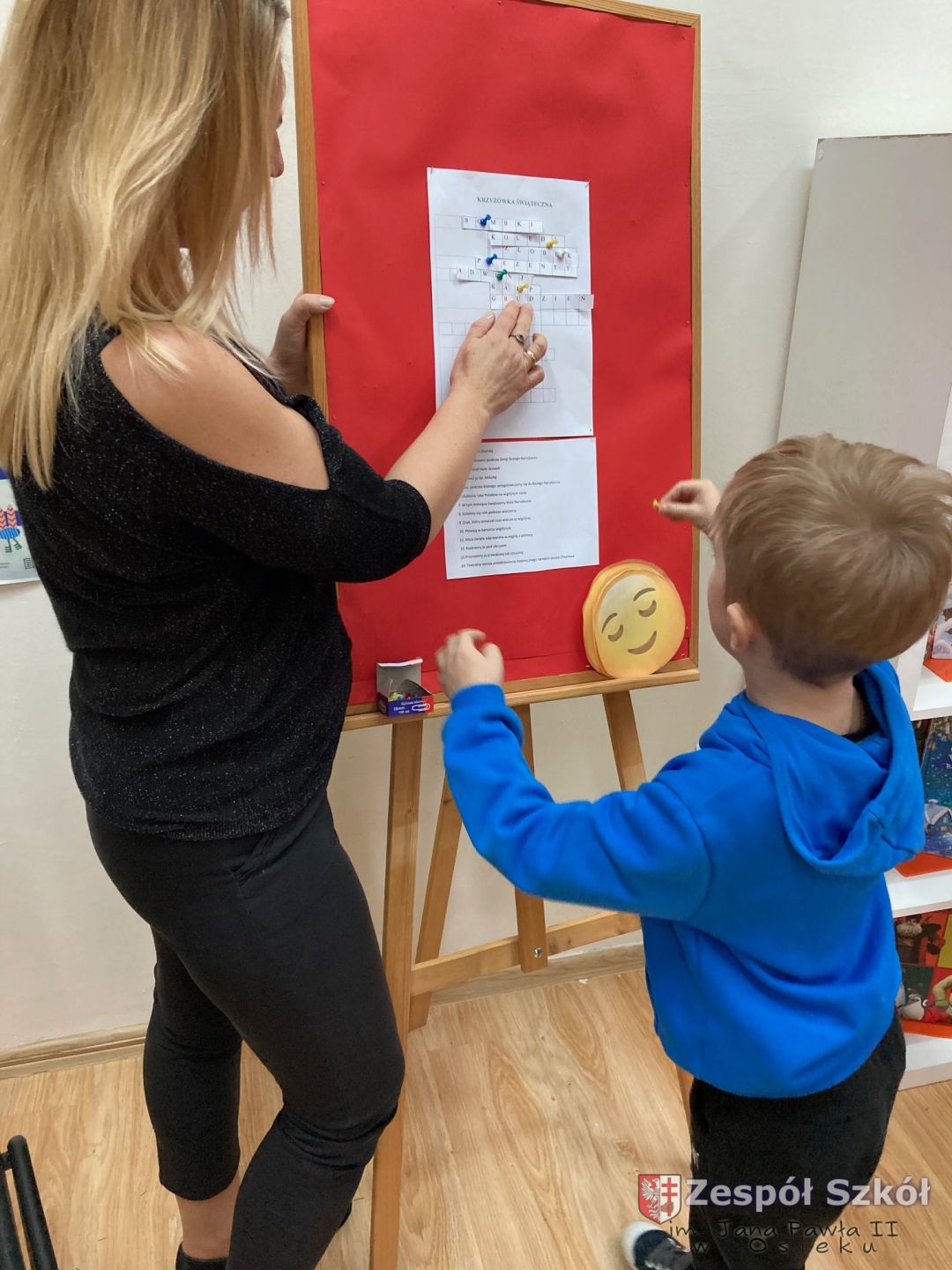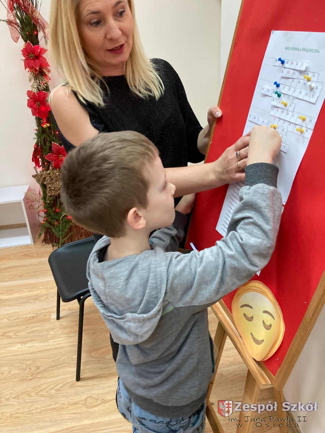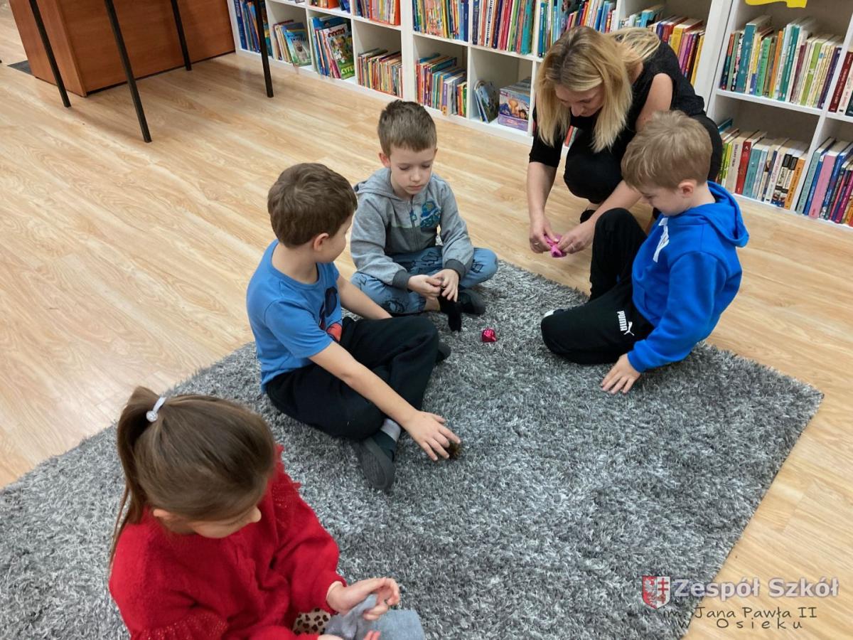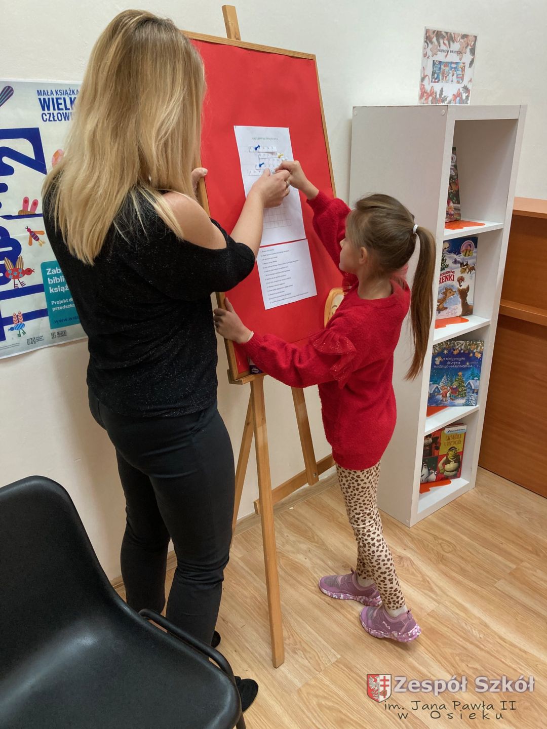 W dniu 11 grudnia uczniowie klasy I a wraz z opiekunami – p. Ewą Kruszewską i p. Anną Winiarską gościli w Miejsko-Gminnej Bibliotece Publicznej w Osieku. Uczniowie uczestniczyli w warsztatach literacko-plastycznych, na których poznali zwyczaje i tradycje bożonarodzeniowe. Podczas warsztatów rozwiązywali świąteczną krzyżówkę, wysłuchali opowiadania z książki pt. „24 historyjki w oczekiwaniu na Gwiazdkę”, rozwiązywali quiz bożonarodzeniowy, odpowiadali na pytania wylosowane z magicznego pudełka. Wzięli również udział w zabawach „Zaczarowany worek Świętego Mikołaja” i Świecące gwiazdki”, które dostarczyły im dużo radości. W drugiej części warsztatów dzieci wykonały piękne świąteczne stroiki.