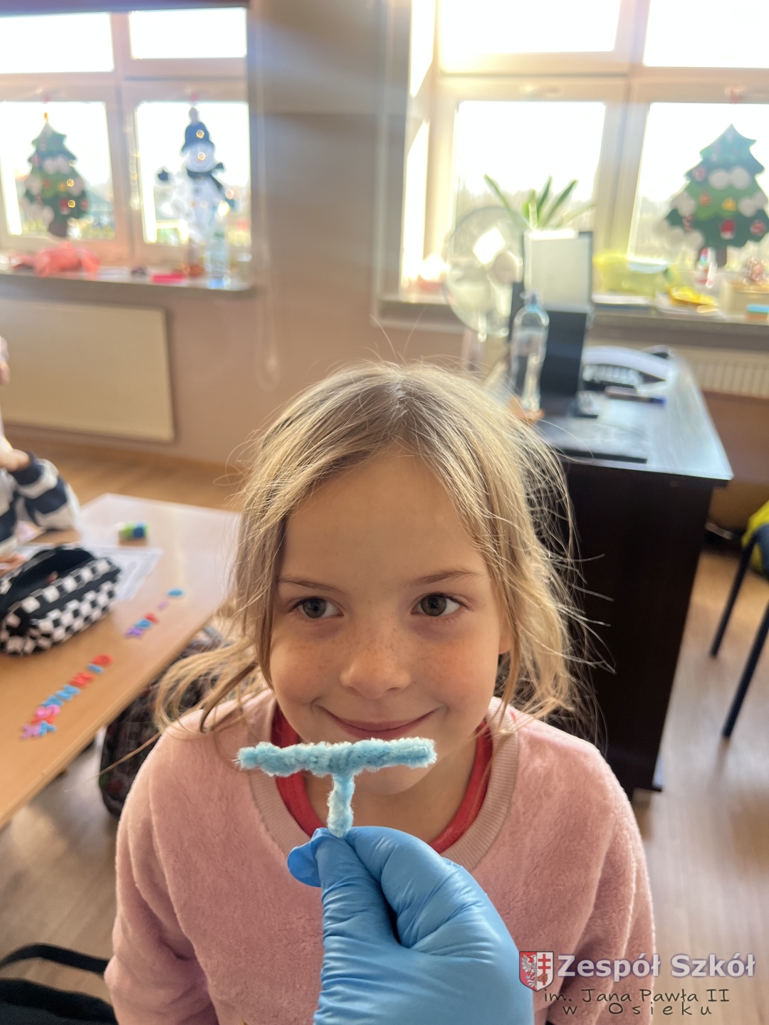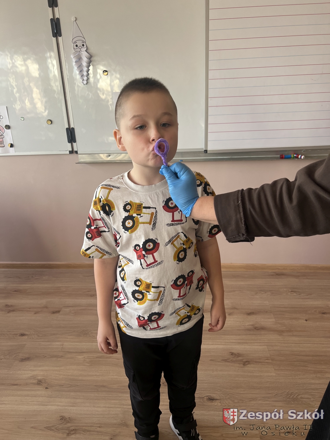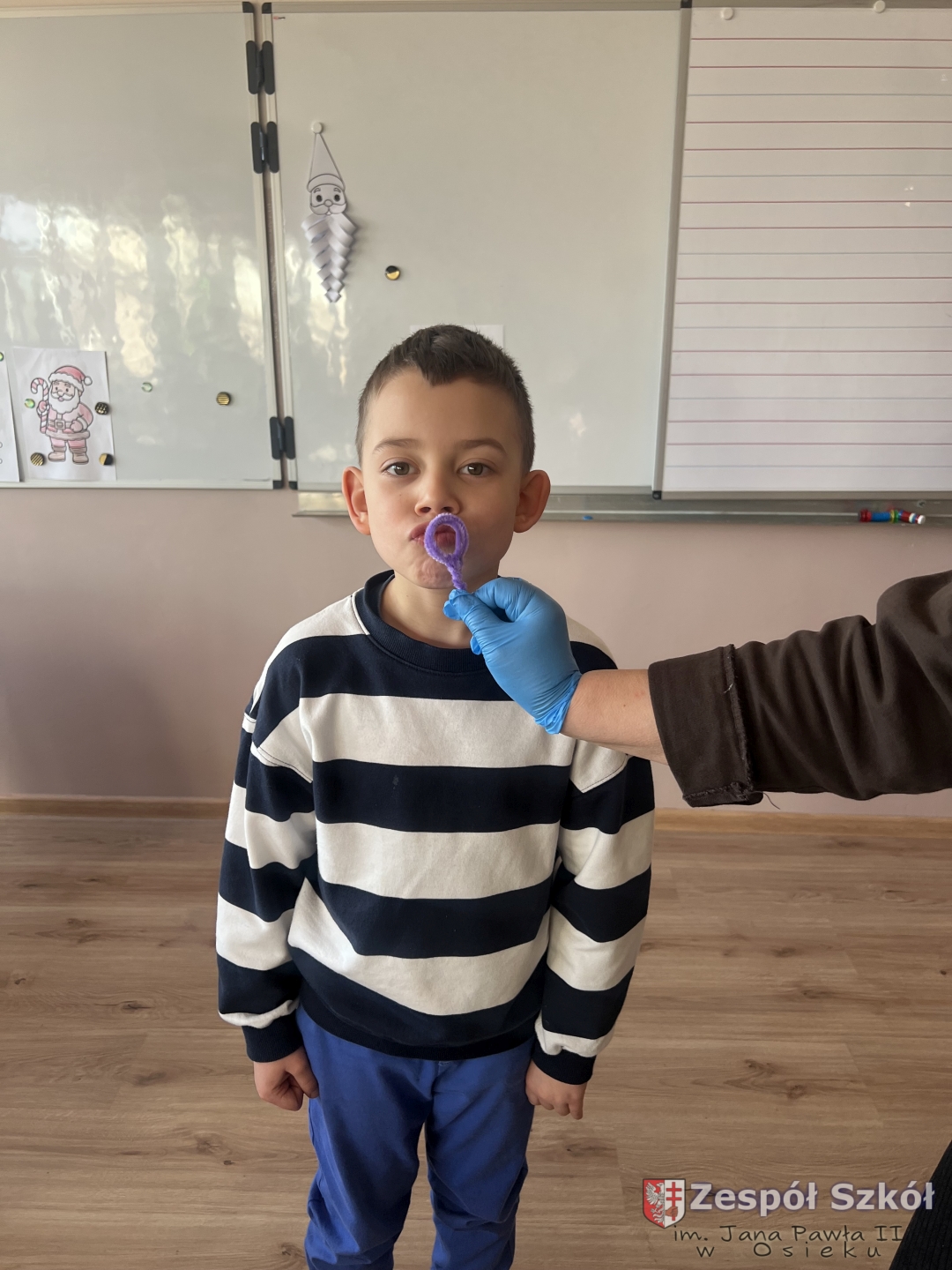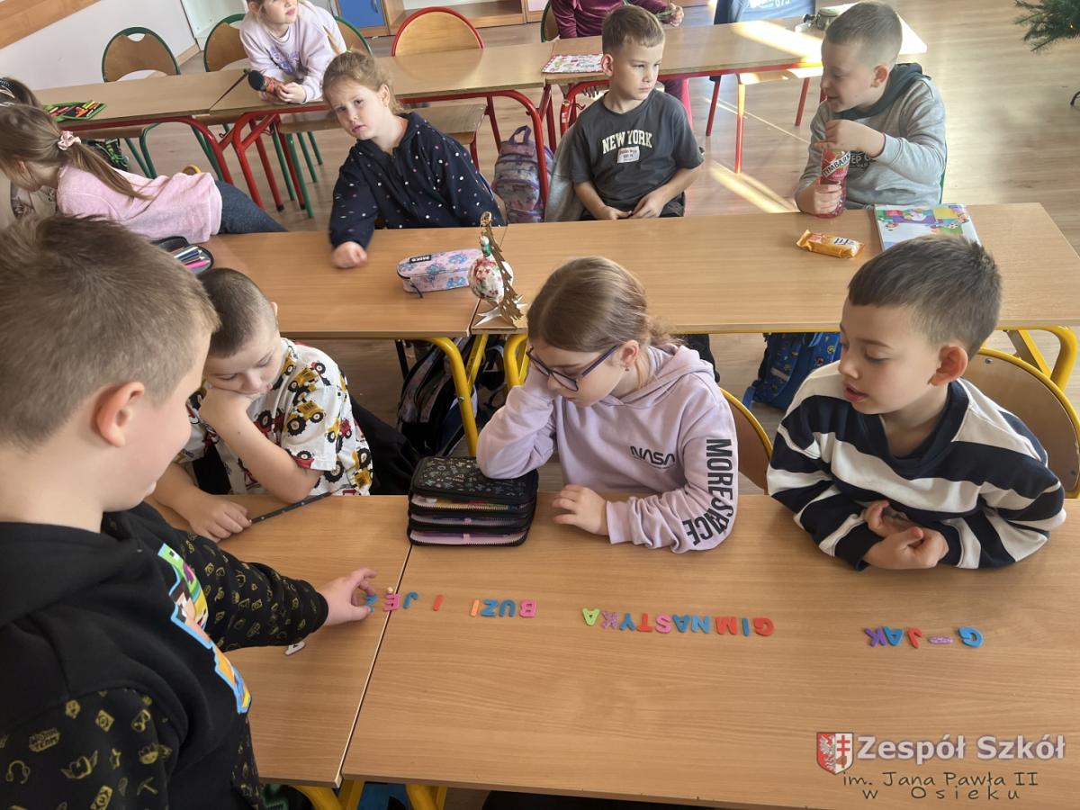 Klasa I b bierze udział w Ogólnopolskim Projekcie Edukacyjnym „Alfabet Logopedyczny”, którego celem jest wspieranie prawidłowego rozwoju mowy dzieci poprzez różnorodne ćwiczenia logopedyczne realizowane w atrakcyjnej formie. Dnia 15 grudnia podczas zajęć w ramach projektu zrealizowaliśmy zadanie „G jak gimnastyka buzi i języka”. Zajęcia miały na celu usprawnianie narządów artykulacyjnych, rozwijanie sprawności języka, warg oraz policzków, a także kształtowanie prawidłowego toru oddechowego. Uczniowie wykonywali zestaw ćwiczeń gimnastyki buzi i języka w formie zabawowej, m.in. naśladowali różne ruchy języka, ćwiczyli wargi, policzki oraz prawidłowe oddychanie. Zadania były dostosowane do wieku i możliwości dzieci, co sprzyjało ich aktywnemu zaangażowaniu. Zajęcia przebiegały w miłej i radosnej atmosferze. Uczniowie chętnie uczestniczyli w ćwiczeniach, wykazując duże zainteresowanie oraz zaangażowanie. Realizacja zadania przyczyniła się do rozwijania kompetencji językowych uczniów oraz zwiększenia ich świadomości dotyczącej prawidłowej artykulacji. Udział w projekcie „Alfabet Logopedyczny” stanowi cenne wsparcie w codziennej pracy dydaktyczno-wychowawczej i pozytywnie wpływa na rozwój mowy dzieci.