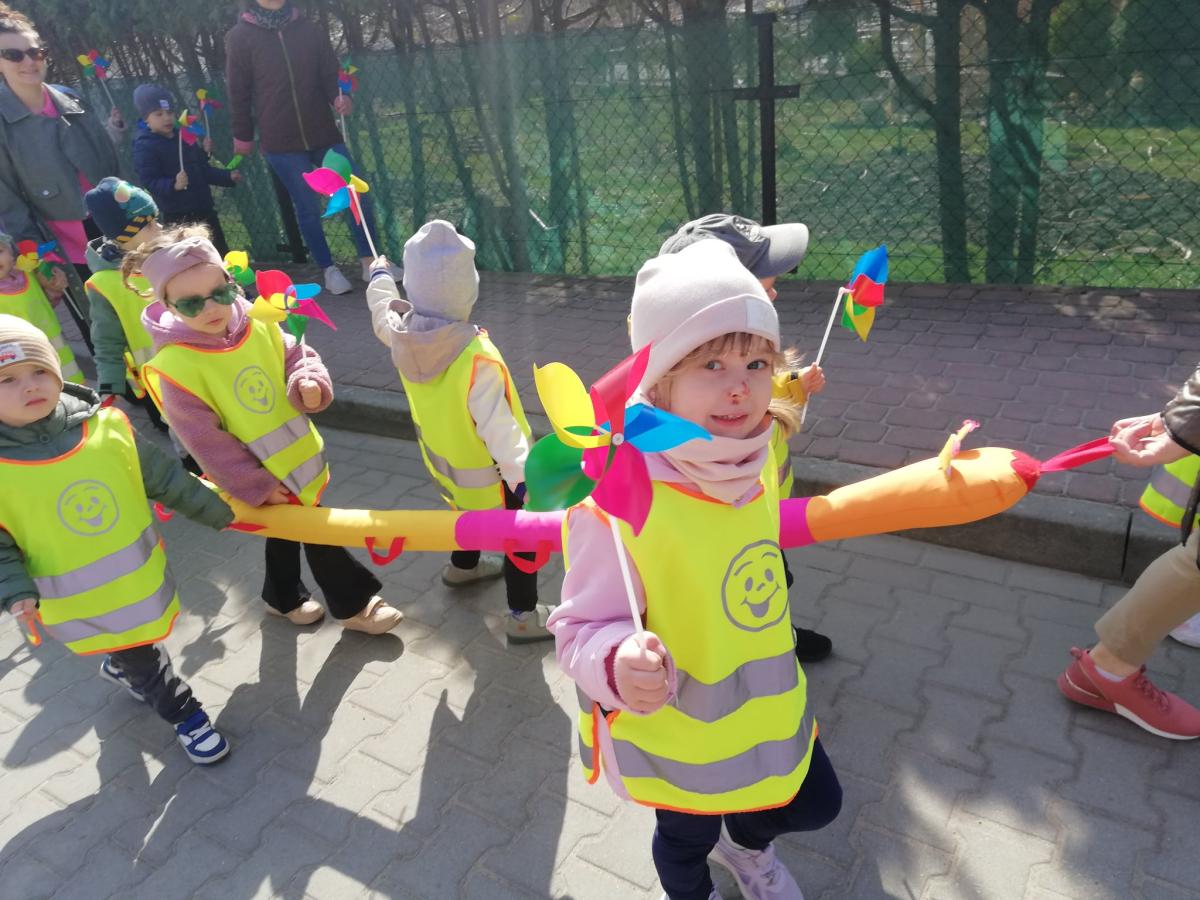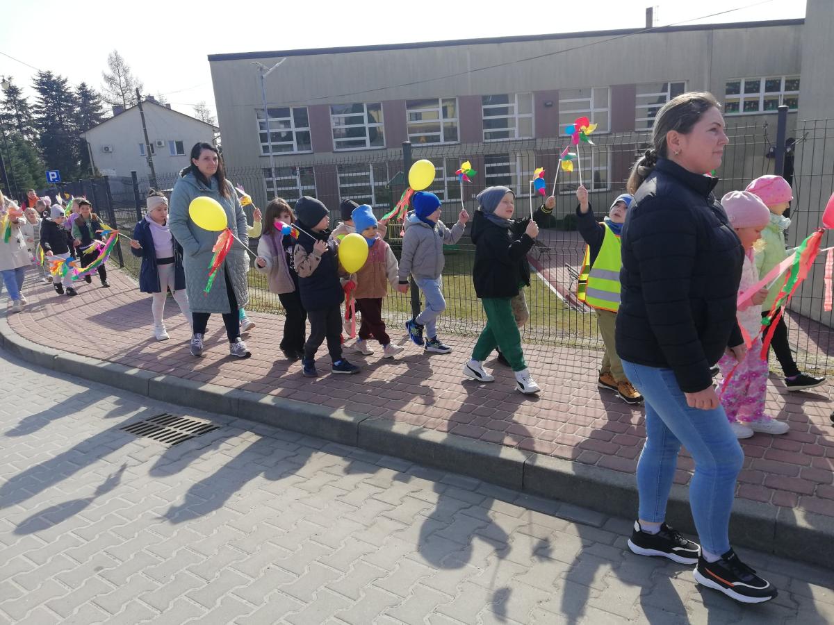 20 marca przedszkolaki wyruszyły na spacer ulicami miasta, tworząc barwny, wiosenny korowód. W rękach dzieci powiewały kolorowe wiatraczki, unosiły się baloniki, a wiosenną atmosferę dopełniały urocze, własnoręcznie przygotowane ptaszki. Był to dzień pełen słońca, śmiechu i wspólnego świętowania – piękne powitanie nowej pory roku, które na długo pozostanie w naszej pamięci.