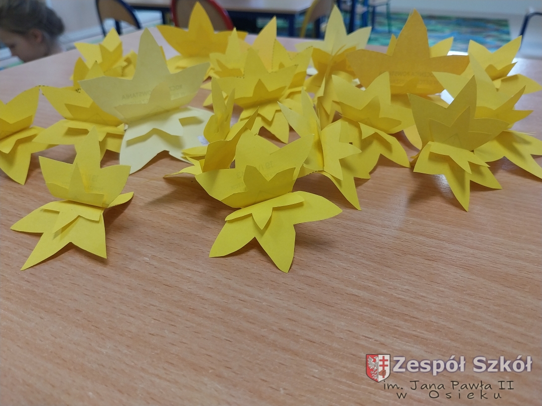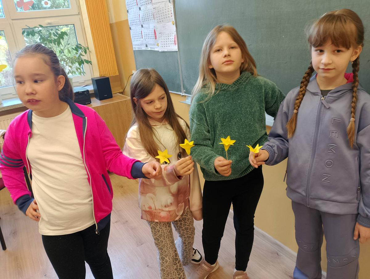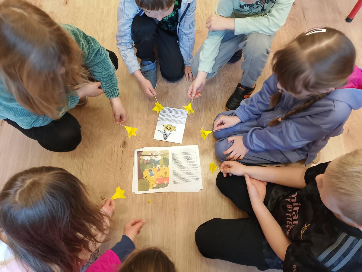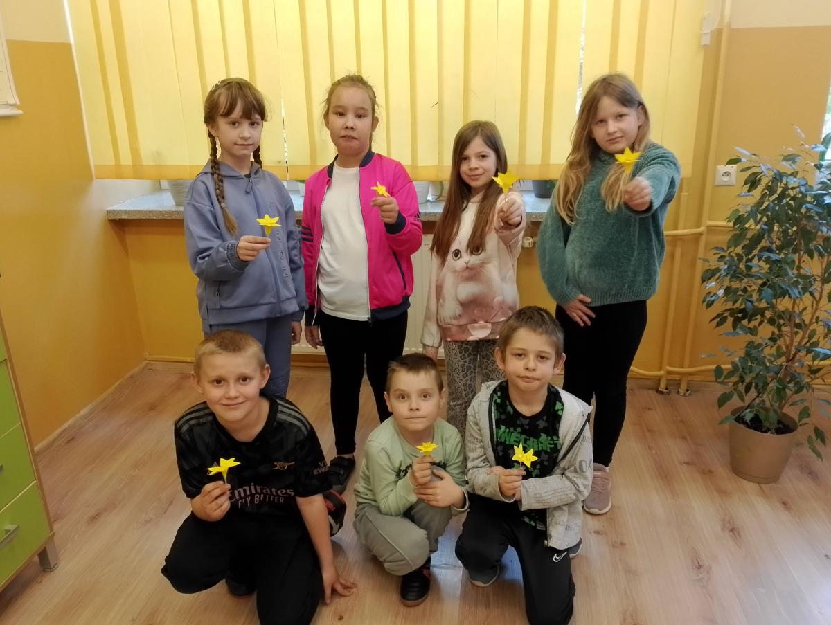 - Tego dnia klasy I-III i młodsze grupy świetlicowe wraz z wychowawcami i opiekunami przygotowały papierowe żonkile – symbol akcji oraz byli uczestnikami spotkania z lekturą podczas, którego wychowawcy przeczytali opowiadanie pt; „Historia pewnej ulicy”.