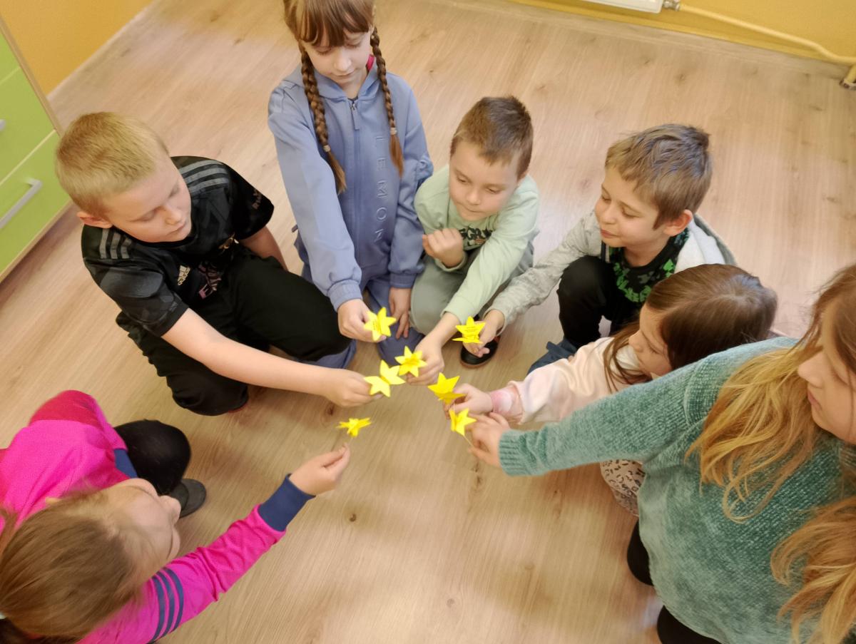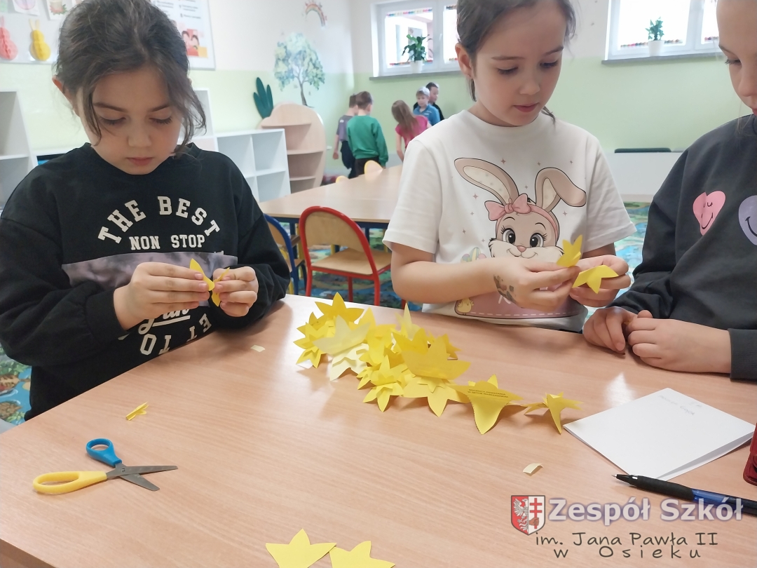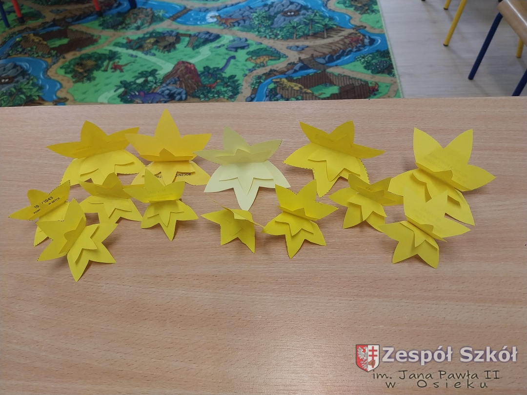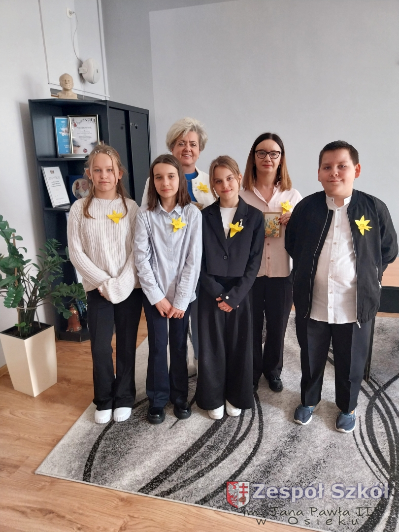- Tego dnia klasy I-III i młodsze grupy świetlicowe wraz z wychowawcami i opiekunami przygotowały papierowe żonkile – symbol akcji oraz byli uczestnikami spotkania z lekturą podczas, którego wychowawcy przeczytali opowiadanie pt; „Historia pewnej ulicy”.