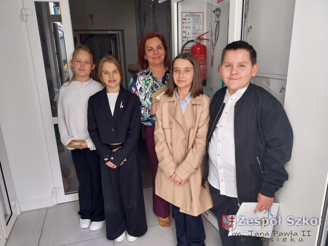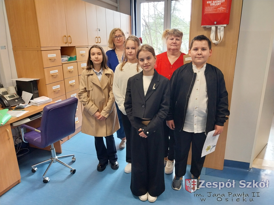 - Postanowiliśmy również rozpropagować akcję wśród społeczności lokalnej. Uczniowie z klasy IV wraz z opiekunem udali się do instytucji wspierających i współpracujących ze szkołę z informacjami na temat akcji przygotowanymi przez uczniów uczęszczających na zajęcia teatralno – dziennikarskie. Odwiedzili min; Urząd Miasta i Gminy w Osieku, Nadwiślański Bank Spółdzielczy w Osieku, Żłobek Samorządowy- Bajkowa Kraina, Gminny Ośrodek Kultury, Miejsko- Gminny Publiczny Zakład Opieki Zdrowotnej, Ośrodek Pomocy Społecznej. Akcja spotkała się z pozytywnym odzewem.