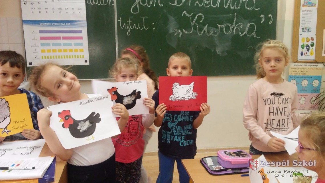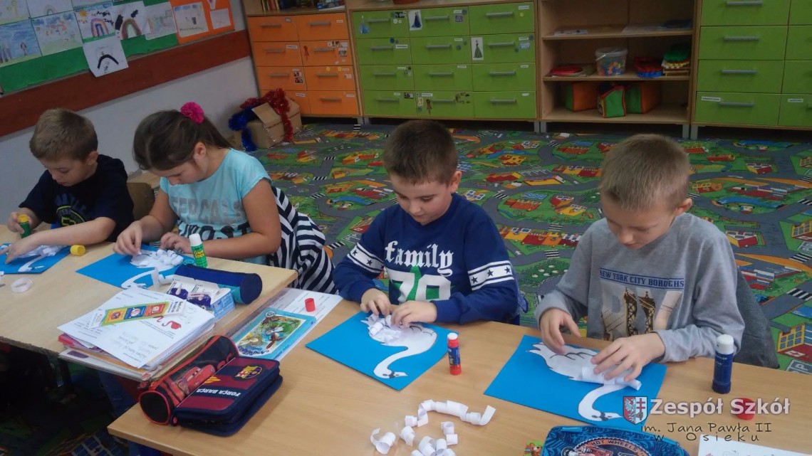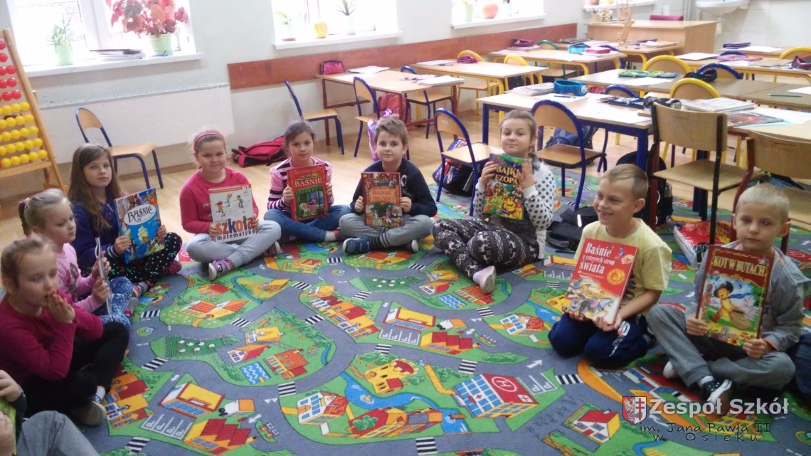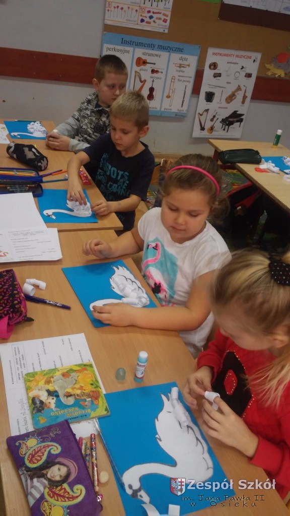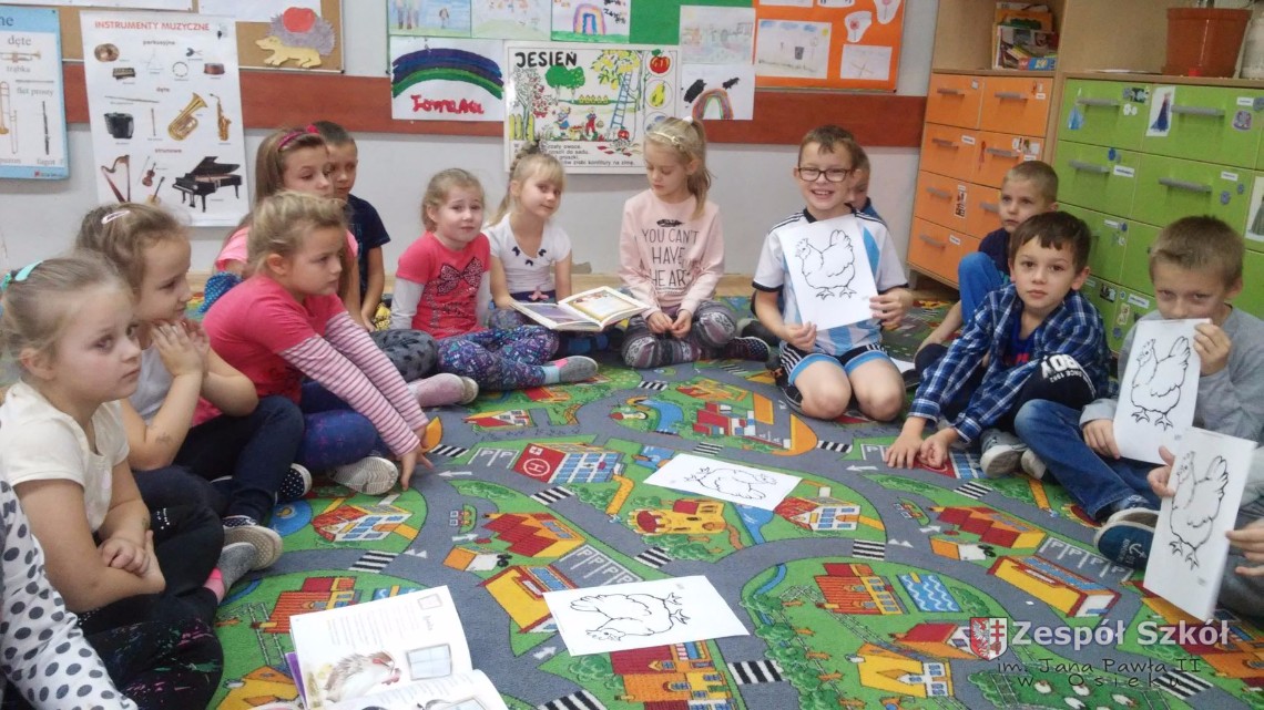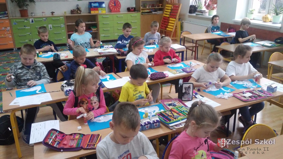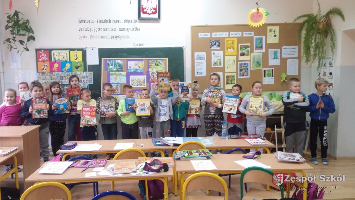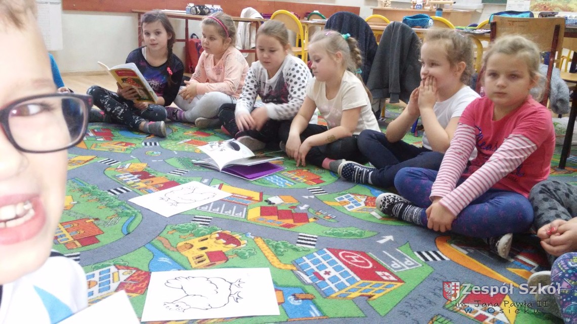 W ramach projektu „Upowszechnianie czytelnictwa i rozwijanie kompetencji czytelniczych wśród dzieci i młodzieży” klasa II A w miesiącu listopadzie czytała i omawiała kolejne wiersze Jana Brzechwy oraz lekturę H. Ch. Andersena pt. ,,Brzydkie kaczątko’’. Uczniowie chętnie wykonali pracę z papieru do wiersza pt. "Kwoka", a także wyklejali pięknego łabędzia do lektury "Brzydkie kaczątko". Projekt realizowany jest we współpracy z biblioteką szkolną.