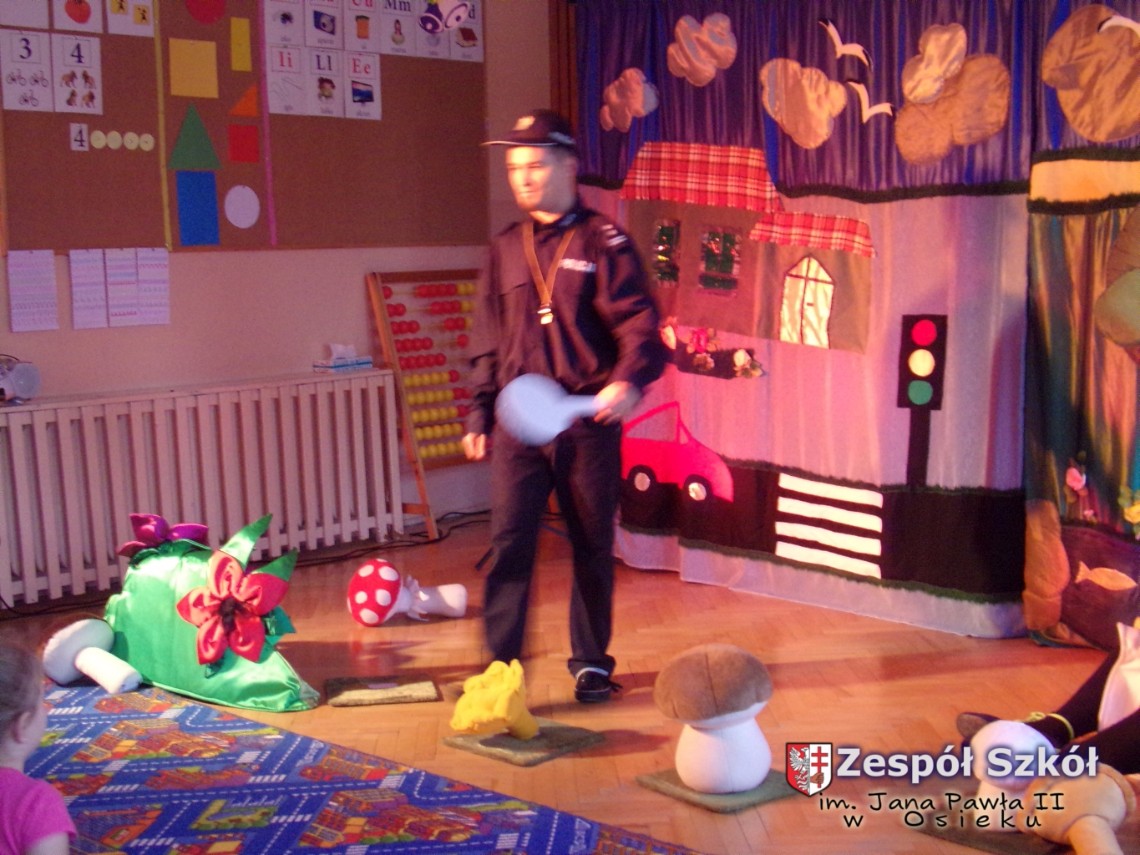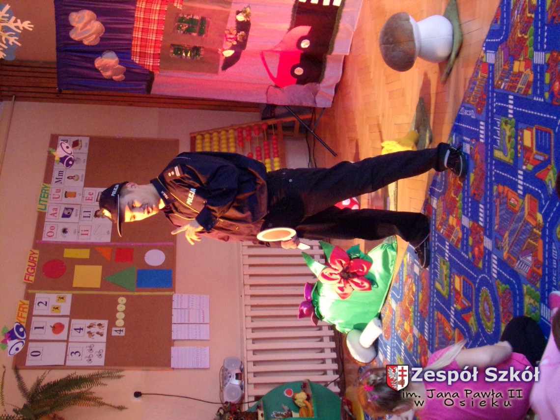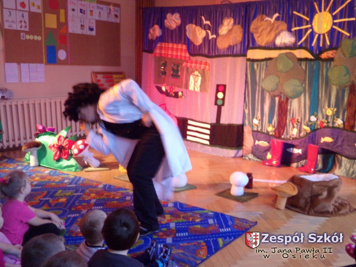 Wesoły i jednocześnie bardzo mocno nacechowany profilaktyką spektakl dostarczył dzieciom wiele barwnych wrażeń artystycznych i przykładów zachowań w różnych sytuacjach.