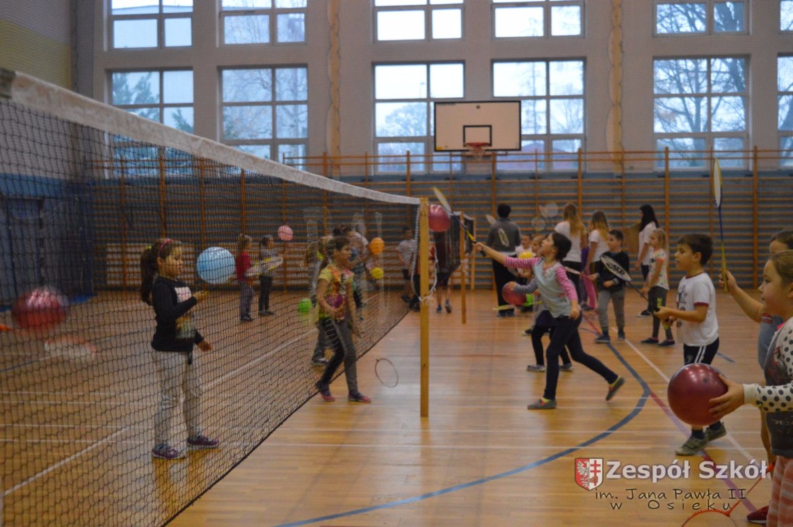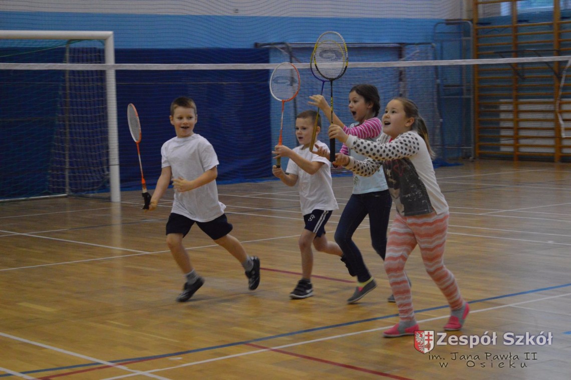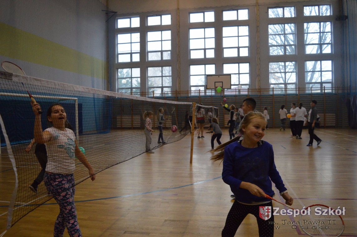 Najwięcej zabawy, radości i ducha sportowej rywalizacji pokazali nasi najmłodsi uczniowie z klas I – III PSP. Poprzez różnego rodzaju gry i zabawy oswajali się z tą coraz bardziej popularną w naszym regionie dyscypliną sportu. Do wspólnej zabawy włączyli się także nauczyciele, pracownicy niepedagogiczni jak i również rodzice uczniów. Pobiliśmy rekord naszej szkoły – od godz. 8.00. do godz. 15.10 cały czas „lotka była w grze”, na wszystkich sześciu kortach rozgrywały się mecze te bardziej i te nieco mniej profesjonalne.