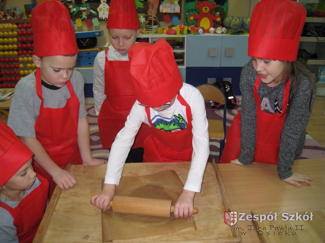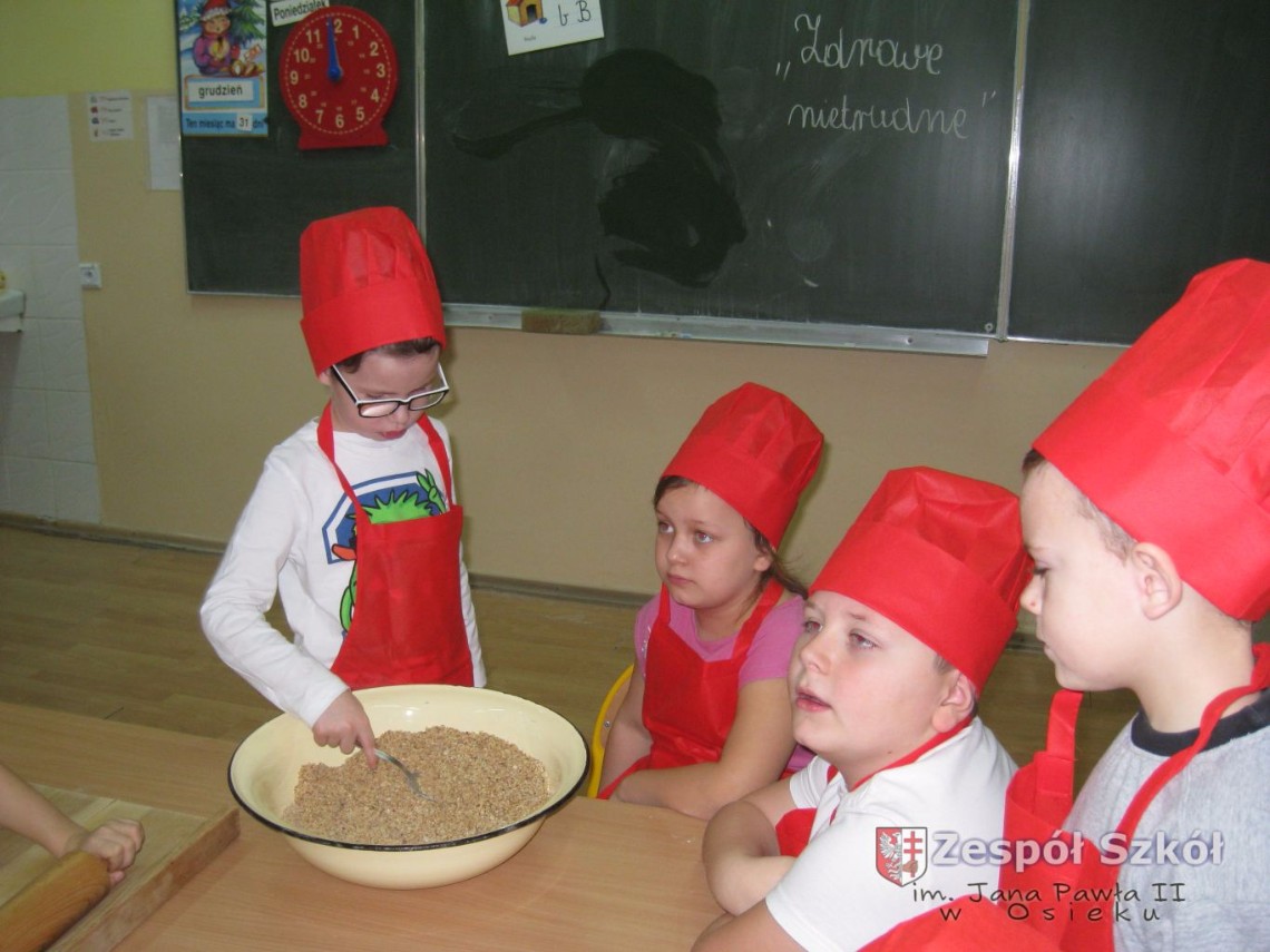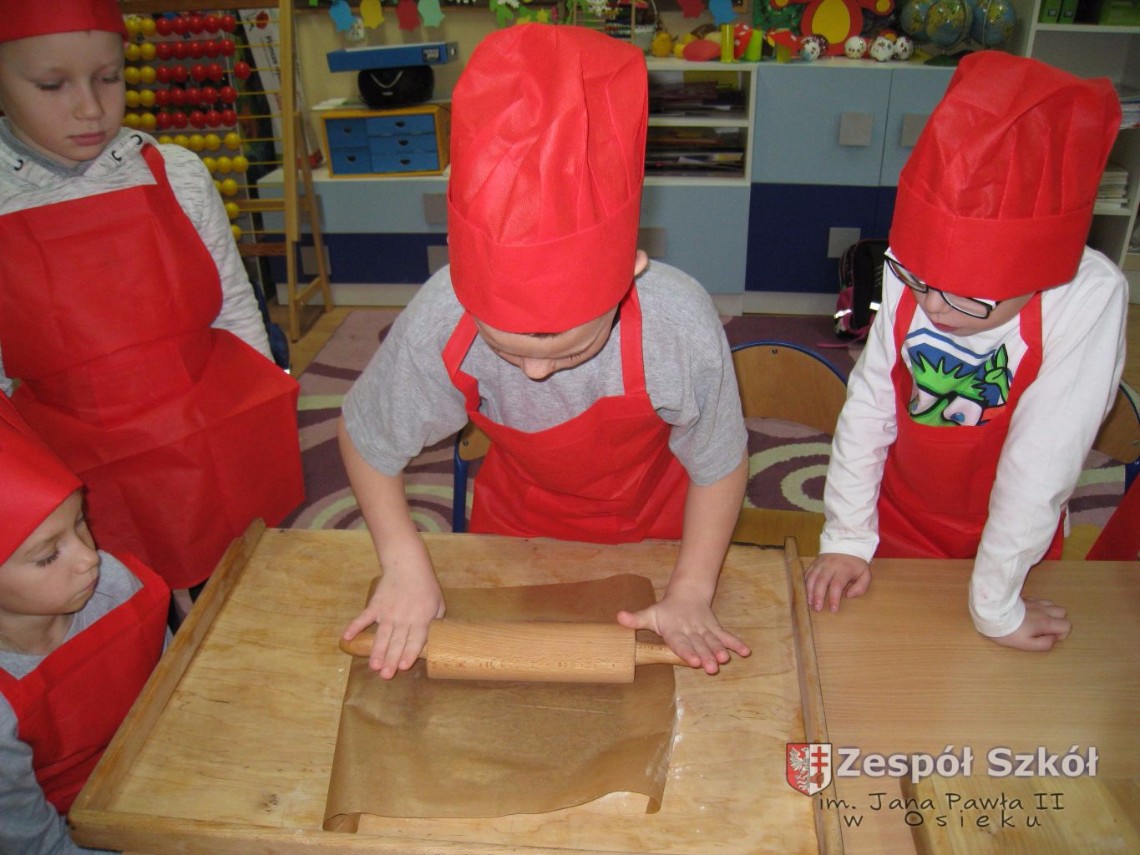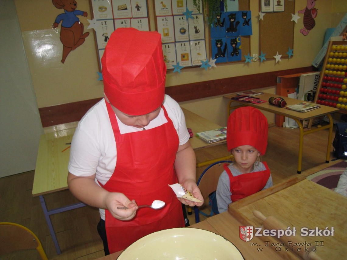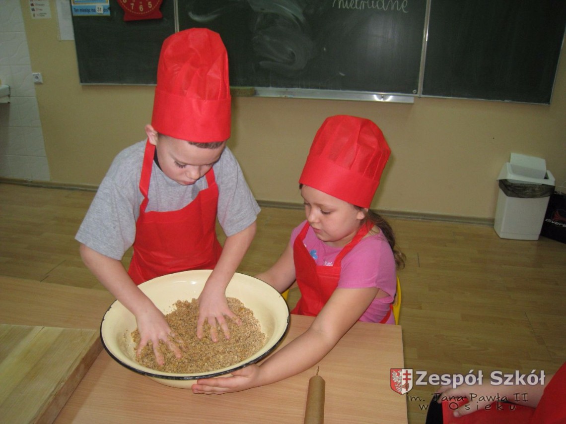 Po części teoretycznej wychowankowie przystąpili do zajęć praktycznych. Jako zadanie do wykonania wybrali sobie zrobienie ciasteczek owsianych. Z dużym zaangażowaniem wszyscy uczniowie przystąpili do pracy. Ciasteczka były smaczne i zarazem bardzo zdrowe.