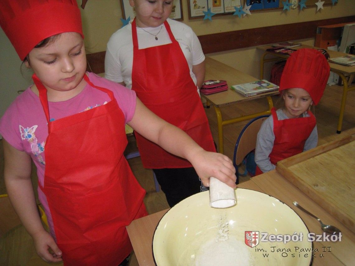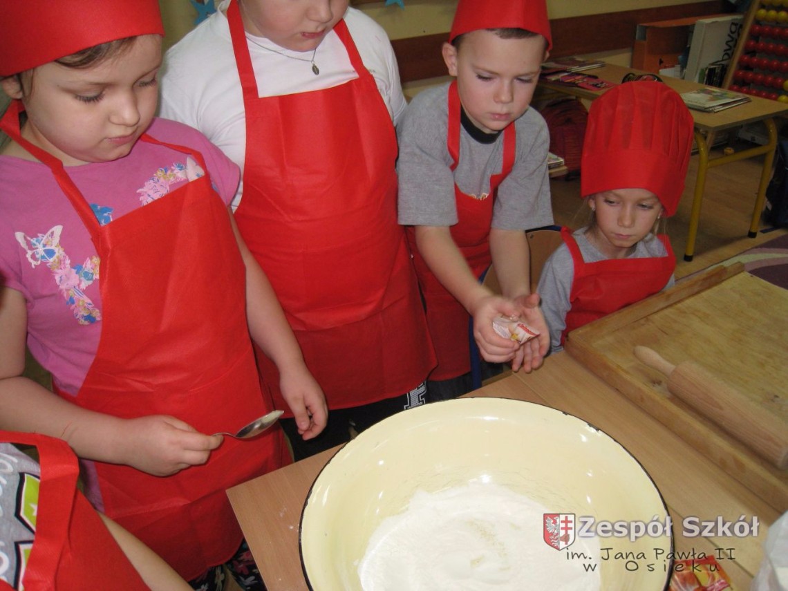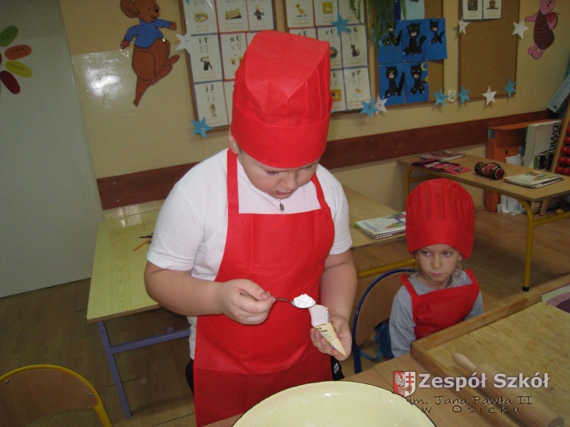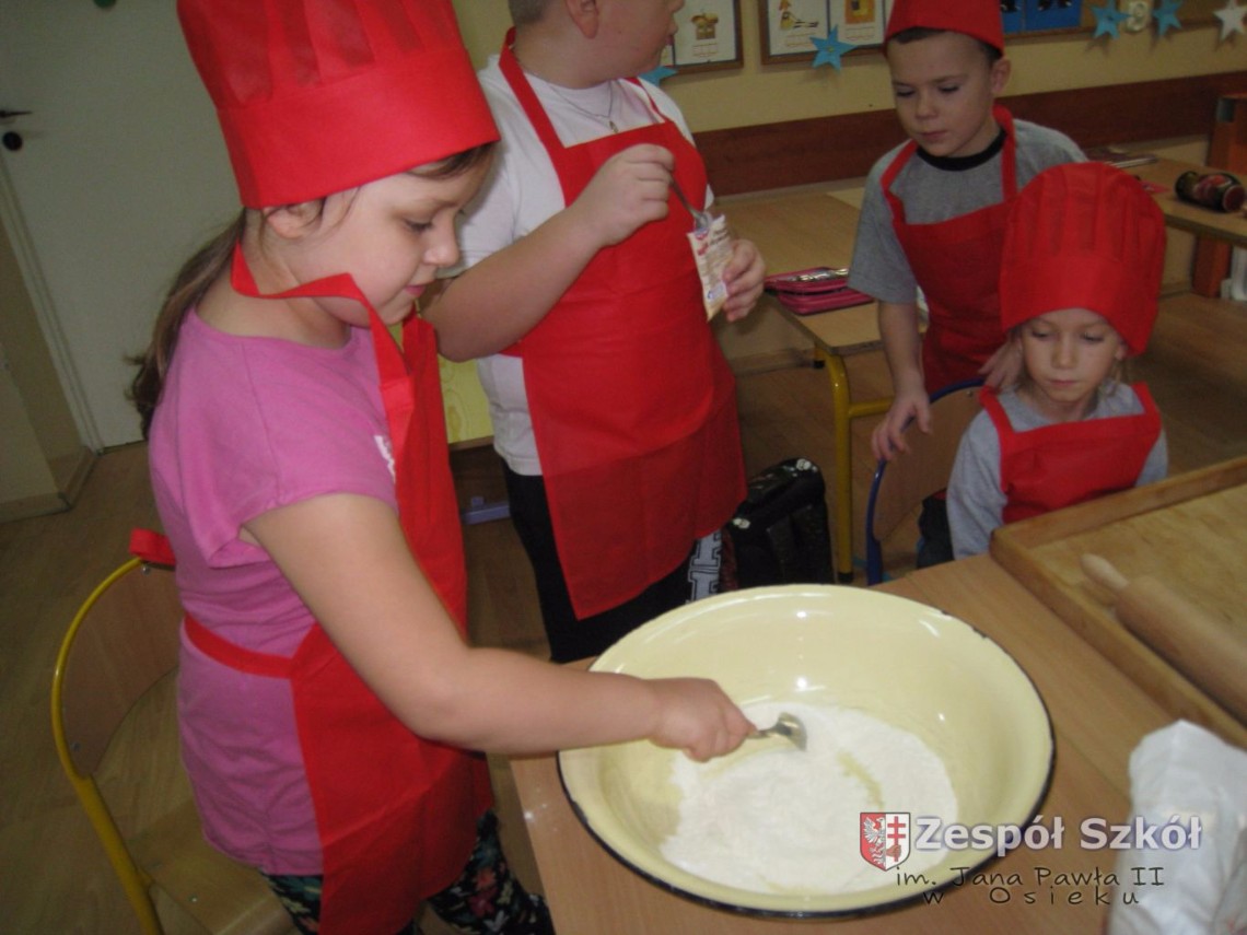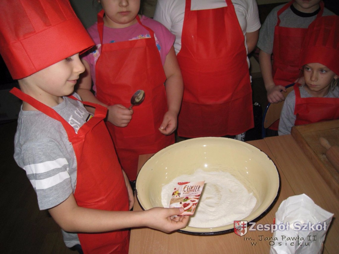 Po części teoretycznej wychowankowie przystąpili do zajęć praktycznych. Jako zadanie do wykonania wybrali sobie zrobienie ciasteczek owsianych. Z dużym zaangażowaniem wszyscy uczniowie przystąpili do pracy. Ciasteczka były smaczne i zarazem bardzo zdrowe.