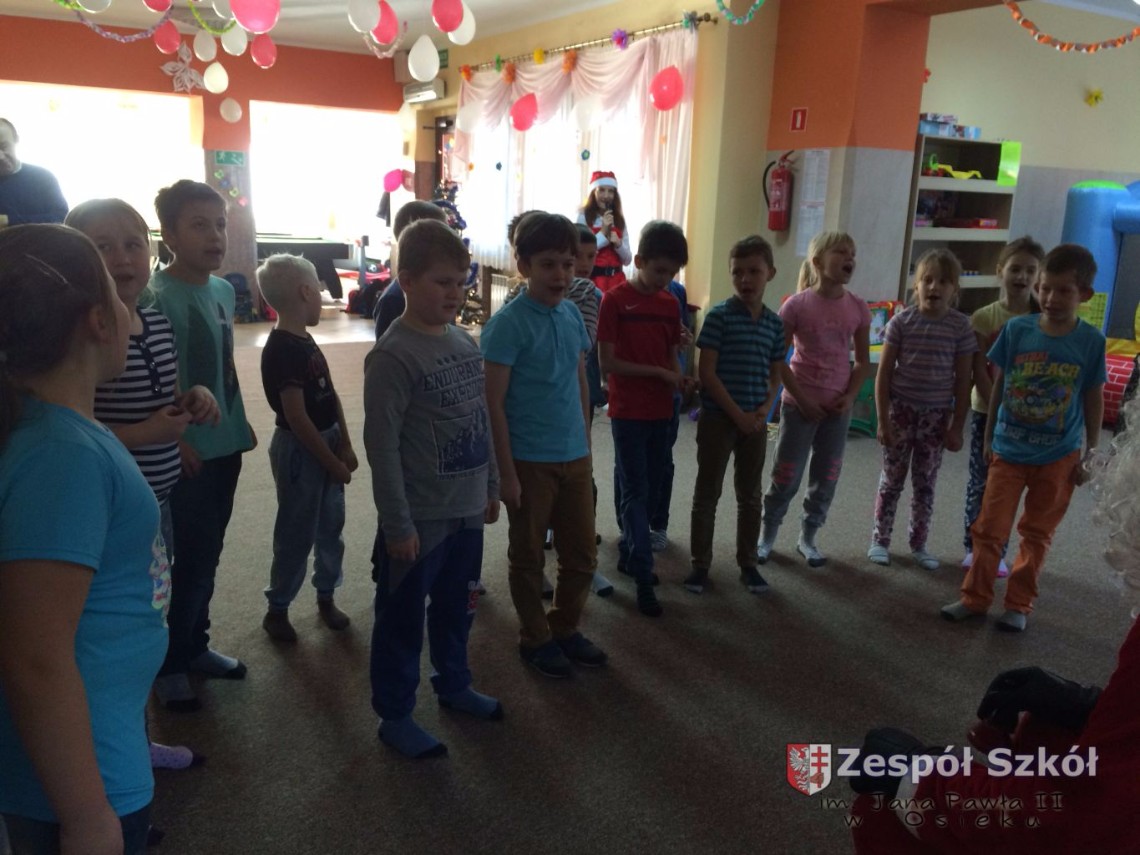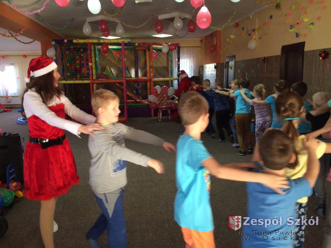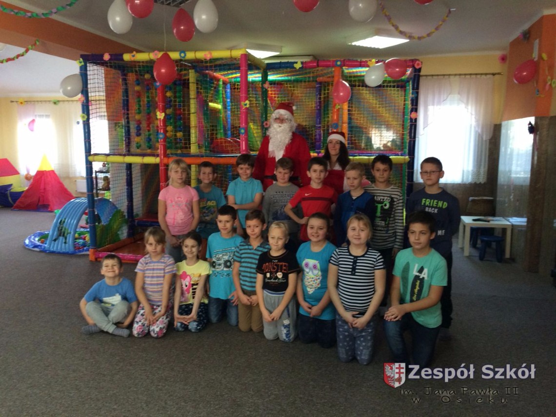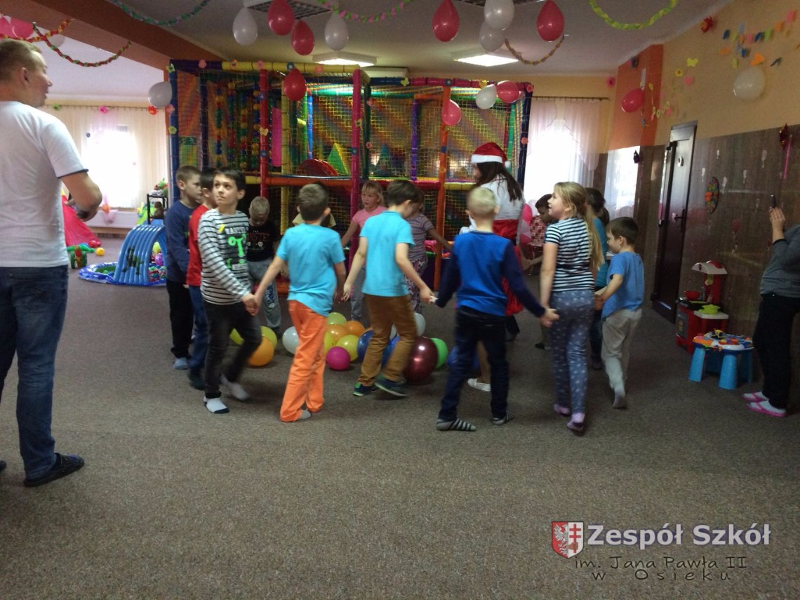 Wspaniale bawili się w „Małpim gaju”. Uczestniczyli w wielu wesołych konkursach i śnieżnej dyskotece. Pod koniec imprezy święty Mikołaj obdarował ich prezentami na, które z utęsknieniem czekały.