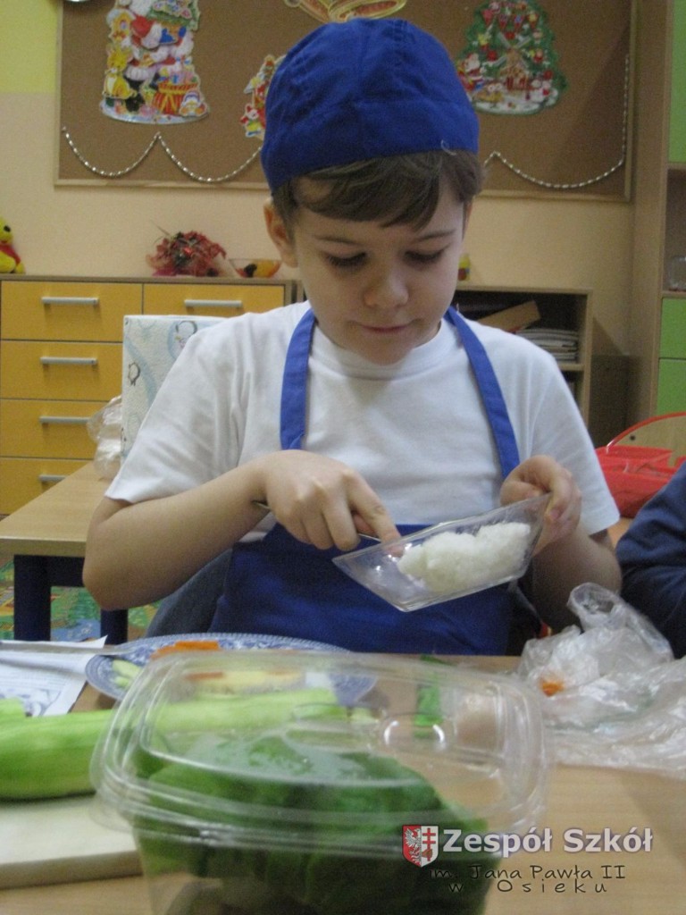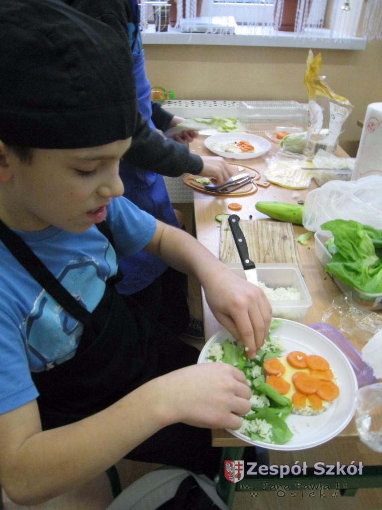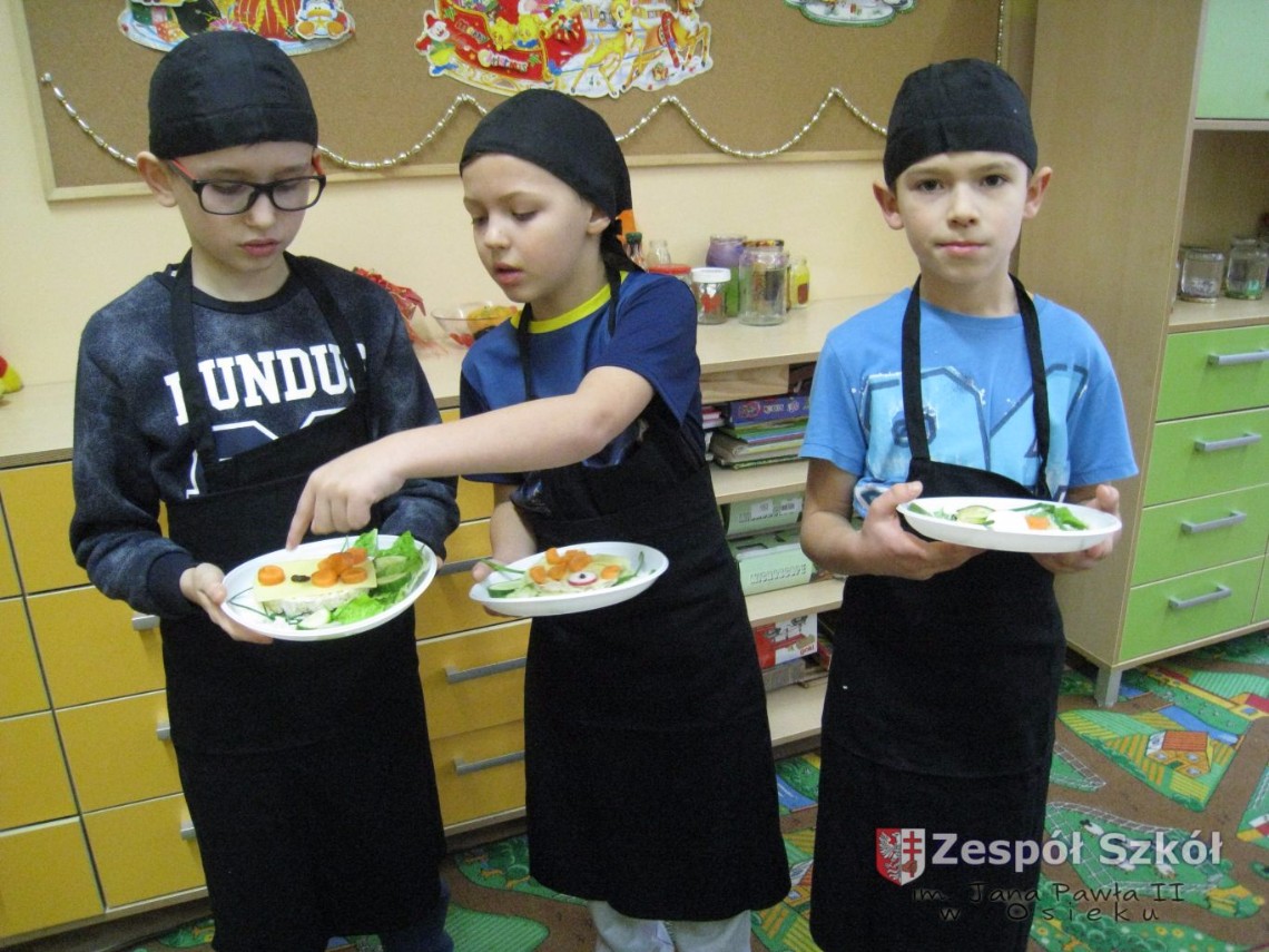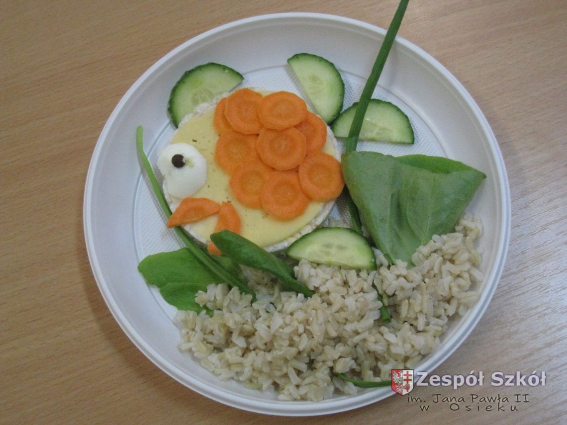 Po części teoretycznej uczniowie przystąpili do przygotowania posiłku w formie kanapki rybki. Uczniowie przekonali się, że warto w szkole mieć dobra kanapkę pod ręką., które samodzielnie wykonali i które wspaniale wyglądają i smakują!