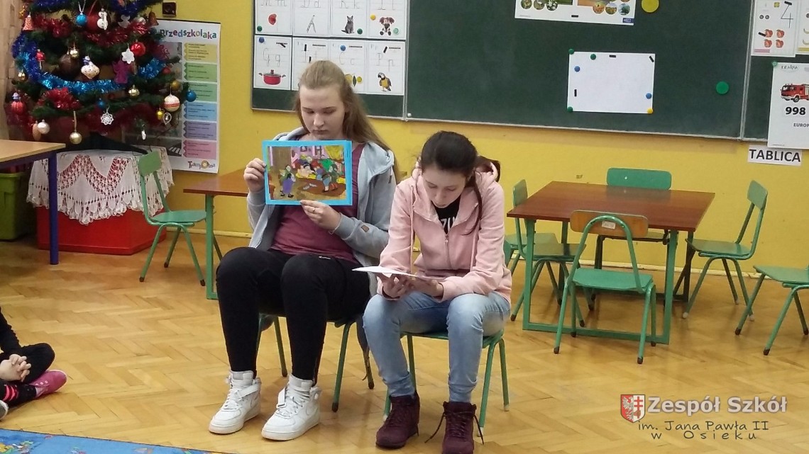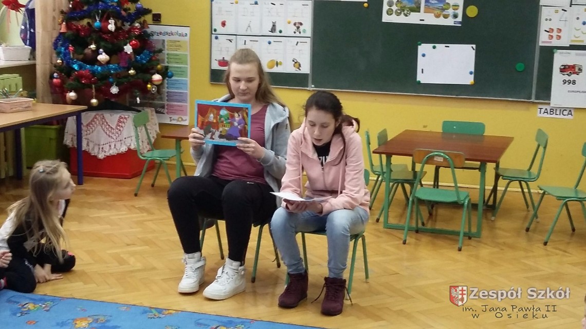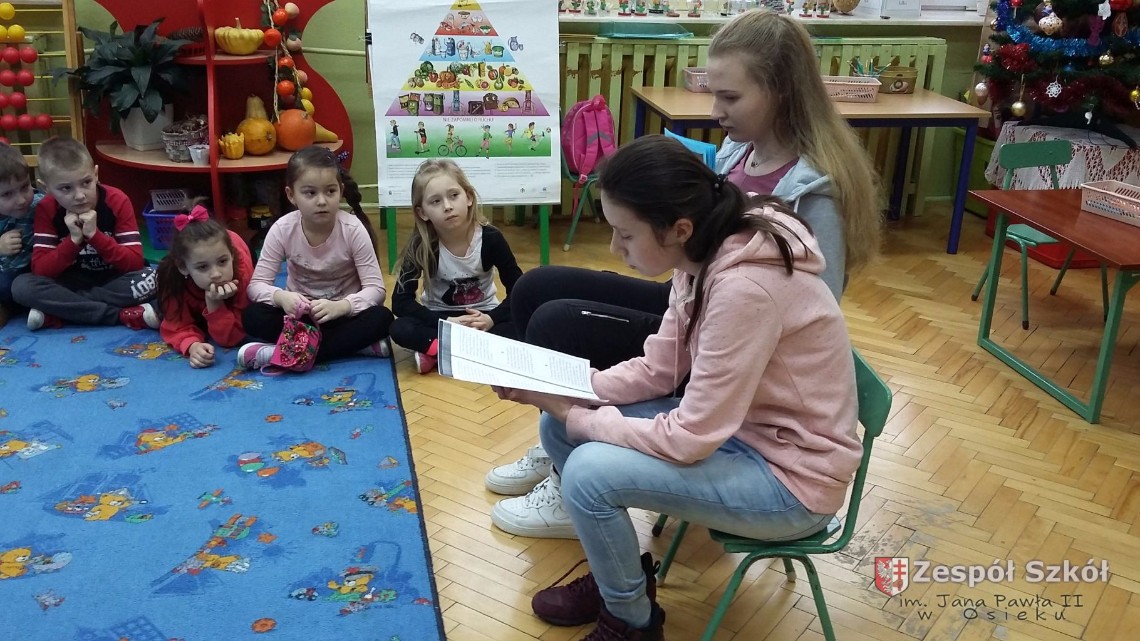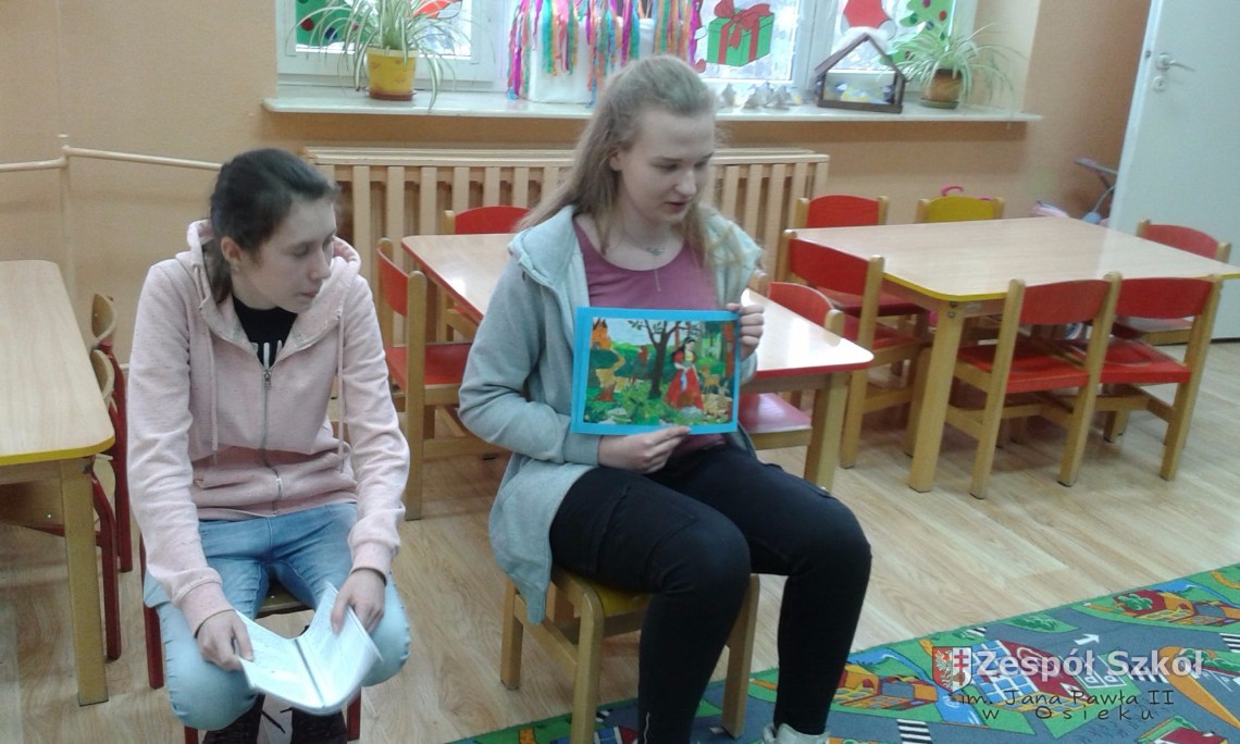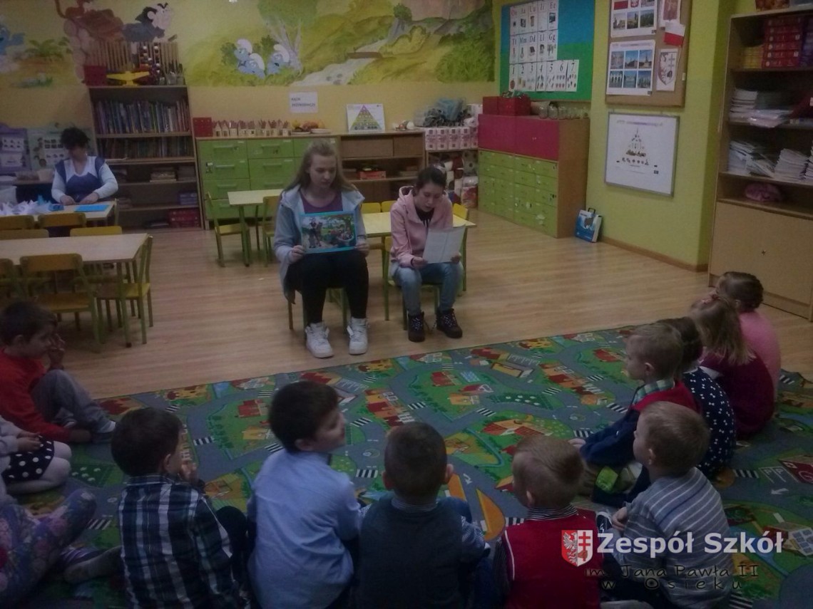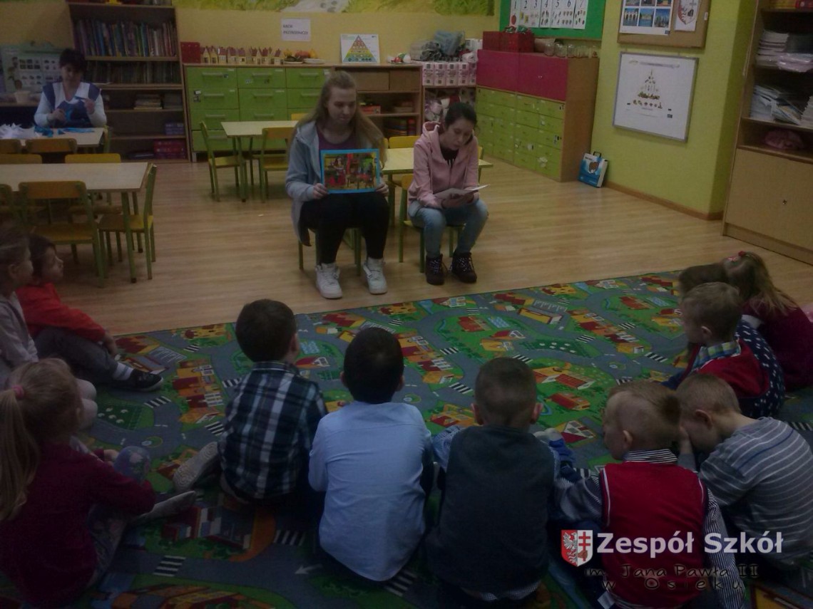 Już po raz drugi nasze przedszkolaki miały okazje wysłuchać bajki w j. angielskim. Uczennice Publicznego Gimnazjum Martyna Kos i Dominika Wyka przygotowane przez p. Anetę Książkę, przeczytały bajkę pt. ,,Królewna Śnieżka”- (Snow White).