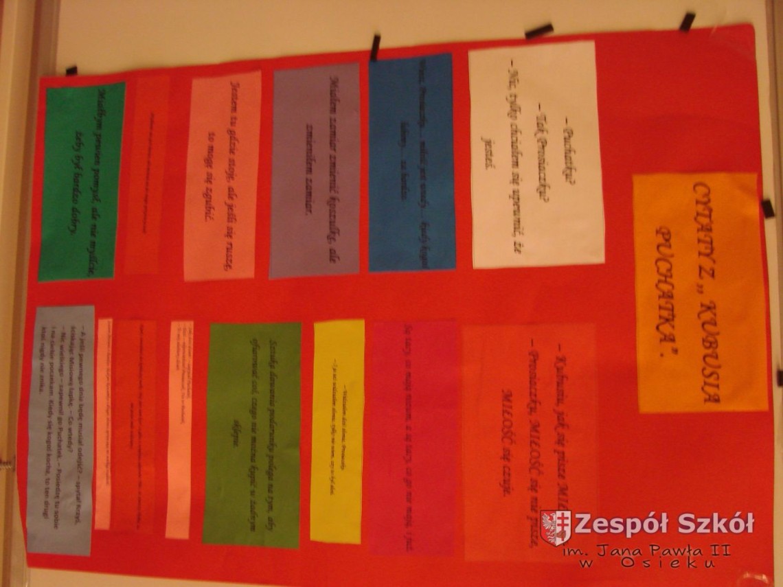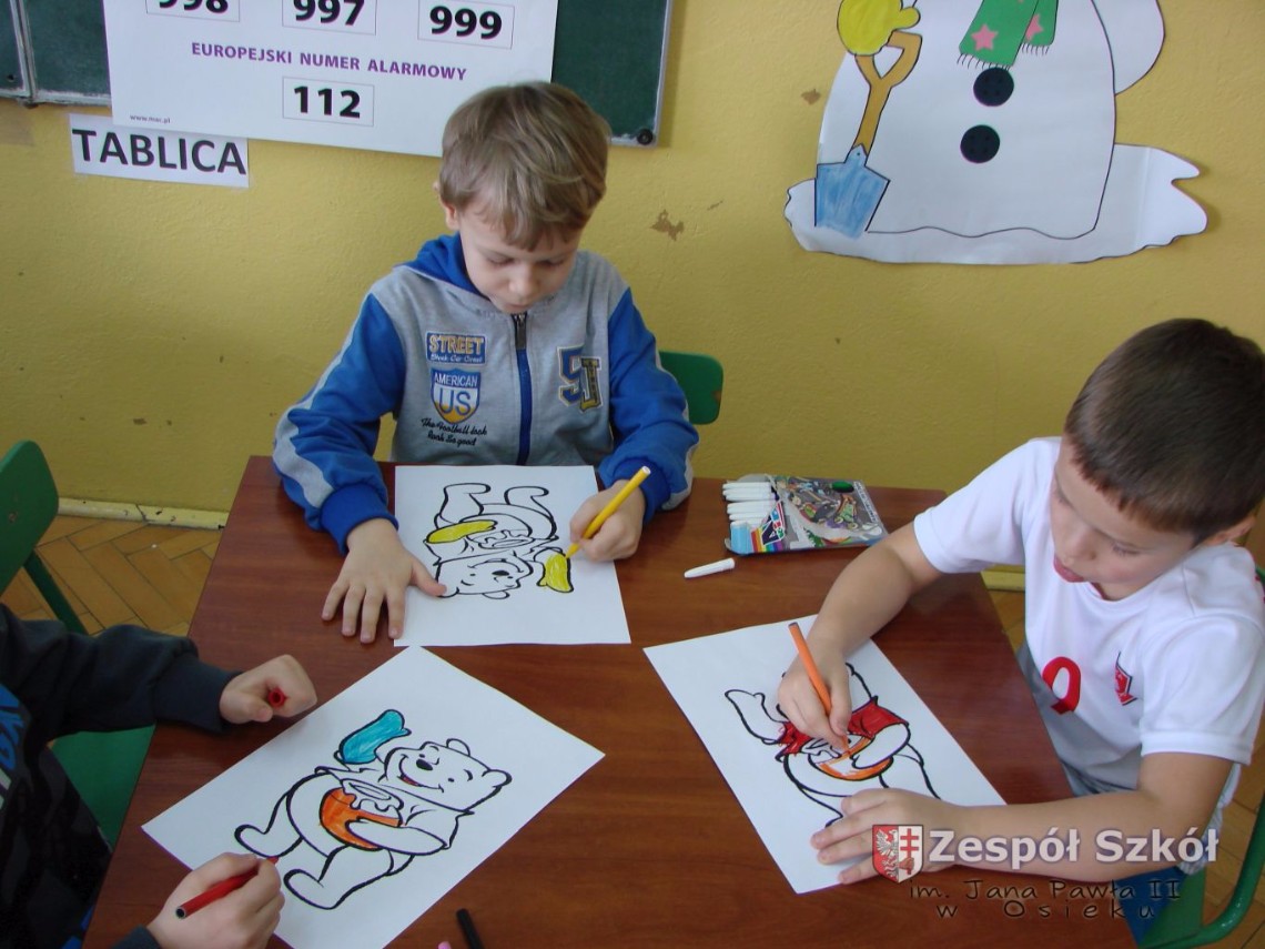 Podsumowaniem zdobytych wiadomości były zagadki słowne oraz konkurs plastyczny nt: ,, Kubuś Puchatek- prawdziwy przyjaciel". Dzieci podczas zajęć były aktywne, a wykonując prace plastyczne wykazały się wielką pomysłowością i kreatywnością. Na zakończenie obchodów Międzynarodowego Dnia Kubusia Puchatka pani dyrektor Lucyna Wiraszka wręczyła dzieciom dyplomy.