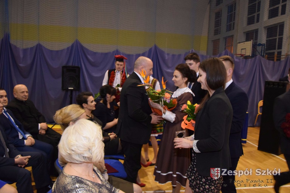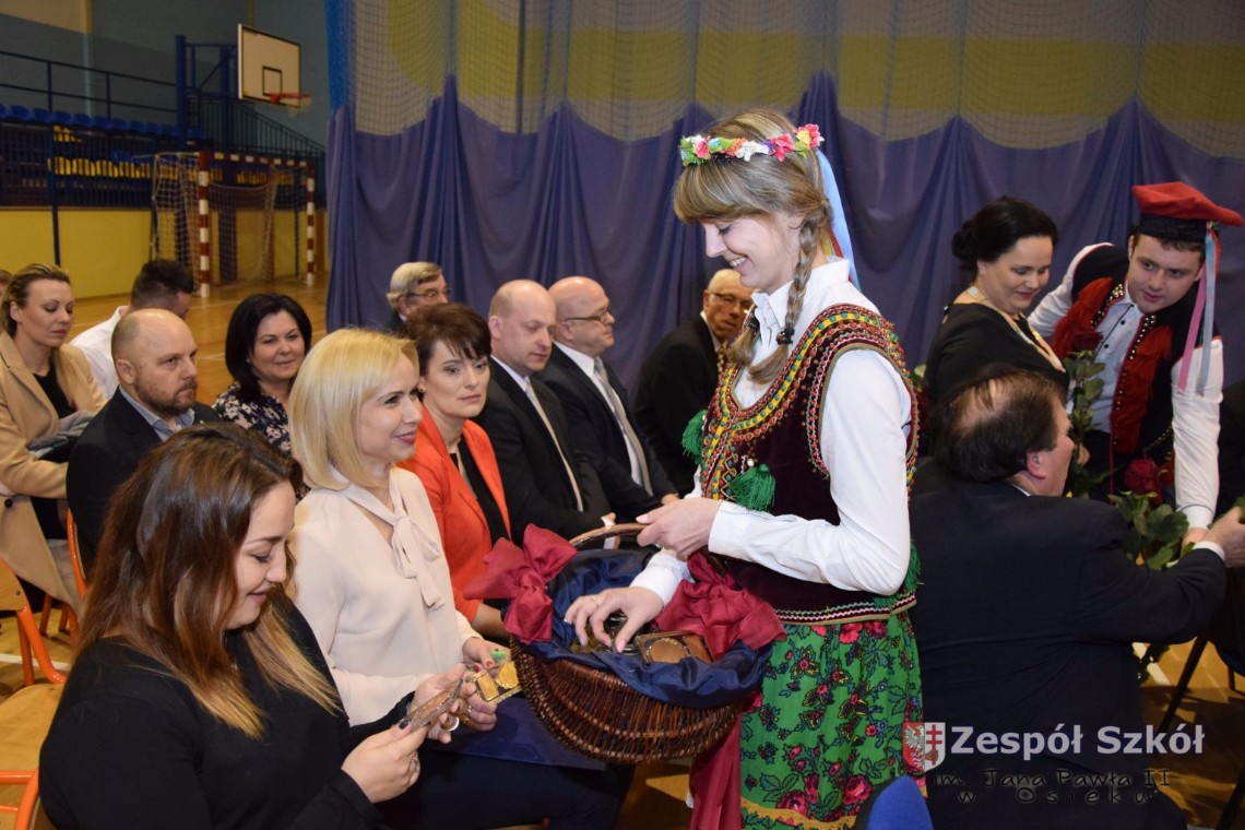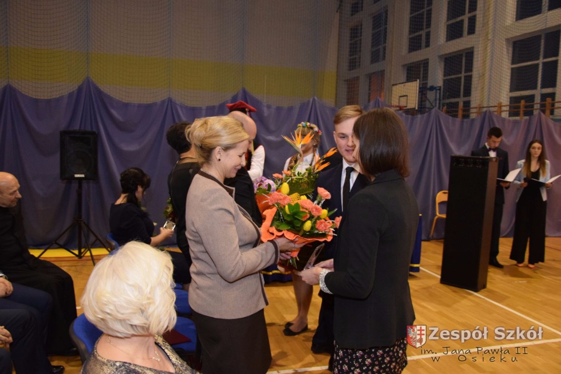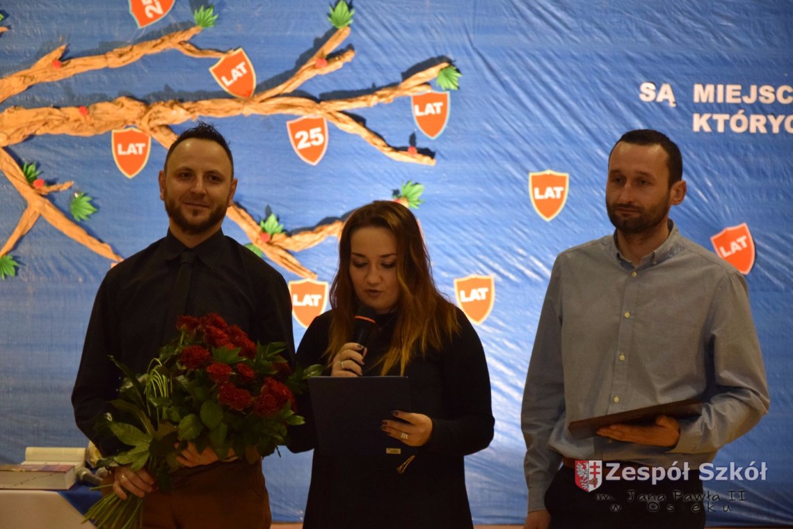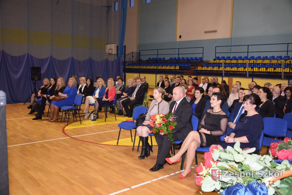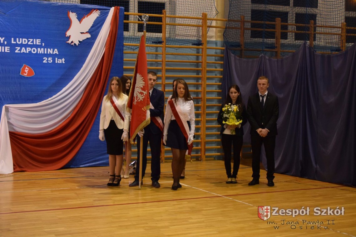 Obchody rozpoczęła msza święta w kościele parafialnym, po której uczestnicy na czele z pocztem sztandarowym przeszli do szkoły, gdzie odbyła się część oficjalna. Jako pierwsza głos zabrała dyrektor szkoły Małgorzata Kunowska, która powitała zaproszonych gości, a wśród nich: władze samorządowe, oświatowe, byłych dyrektorów, przedstawicieli Rady Rodziców, emerytowanych i czynnych nauczycieli oraz pracowników administracji i obsługi, a przede wszystkim absolwentów. Minutą ciszy uczestnicy wydarzenia uczcili pamięć pierwszego dyrektora szkoły Józefa Chmielowca, zmarłych pracowników i absolwentów. W swoim przemówieniu dyrektor Małgorzata Kunowska przywołała ćwierćwieczną historię Liceum Ogólnokształcącego, odwołując się do jego niepodważalnej roli w kształtowaniu klimatu małej ojczyzny. - Osieckie liceum nigdy nie było jedynie miejscem, instytucją dla środowiska lokalnego, ale przede wszystkim perełką, o którą należy dbać i którą należy rozwijać - mówiła dyrektor szkoły, która z dumą podkreśliła osiągnięcia uczniów i absolwentów. Po słowie wstępnym głos zabrali zaproszeni goście, a wśród nich między innymi burmistrz miasta i gminy Osiek Rafał Łysiak, który powiedział, że z wiarą patrzy w przyszłość liceum. Na uroczystości nie zabrakło poprzednich burmistrzów Osieka, którzy przybyli na uroczystość z pochlebnymi słowem dla szkoły i upominkami. Były burmistrz Jacenty Słodkowski przypomniał historię utworzenia i nadania imienia szkole, a Włodzimierz Wawrzkiewicz podziękował za zaproszenie i przekazał książki dla uczniów. Uczestnicy uroczystości z wielką nostalgią i wzruszeniem wsłuchiwali się we wspomnienia byłego dyrektora szkoły Stefana Nowaka. Następnie wizytator Anna Słoczyńska, skierowała słowa uznania dla nauczycieli i uczniów oraz odczytała list Świętokrzyskiego Kuratora Oświaty Kazimierza Mądzika. Wśród zabierających głos nie zabrakło przedstawicieli Rady Rodziców Marty Kicińskiej i Anety Kicińskiej oraz przedstawicieli absolwentów: Patrycji Obary, Mariusza Tworka, Dominika Ociepki, którzy na ręce Dyrektor Szkoły Pani Małgorzaty Kunowskiej złożyli wiązankę kwiatów oraz przekazali Pamiątkową Tablicę Jubileuszu 25 – lecia Liceum Ogólnokształcącego w Osieku z mottem: „To, co otrzymałem w latach szkolnych, do dzisiaj owocuje w moim życiu.” Jan Paweł II.