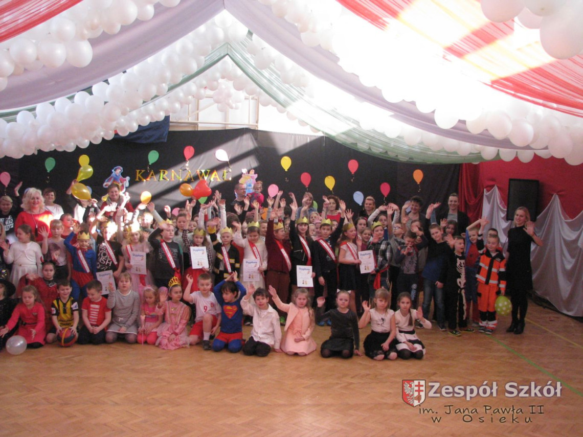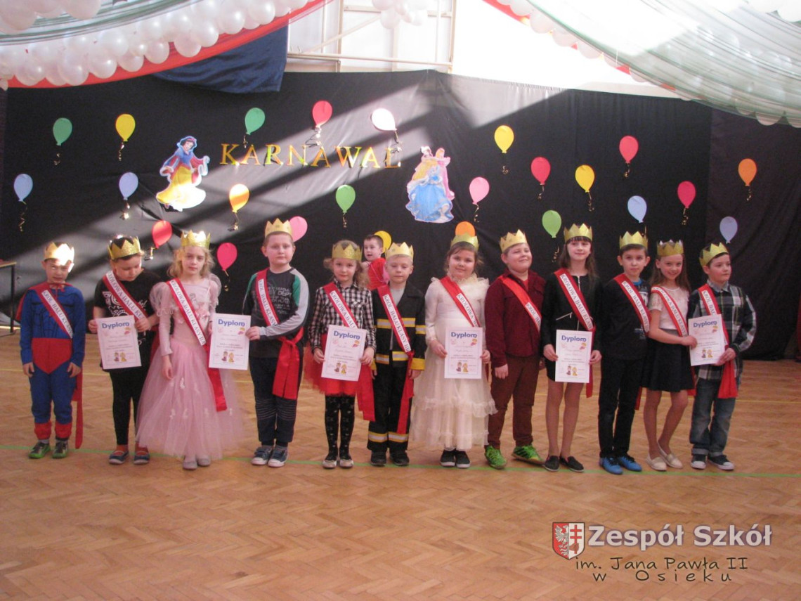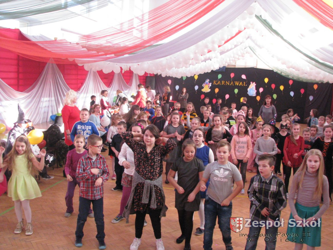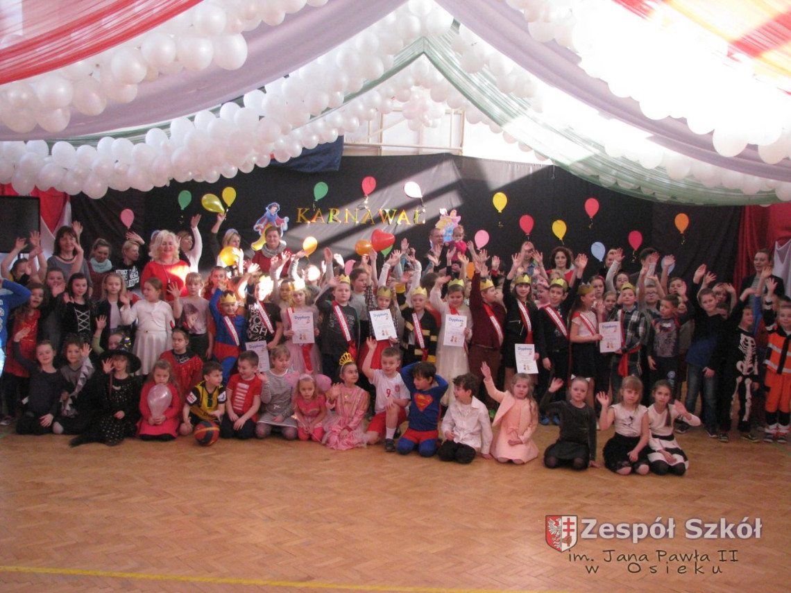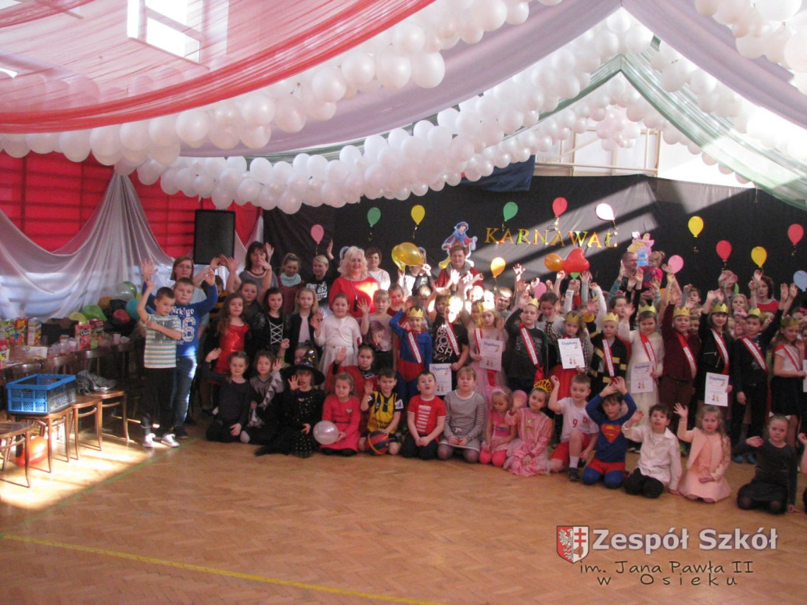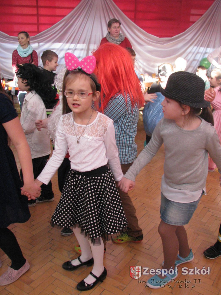 W dniu 16. 02. 2017 r. odbył się bal karnawałowy klas I, II i III. Sala M- GOK w Osieku zamieniła się w tym dniu, w prawdziwą salę balową. Dzieci wystąpiły w pięknych, kolorowych strojach, przebrane za bohaterów znanych bajek, byli również strażacy i wróżki. Nie sposób zliczyć i wymienić tych wszystkich postaci.