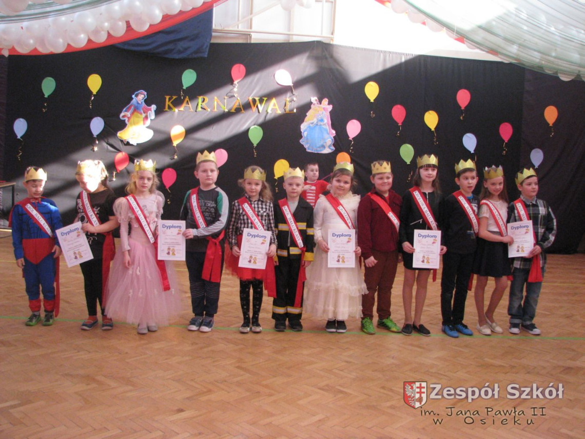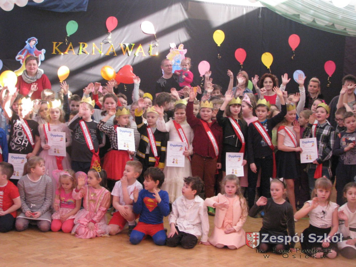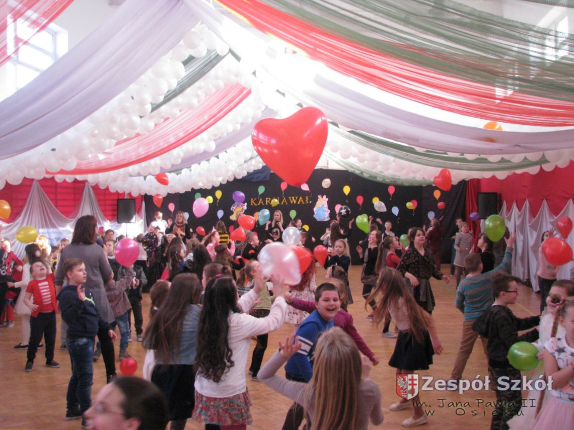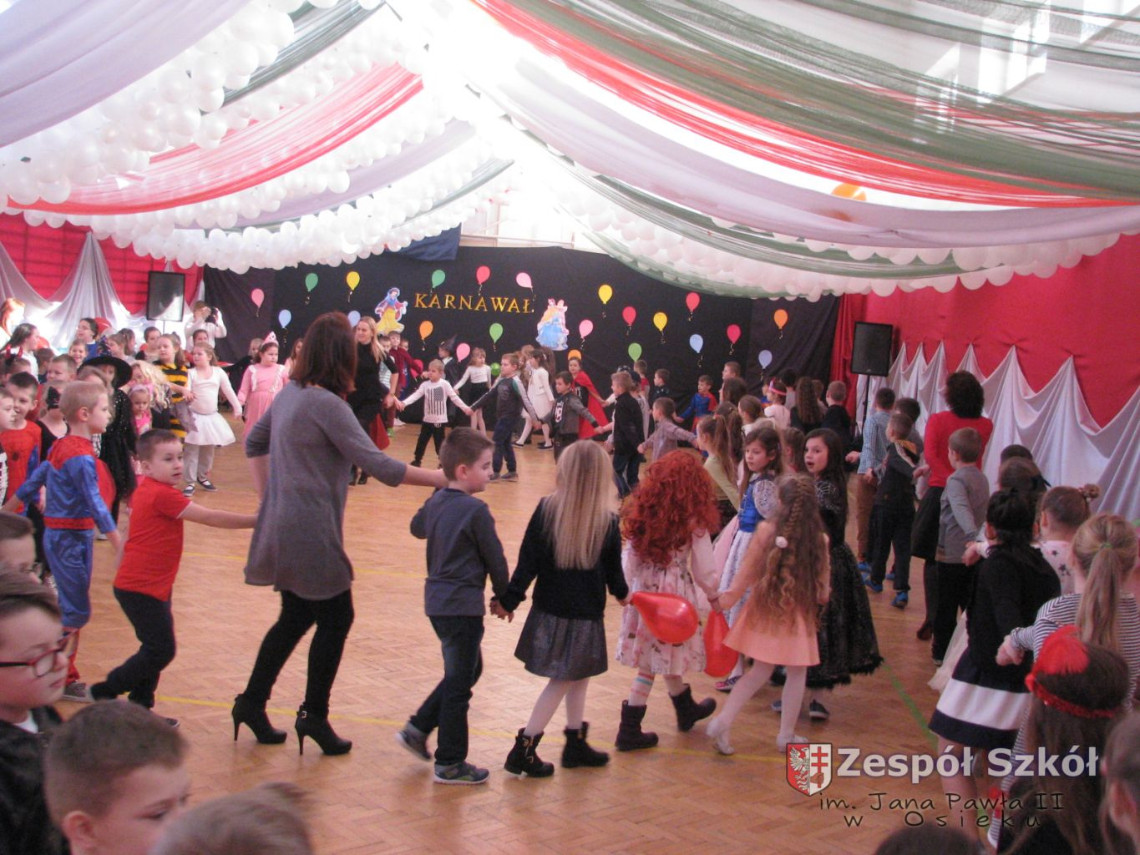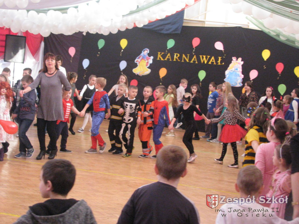 W dniu 16. 02. 2017 r. odbył się bal karnawałowy klas I, II i III. Sala M- GOK w Osieku zamieniła się w tym dniu, w prawdziwą salę balową. Dzieci wystąpiły w pięknych, kolorowych strojach, przebrane za bohaterów znanych bajek, byli również strażacy i wróżki. Nie sposób zliczyć i wymienić tych wszystkich postaci.