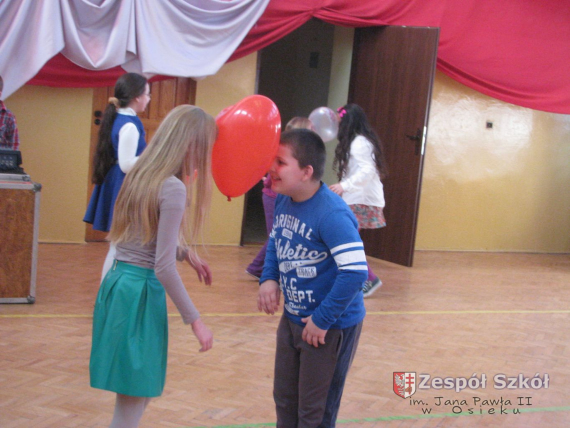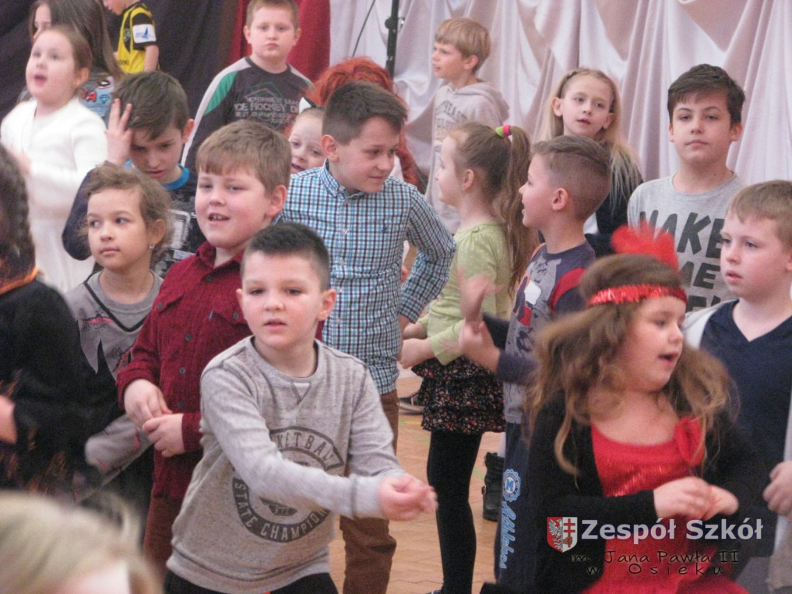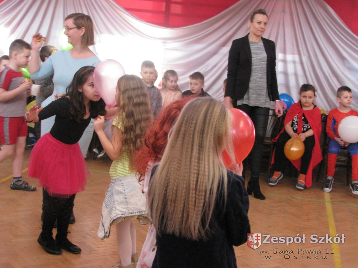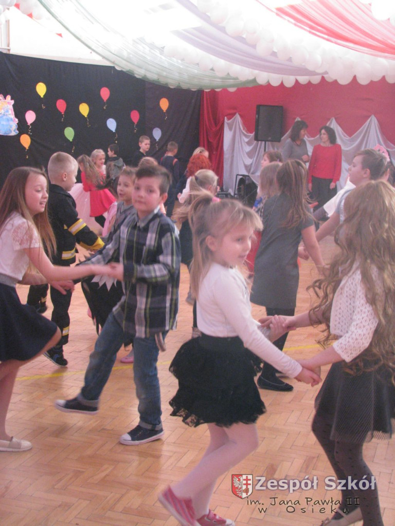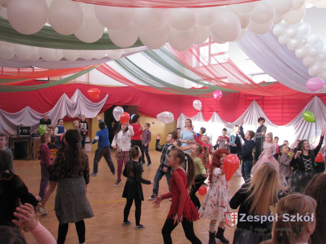 Wszyscy uczniowie bawili się znakomicie przy rytmach różnorodnej muzyki, jak przystało na prawdziwy bal. Były pociągi, kółeczka i tańce w parach. Wszyscy mogli uczestniczyć w zabawach i konkursach np.: w tańcu w parach z balonem czy wędrujących workach. Zwycięzcy konkursów nagradzani byli upominkami.