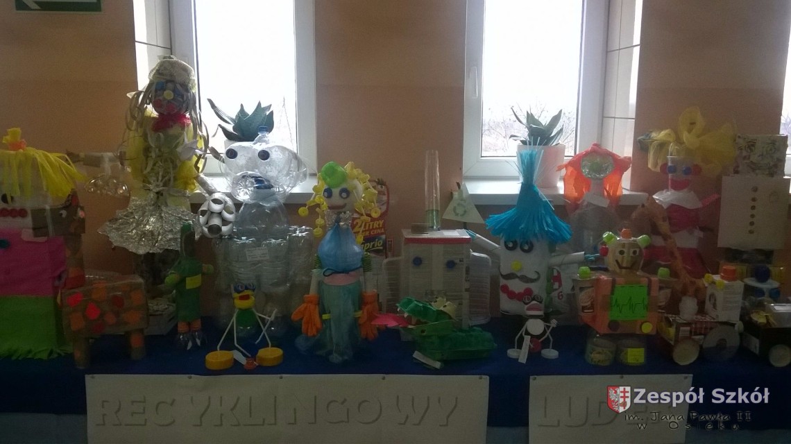 Na konkurs wpłynęły 23 prace. „Recyklingowe ludki” to prace przestrzenne wykonane z surowców wtórnych, czyli z odpadów, które mogą być wykorzystane powtórnie typu: papier, butelki typu PET, tworzywa sztuczne, folie itp. Technika tworzenia była zupełnie dowolna, można było ciąć, kleić, budować, łączyć ze sobą dostępne materiały w dowolny sposób. Ograniczeniem była tylko wyobraźnia! Wszystkie prace charakteryzowały się oryginalnością i pomysłowością. Jury miało bardzo trudne zadanie.