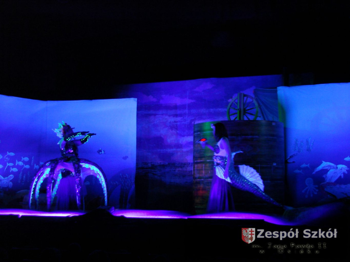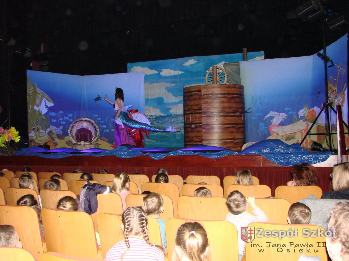 Przedszkolaki zawędrowały wraz z bohaterami sztuki w głębiny oceanu, gdzie poznały losy małej syrenki Vivien, jej stanowczego ojca- króla Nefryta, zabawnego kraba Szachwarę oraz podstępnej wiedźmy Zewlagi. Na scenie pojawił się również książę Edward, wypatrujący co dnia dziewczyny, która ocaliła mu życie podczas szalejącego sztormu, jego urocza mama- królowa Hortensja oraz niezastąpiony kucharz Fryc wraz z marynarzami. Dzięki przesłaniu jakie płynęło z treści przedstawienia, pięknej muzyce, wspaniałej scenografii oraz niezwykłym kostiumom, ta muzyczna opowieść wywarła na naszych małych widzach ogromne wrażenie.
