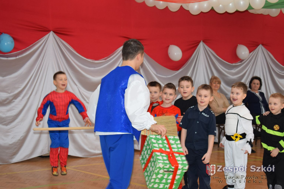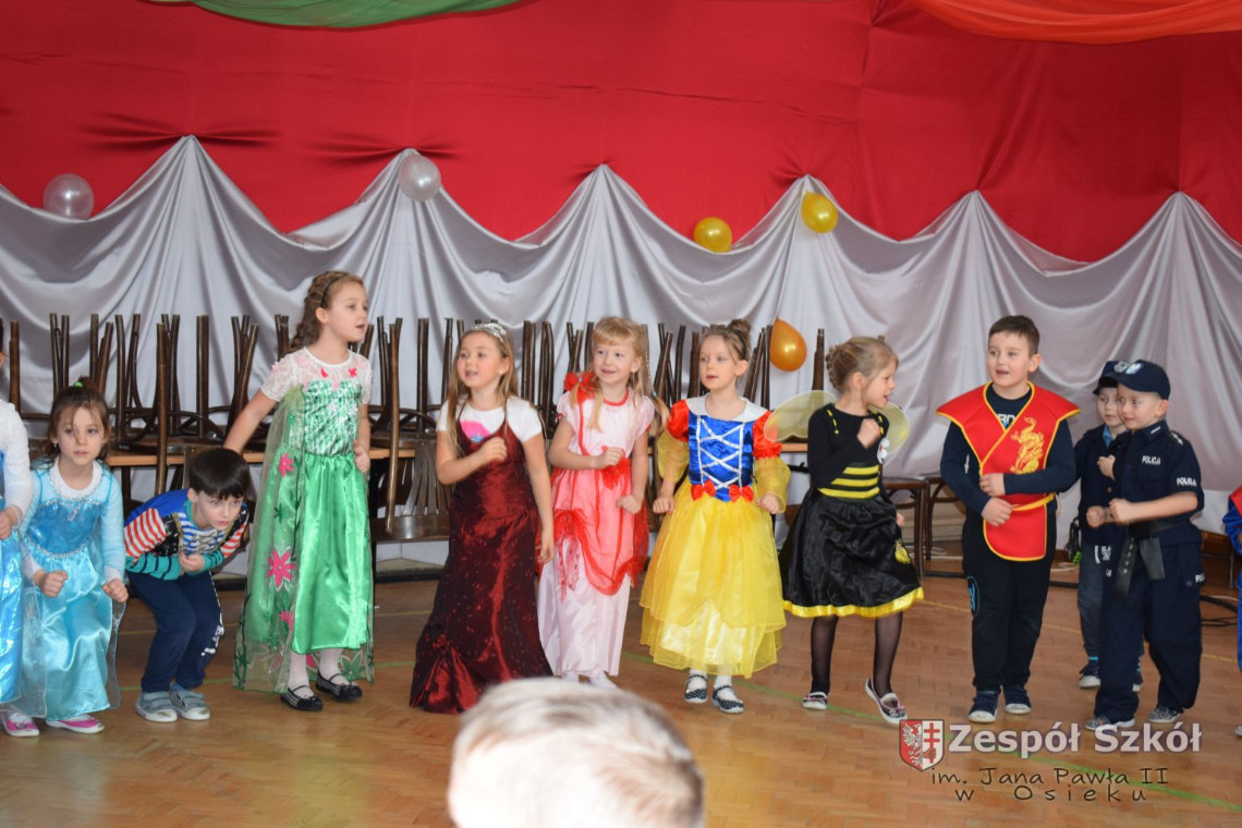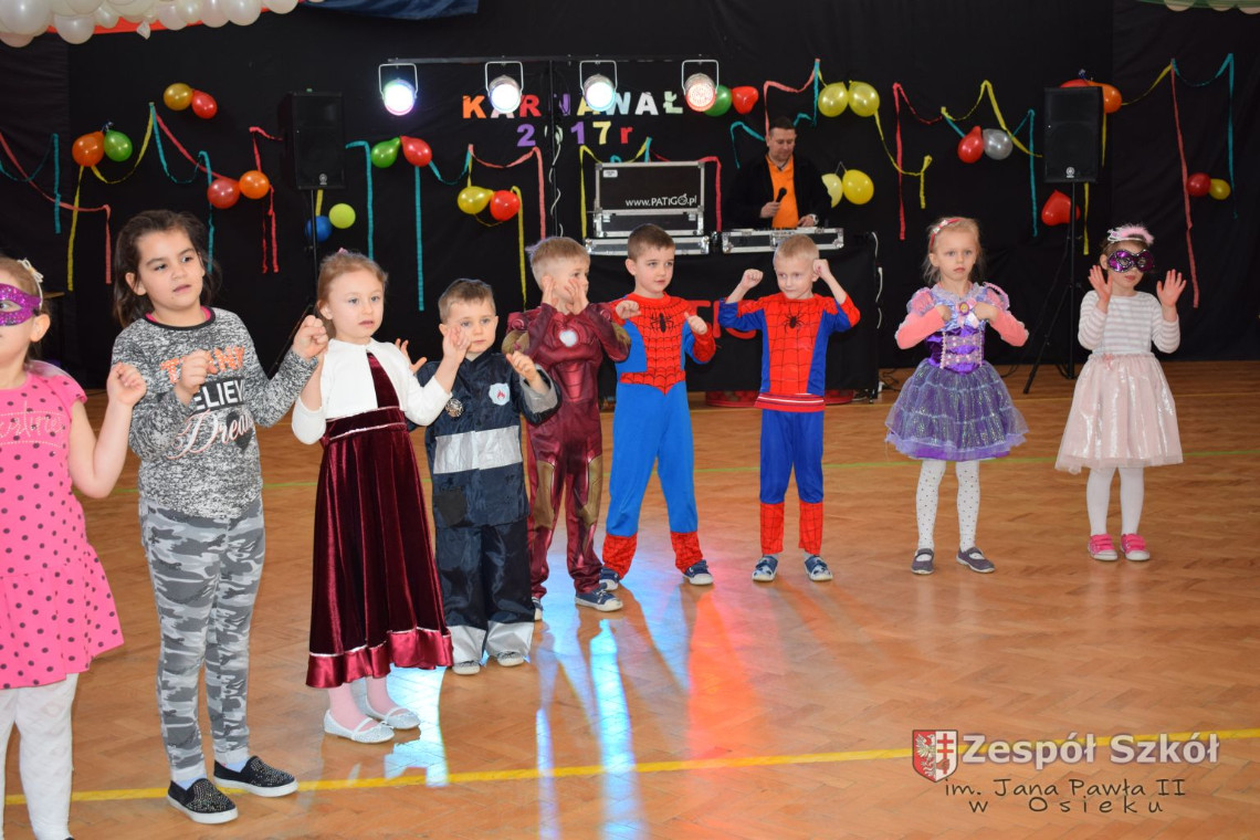 W piątek 17 lutego 2017 r. o godz.10.00 zaczęła się zabawa karnawałowa dla dzieci z Publicznego Przedszkola w Osieku. Wszystkie przebrane przedszkolaki ze wspaniałymi humorami spotkały się w Sali Miejsko –Gminnego Ośrodka Kultury. Do wspólnej zabawy zapraszał zespół PATIGO, który grał znane wszystkim przedszkolakom piosenki. Wesołe tańce, zabawy i konkursy sprawiły dzieciom wiele radości. Przedszkolaków odwiedził również Kubuś Puchatek.