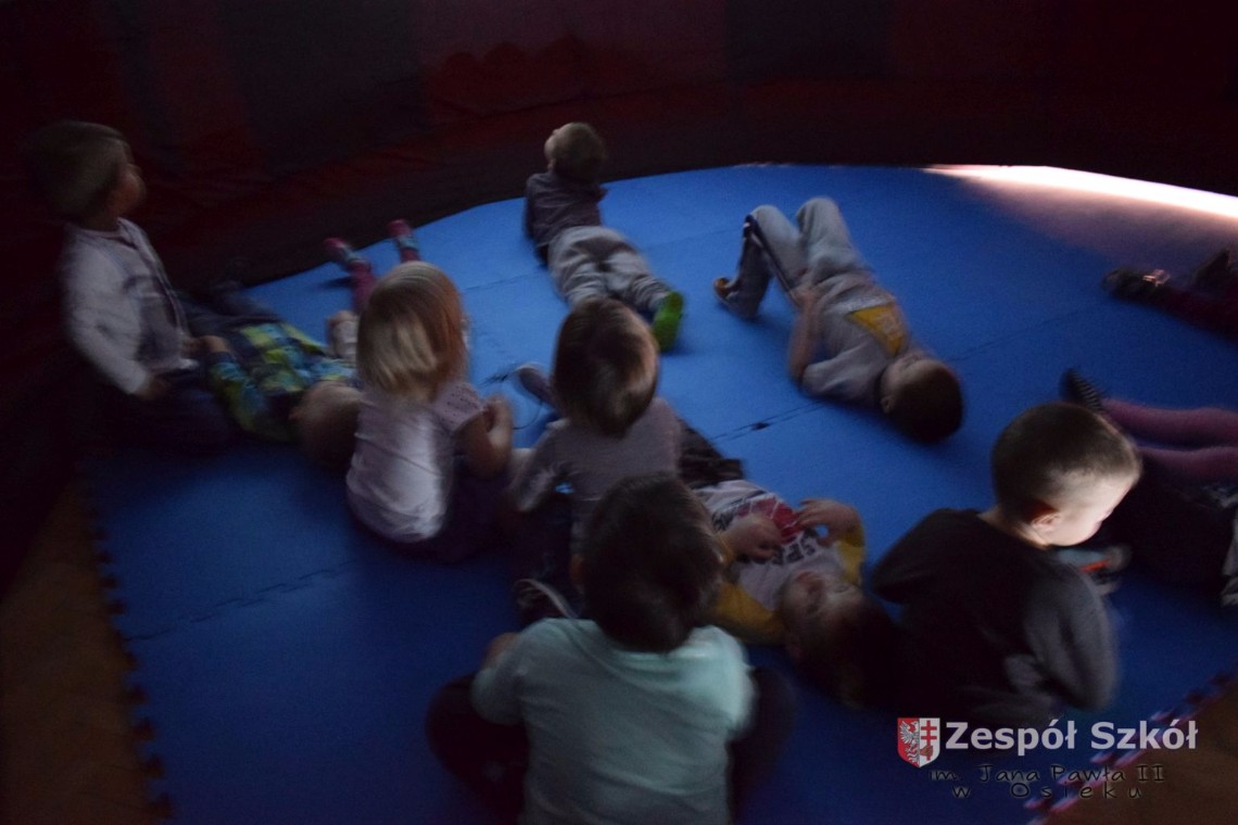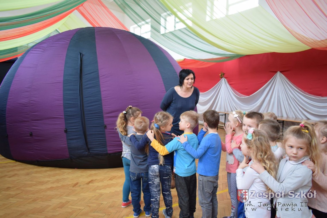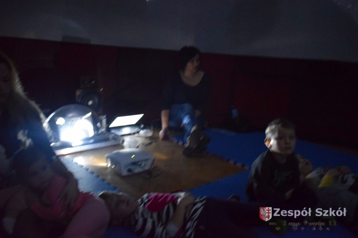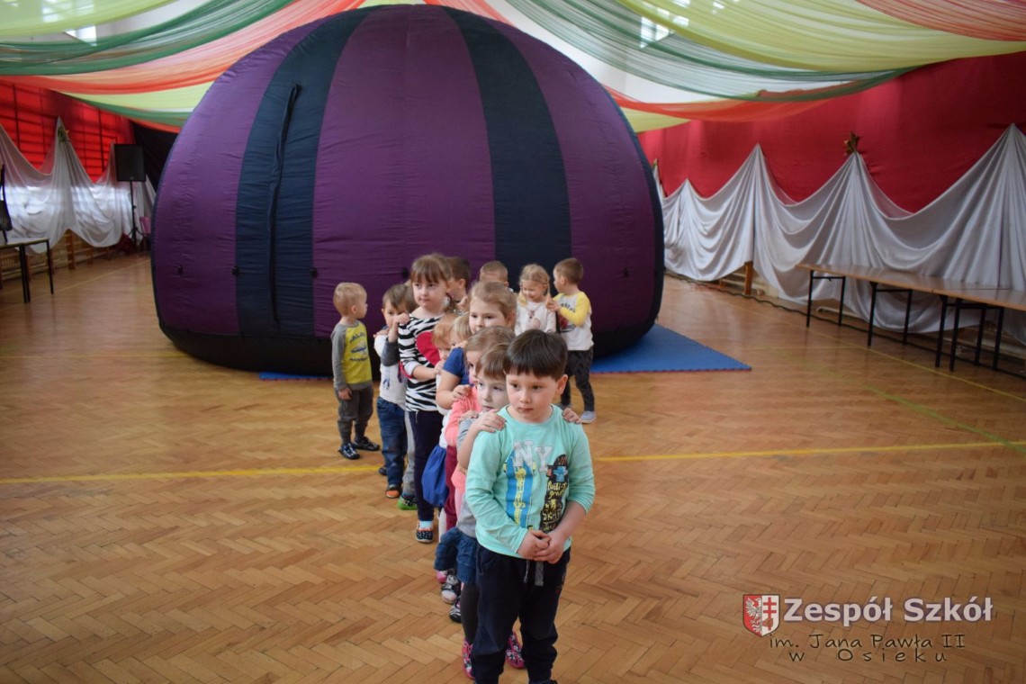 8 marca 2017r. w Publicznym Przedszkolu w Osieku dzieci miały możliwość obserwowania ruchu ciał niebieskich w Planetarium. Dzięki specjalnej aparaturze, wyświetlane były popularne pokazy astronomiczne, które opowiadały o wielkości i budowie Wszechświata, opisywały najbardziej popularne gwiazdozbiory na niebie, przybliżyły tajemnice planet i galaktyk. Na sztucznym niebie przestrzenne obrazy wyświetlane z projektora pokrywały ruchem całą kopułę. Przedszkolaki oglądały seans z zainteresowaniem. Nad ich głowami pojawiały się tysiące gwiazd i kosmiczne animacje. Dodatkową atrakcją były przygody małego dinozaura, który poznawał świat. Opowieść prowadził narrator, a całości dopełniała muzyka.