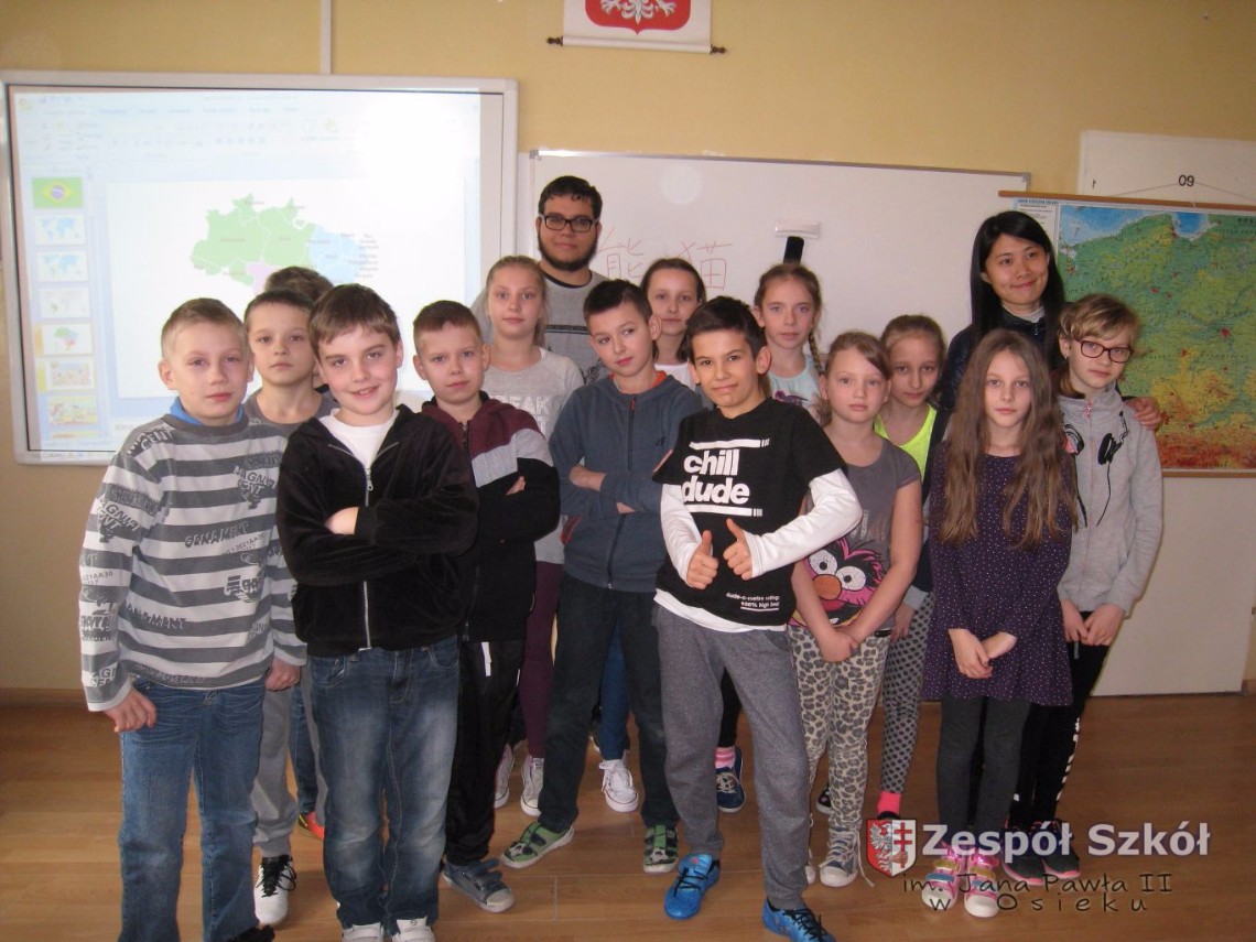 Uczestnicząc w tym przedsięwzięciu gościliśmy studentów – wolontariuszy z Brazylii i Chin: