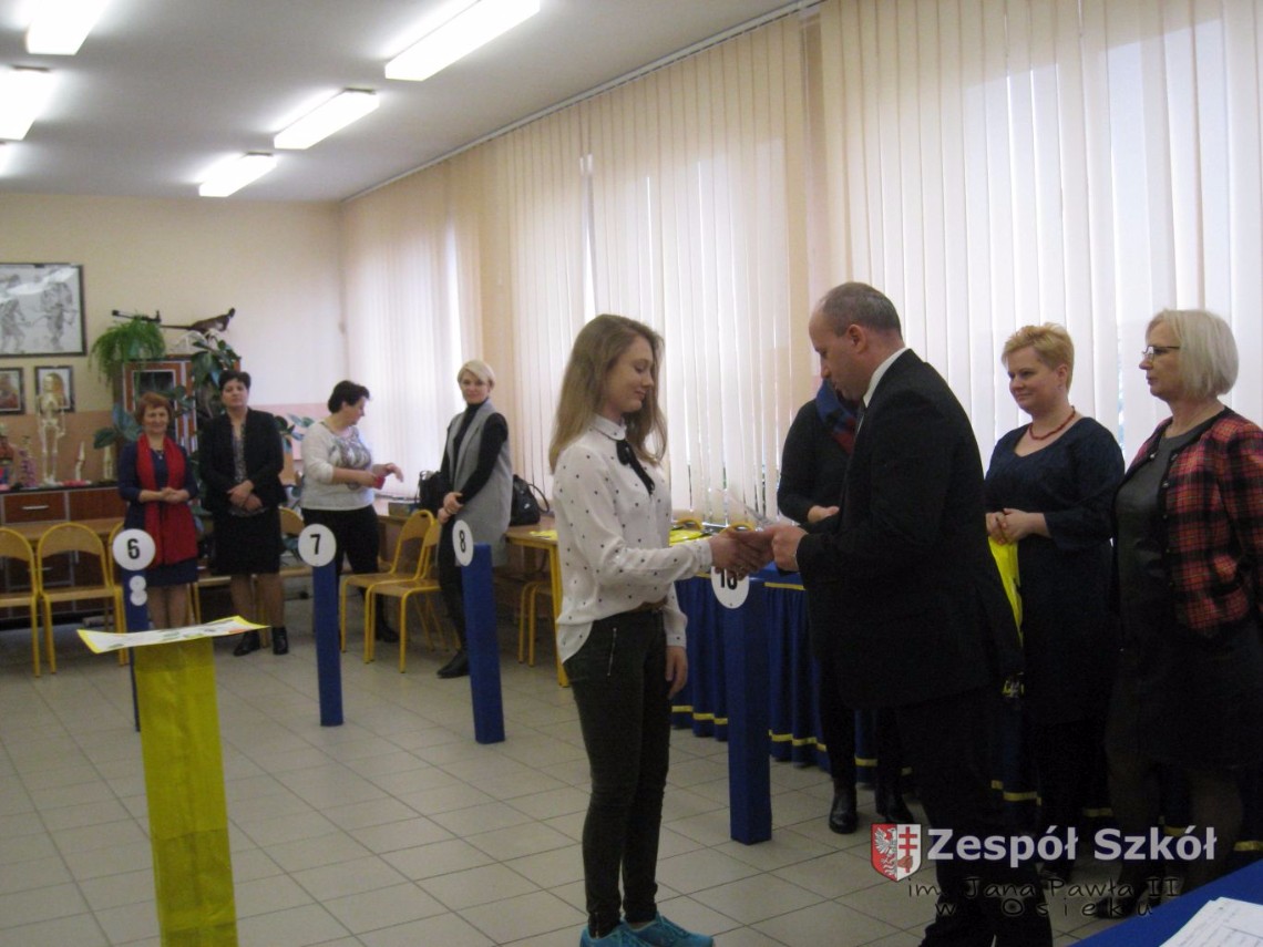 Wszyscy uczestnicy konkursu. otrzymali nagrody, dyplomy oraz gratulacje z rąk Burmistrza Miasta i Gminy Osiek – p. Rafała Łysiaka oraz dyrektora Zespołu Szkół im. Jana Pawła II w Osieku – p. Małgorzaty Kunowskiej.