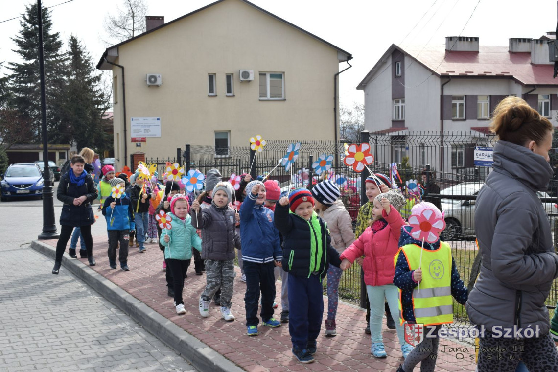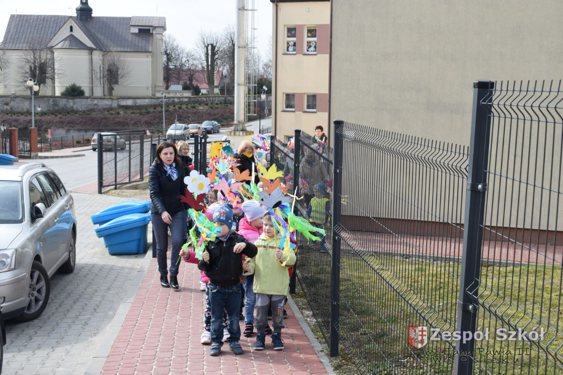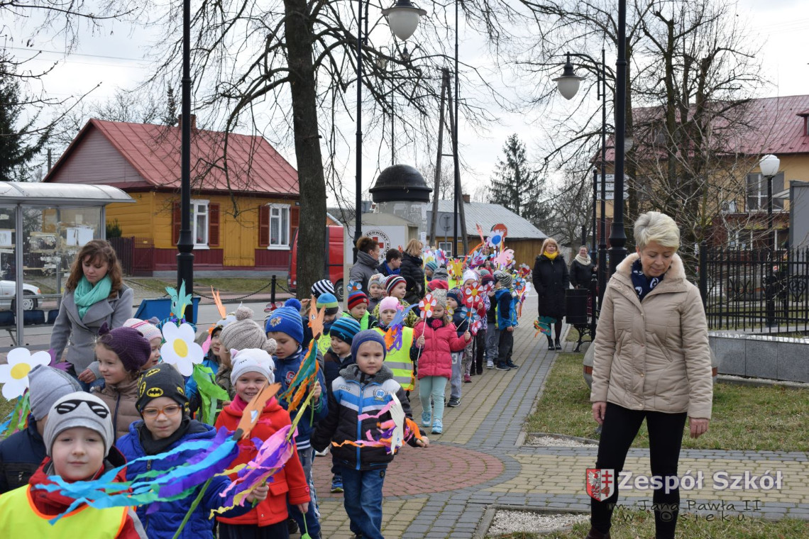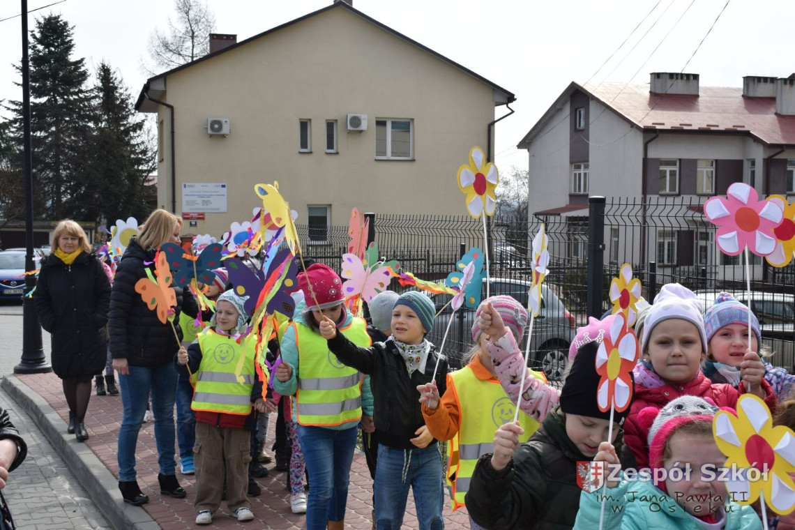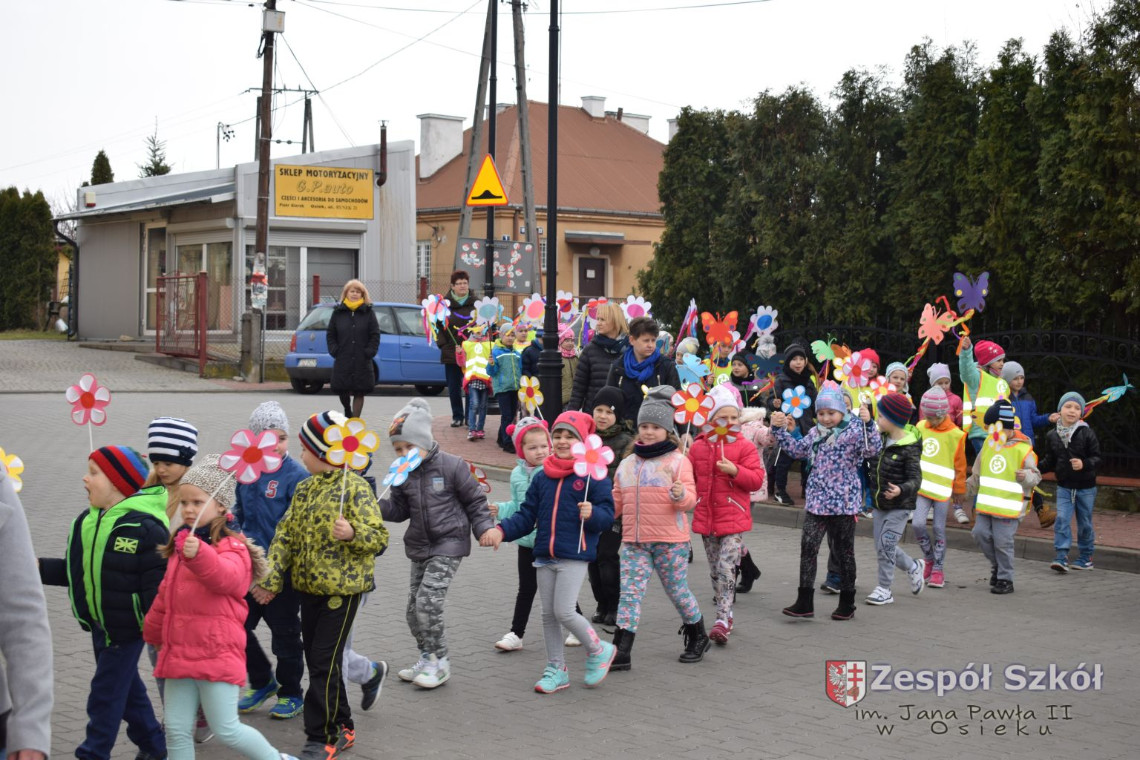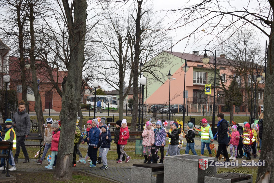 We wtorek 21.03 2017 r. wszystkie przedszkolaki z Publicznego Przedszkola w Osieku przywitały pierwszy dzień kalendarzowej wiosny kolorowo i wesoło. O godz.9.30 wyruszyły barwnym pochodem ulicami miasta trzymając w rękach wiosenne emblematy: kolorowe motylki, kwiatki, ptaszki, balony. Radosnymi okrzykami, piosenką i wesołą zabawą na świeżym powietrzu dzieci powitały długo oczekiwaną wiosnę.