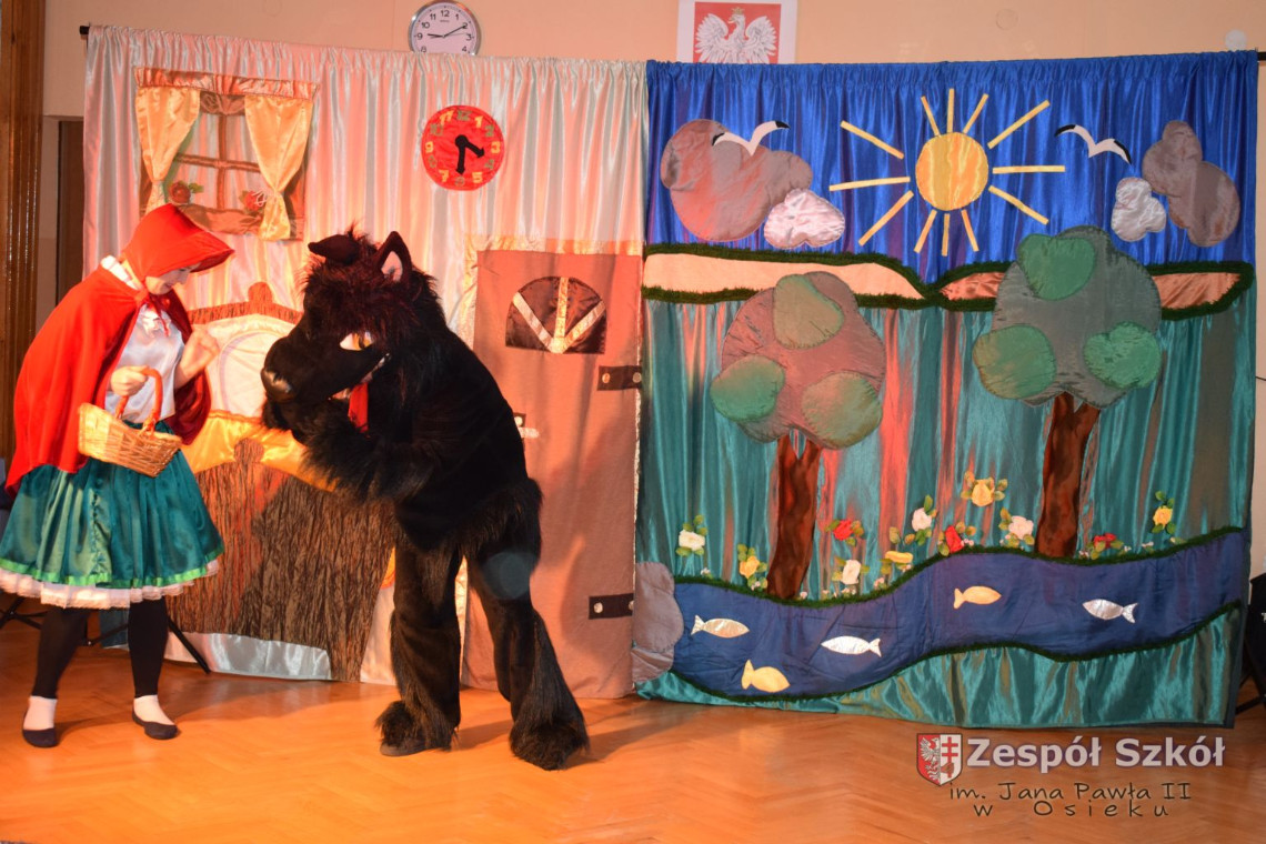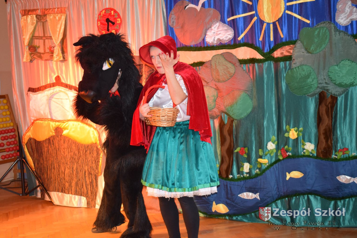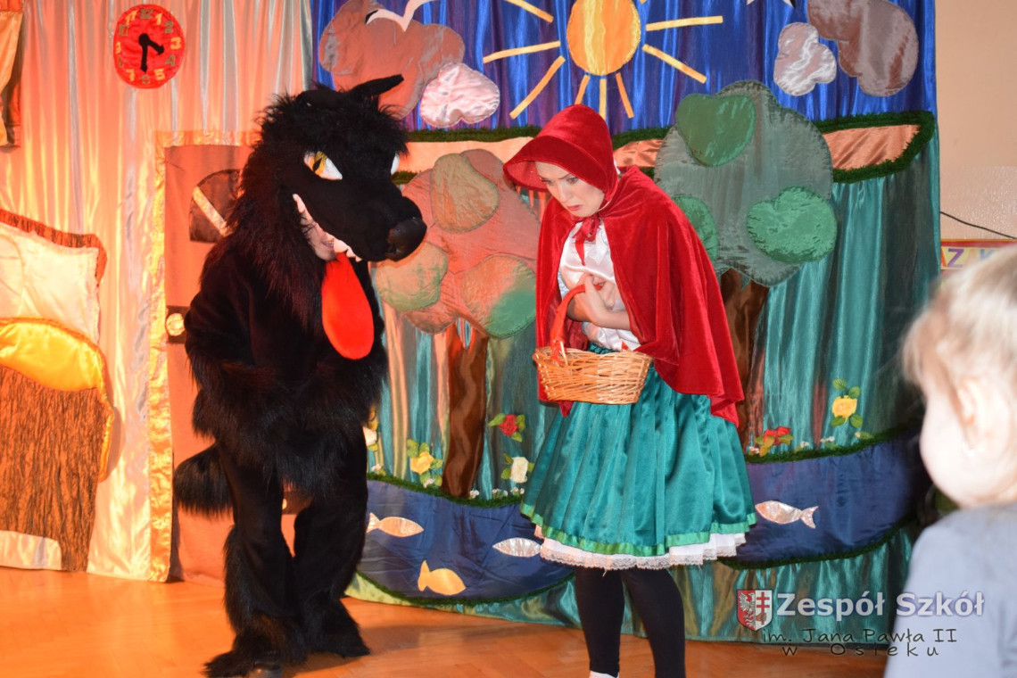 W środę 22.03 2017 r. zawitał do naszego przedszkola teatr objazdowy. Aktorzy zaprezentowali dobrze znaną i lubianą przez dzieci bajkę ,,Czerwony Kapturek”. Mimo że wszyscy doskonale znali ten utwór z zapartym tchem oglądali historię bohaterki - Czerwonego Kapturka ,która urzekła przedszkolaków swą naturalnością, spontanicznością i niewinnością. Opowieść o dziewczynce, która lubiła chodzić własnymi ścieżkami przestrzega przed zbytnią ufnością wobec nieznajomych. Przedstawienie wzbogacone było piękną scenografię i kostiumami, które zachwyciły dzieci i wywołały wiele pozytywnych emocji.