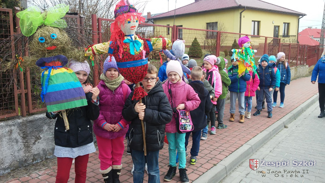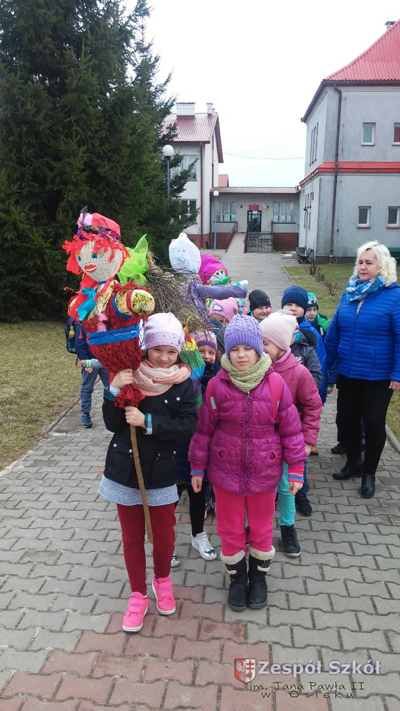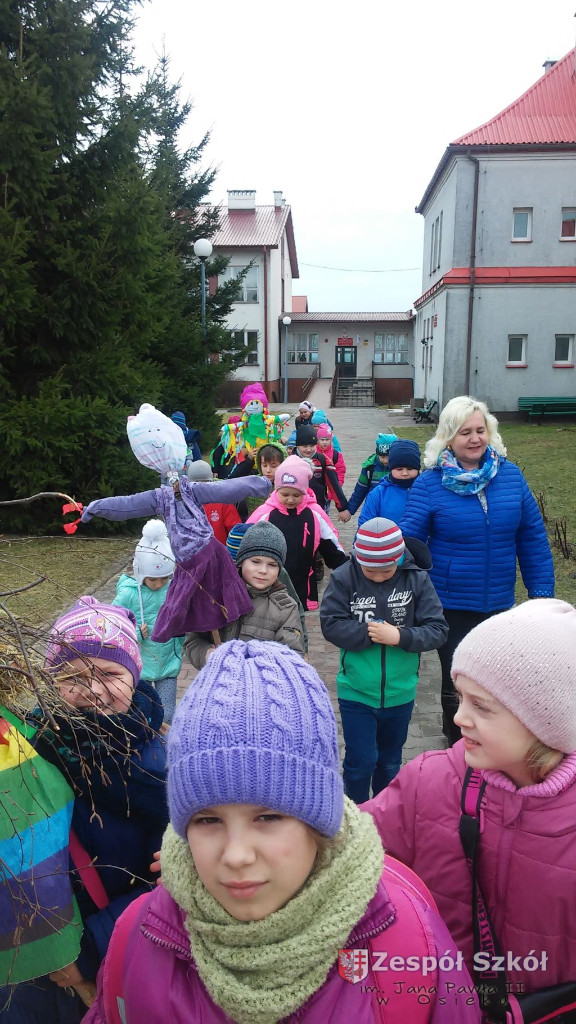 W dniu 21 marca 2017r. tradycyjnie, jak co roku w naszej szkole uczniowie klasy I, IIa i IIb PSP w Osieku obchodzili Pierwszy Dzień Wiosny, czyli pożegnanie zimy .W tym celu uczniowie przygotowali piękne kukły Marzanny. Następnie udaliśmy się na plac szkolny, gdzie uczniowie prezentowali swoje Marzanny, w celu wybrania tej najpiękniejszej. Po prezentacji uczniowie wraz z opiekunami jednogłośnie stwierdzili, że wszystkie Marzanny zasługują na miano najpiękniejszej. Gdy wybiła godzina 9.00 cała dziatwa wraz z opiekunami p. Ewą Kruszewską, Ewą Golańską i Joanną Gach ruszyła w barwnym korowodzie ulicami miasta kierując się w stronę pobliskiej rzeki. Wrzucając Marzanny do wody pożegnaliśmy zimę, a z wielką radością powitaliśmy wiosnę. Dzień był bardzo udany, a na wielu twarzach gościł uśmiech i widać było ogromną radość.