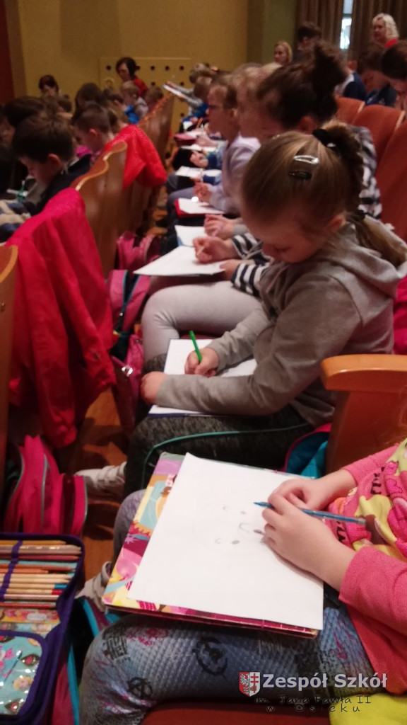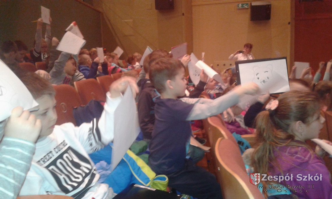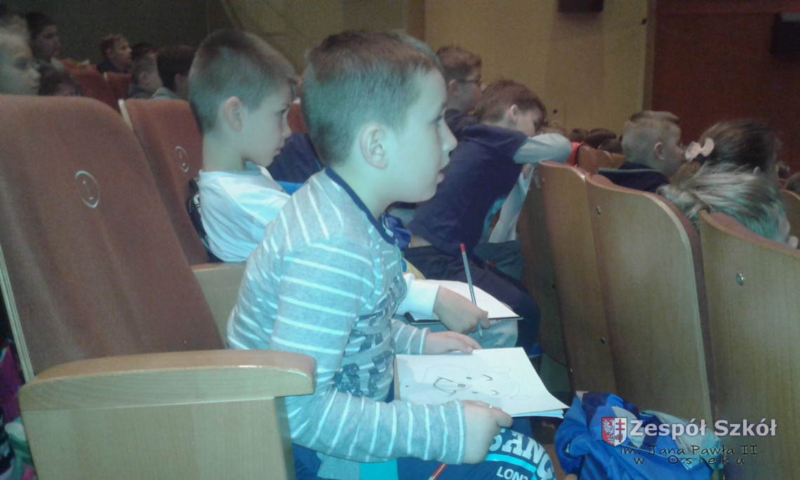 W dniu 23.03.17 odbyła się wycieczka klas I, IIa, IIb, IIIa, IIIc do kina „Impresja” w Połańcu na lekcję multimedialną pt. „ Więc chodź, narysuj mój świat”. Przygotowaną przez Centrum Edukacji Filmowej w Wołominie. Uczniowie podczas lekcji mieli okazję dowiedzieć się jak powstawały pierwsze filmy animowane, na czym polega praca animatora i jak można nim zostać. Odkryli jak dziś powstają ich ulubione filmy animowane i jak ożywić postać z bajki. Uczestniczyli w warsztatach rysunkowych, na których rysowali portret Kubusia Puchatka.