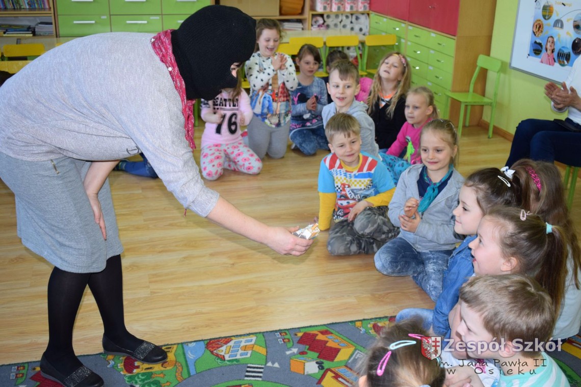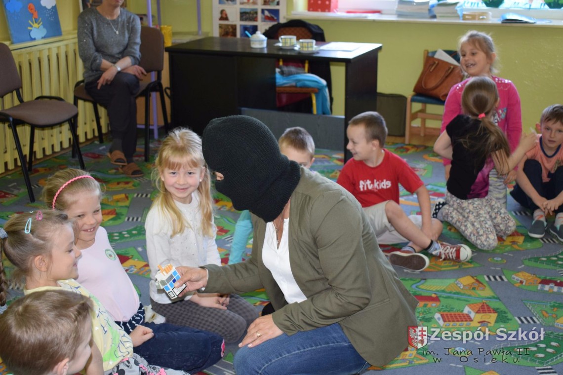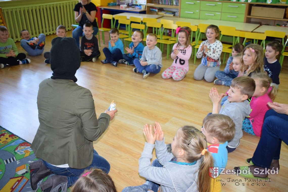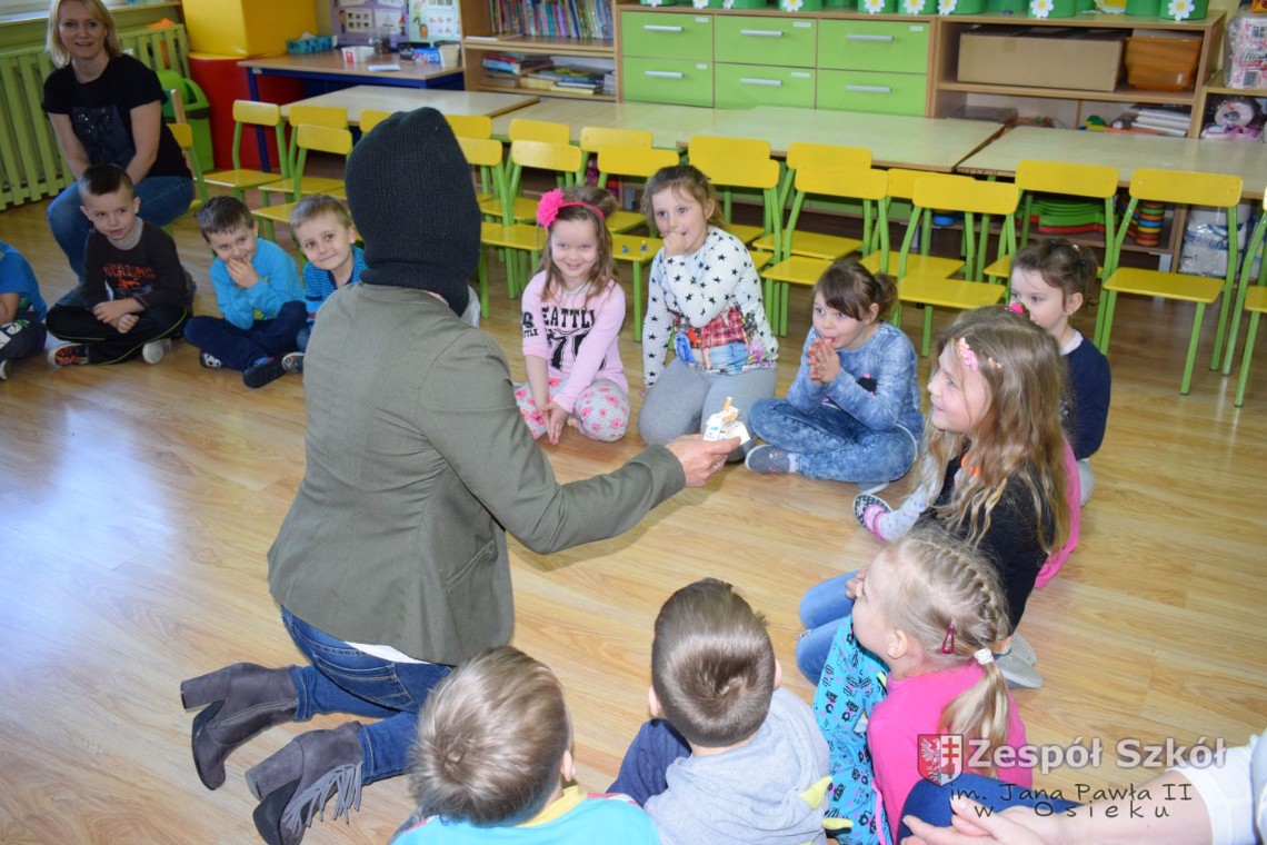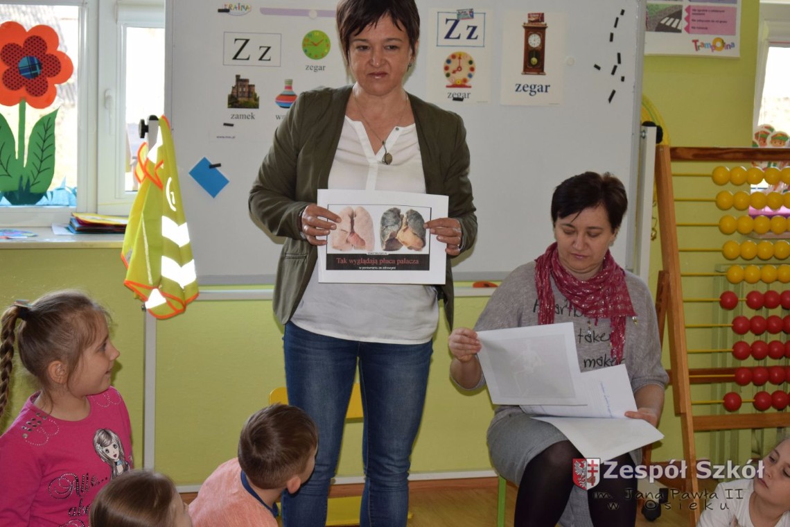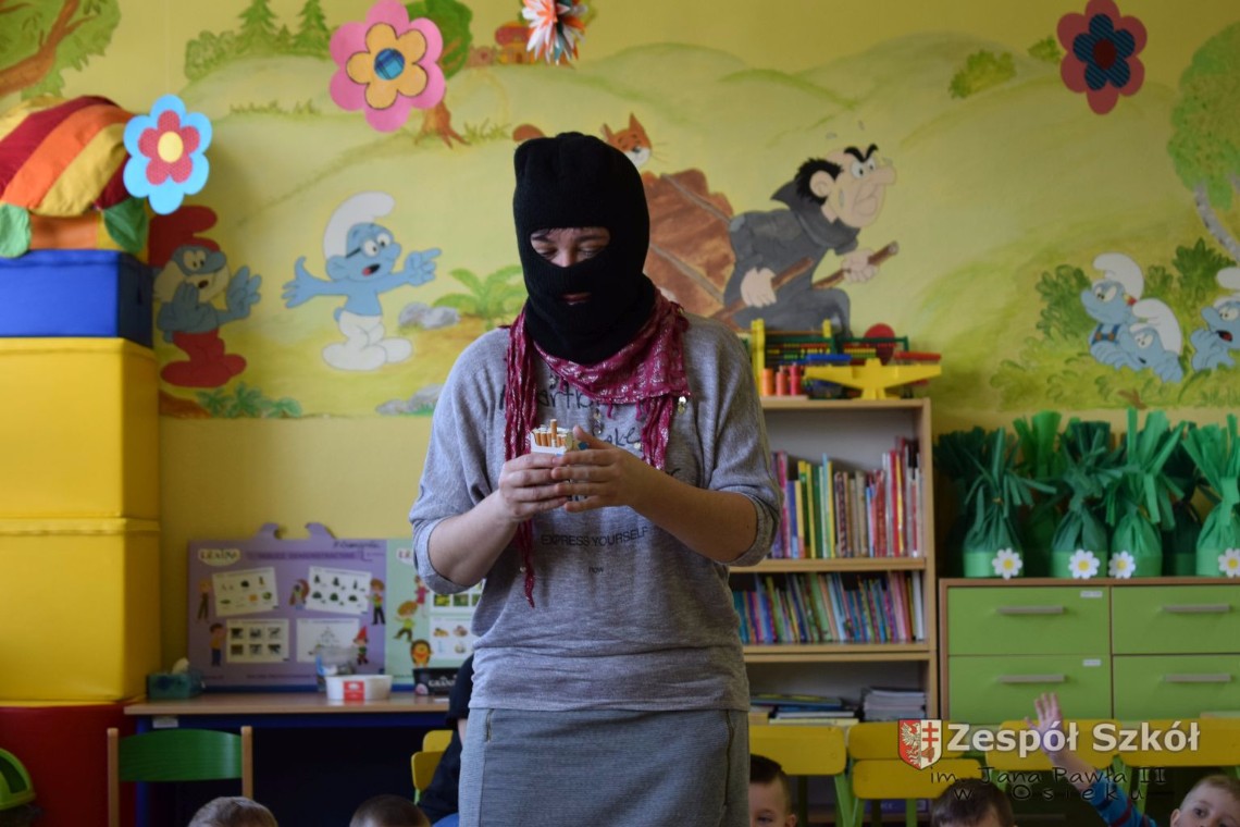 W dniu 21 kwietnia br. grupy 5 i 6-latków uczestniczyły w spotkaniu z paniami z Poradni Psychologiczno- Pedagogicznej w Połańcu p. A. Olszewską i p. D. Sobolewską. Tematem spotkania była profilaktyczna pogadanka „Papierosiaki”. Panie psycholog starały się w niekonwencjonalny sposób przekonać naszych podopiecznych, jak negatywne skutki dla zdrowia wywiera palenie papierosów. Na dzień dzisiejszy, jesteśmy pewni, że nasze przedszkolaki w zabawie „Zniszcz papierosiaka”, pokonały go definitywnie. Na podsumowanie spotkania dzieci otrzymały kolorowankę, którą miały zanieść do swego domu i zawiesić na lodówce, przekonując tym samym dorosłych palących do zaprzestania palenia tytoniu.