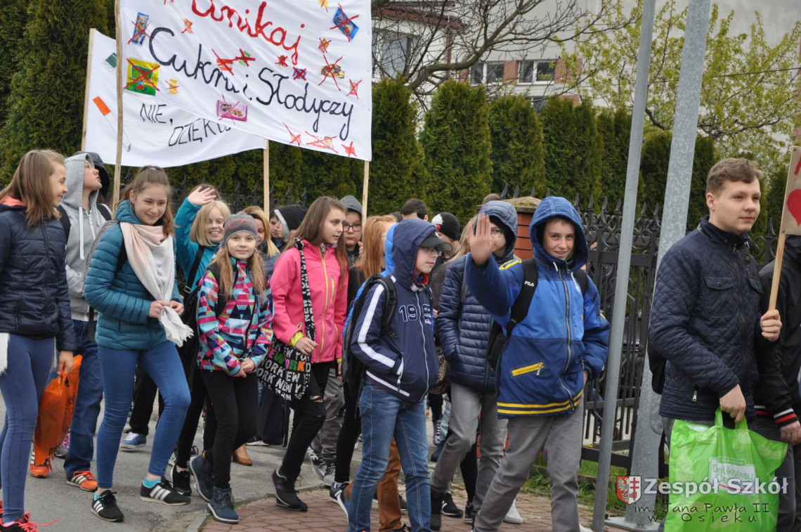Impreza rozpoczęła się happeningiem. Przemarsz odbył się ze szkoły do Rynku w Osieku. Wzięli w nim udział wszyscy uczniowie szkoły podstawowej wraz z nauczycielami i wychowawcami oraz uczniowie i nauczyciele ze szkół z terenu Gminy Osiek. Organizatorzy happeningu starali się pokazać, że każdy z nas może być EKO. Do dbania o środowisko nawoływały dzieci, nauczyciele, rodzice. Jak co roku wydarzenie przyciągnęło wielu mieszkańców. Uczniowie wykrzykiwali hasła proekologiczne i prozdrowotne mające na celu promowanie świadomych zachowań dotyczących dbania o środowisko i własne zdrowie.