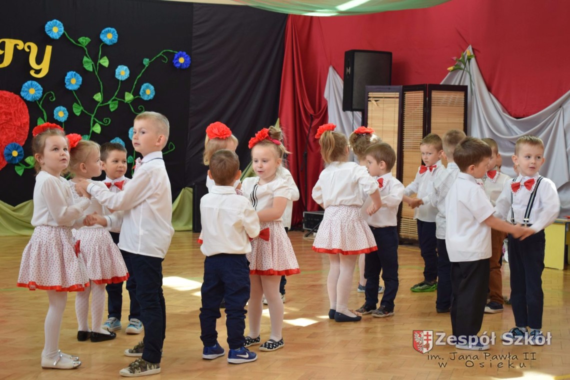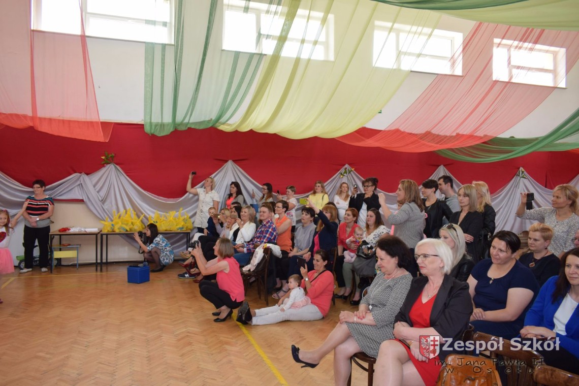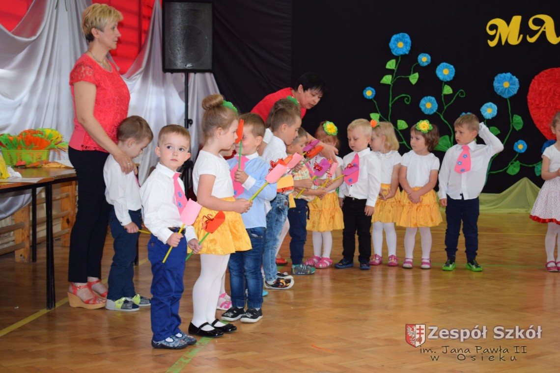 Wszystkie grupy wiekowe zaprezentowały piękne programy artystyczne, w których nie zabrakło recytacji wierszy, piosenek, tańców oraz śmiesznych scenek. Czas spędzony w miłej i radosnej atmosferze na długo pozostanie w pamięci zaproszonych gości. Po części artystycznej przedszkolaki obdarowały swoich rodziców własnoręcznie przygotowanymi upominkami. Na koniec dzieci otrzymały słodkie prezenty.