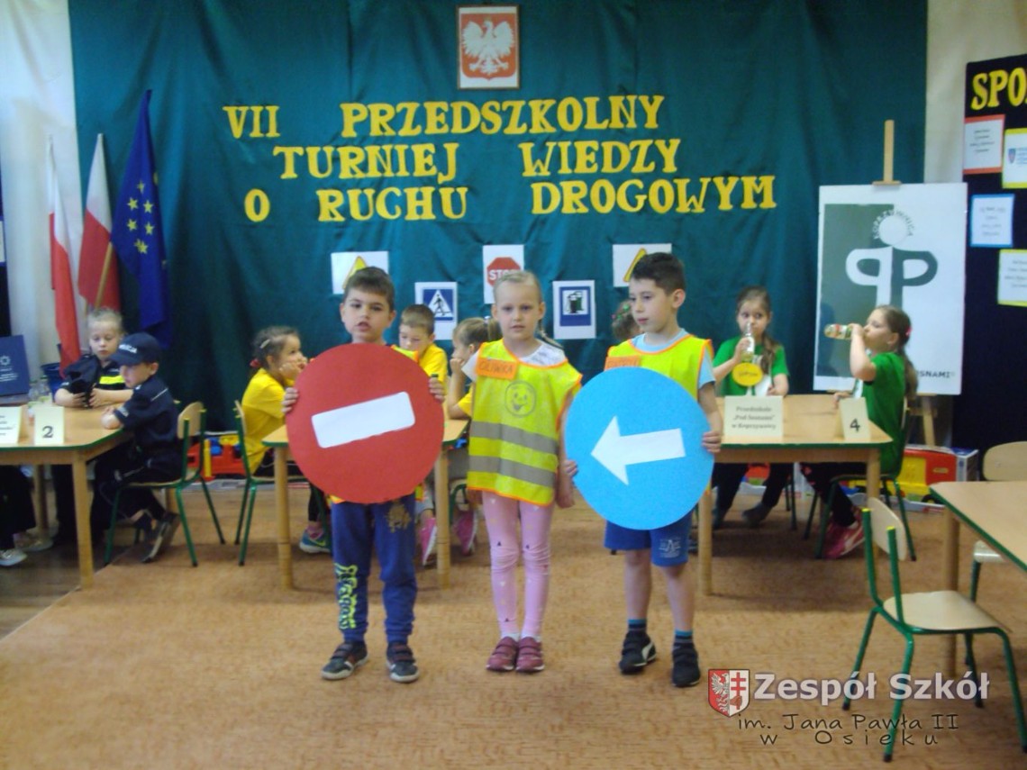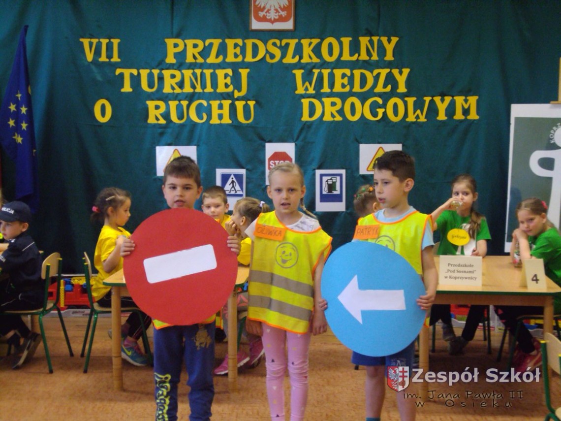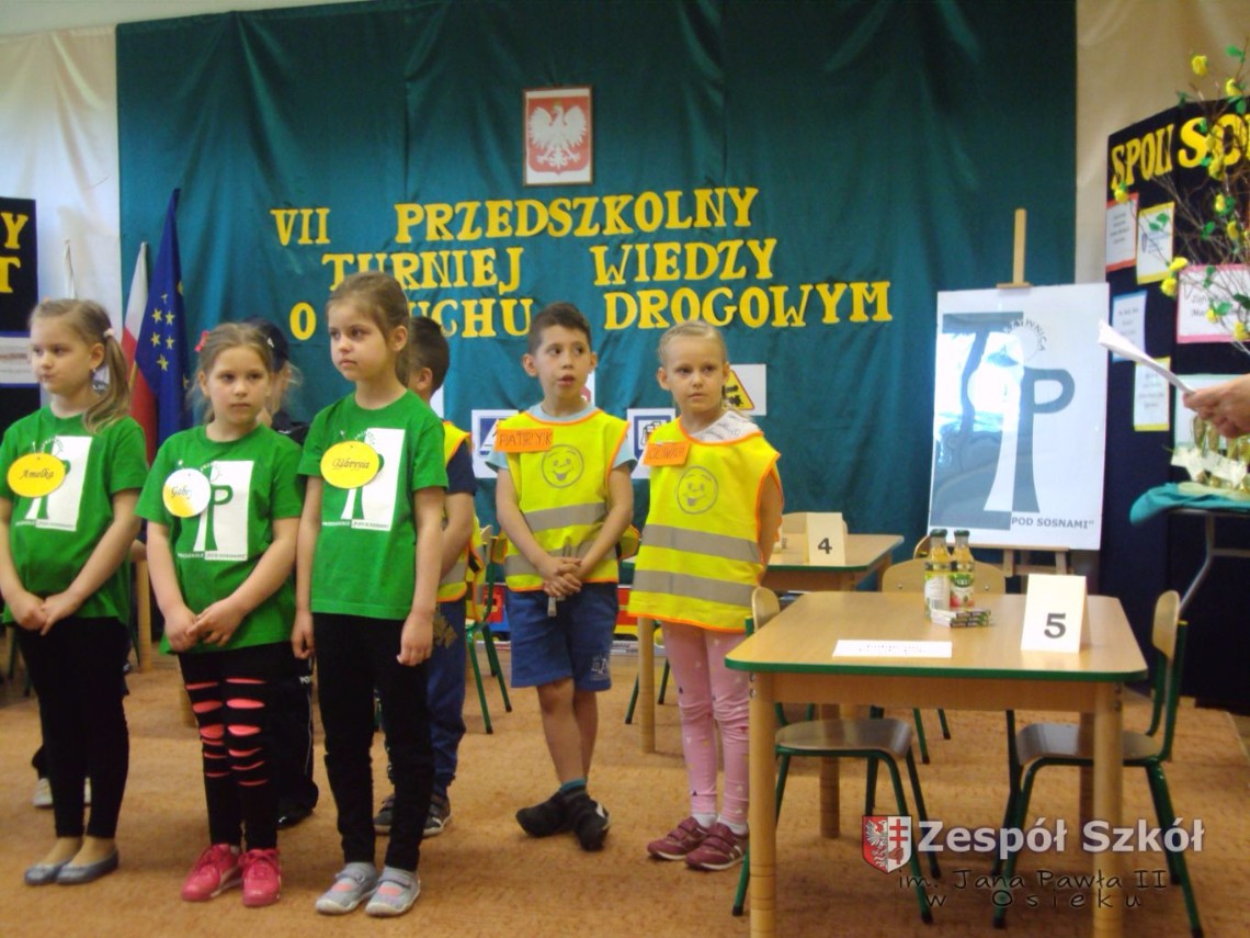 W dniu 18.05.2017r. nasze przedszkole wzięło udział w VII Przedszkolnym Turnieju wiedzy o ruchu drogowym "Bezpieczny Przedszkolak na drodze" organizowanym przez Publiczne Przedszkole „Pod sosnami” w Korzywnicy. Nasze przedszkole reprezentowali: Oliwka Durda – 5-latki, Patryk Okoń – 6-latki i Patryk Zaguła – 6-latki. Koordynatorem była p. Małgorzata Domagała.